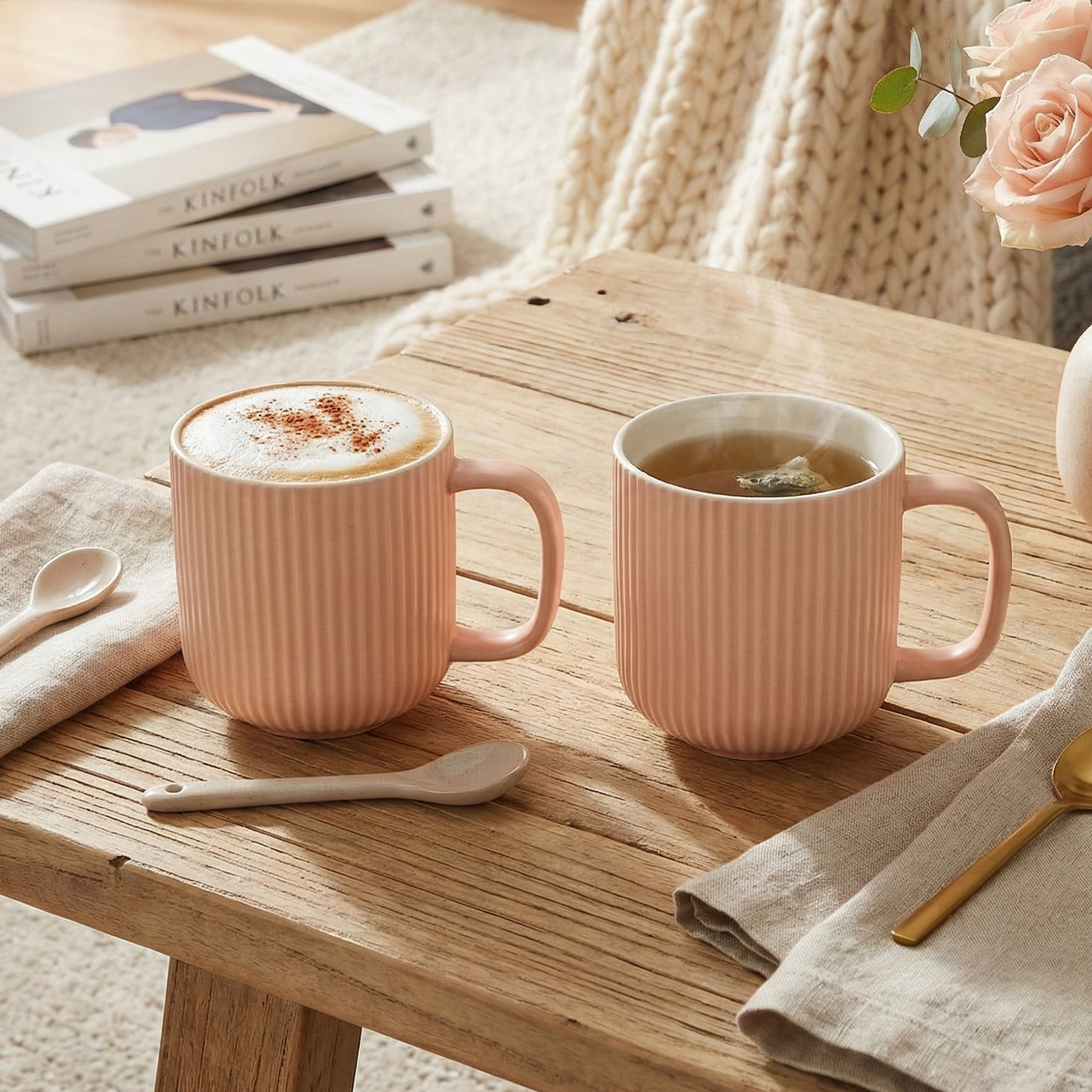 COD availableLooks like soft petal landed in the kitchen's cabinet, our Misty Rose Ribbed New Bone China Coffee Mug is made to let you skip the ordinary experience and serve dwelling craftsmanship in disguise of these coffee mugs. From softened rim to durable body and sensory touch evoked from the vertical tactile strips, it is curated with purpose. These coffee mug sets are made from new bone china, which means they are free from bone-ash yet beautiful and strong like traditional bone china. Perfect for the days you want to feel cherished.