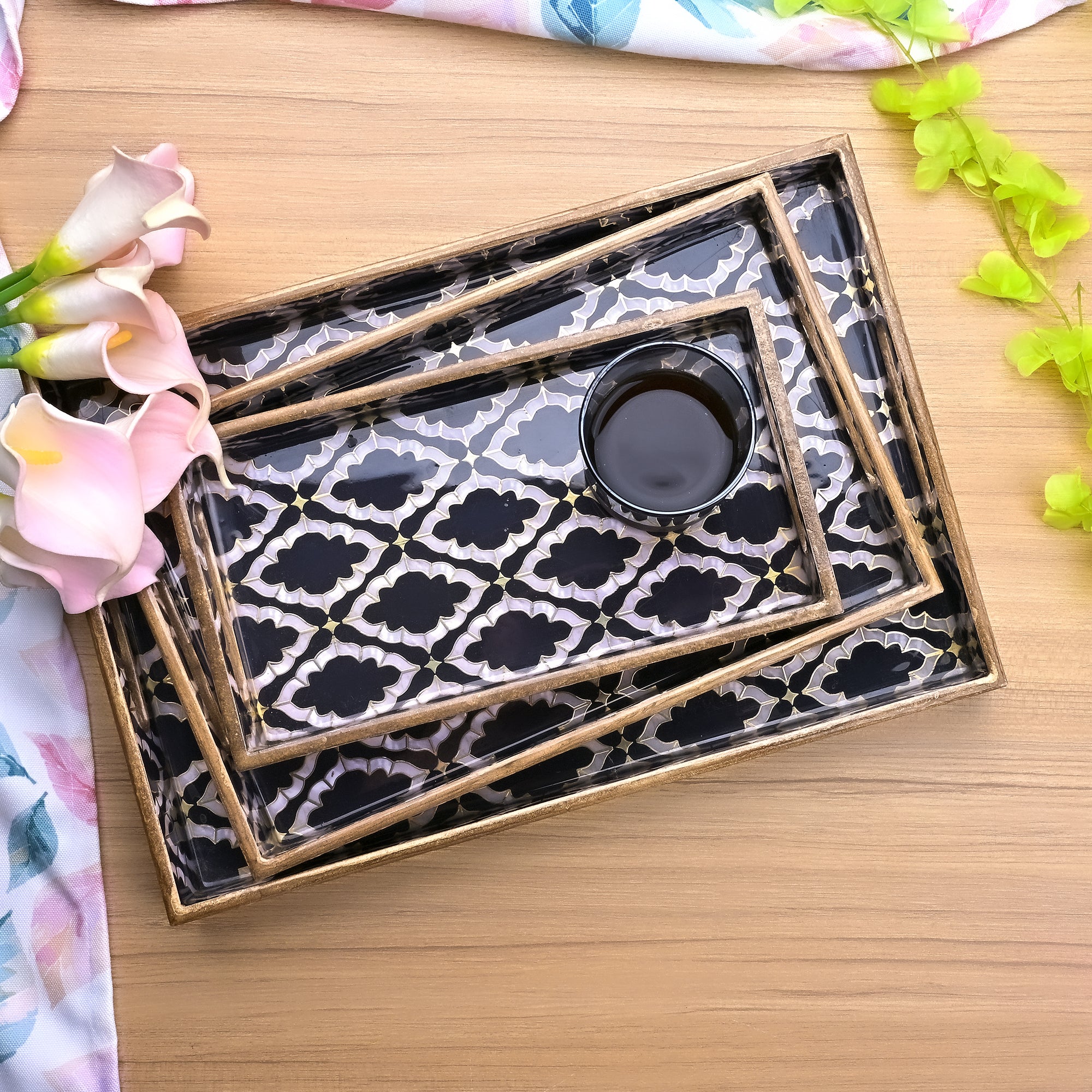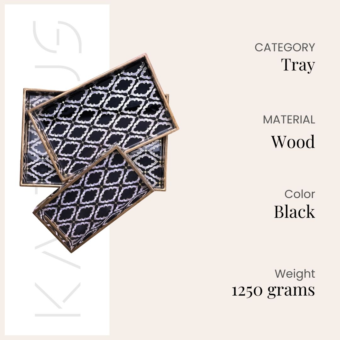COD availableRevamp your kitchen with this stylish Designer Moroccan Black & White Serving Tray. This Moroccan-inspired tray is a unique combination of bold style and vintage appeal. Inspired by modern design, Made from premium-quality wood and polished for durability and ease-of-care. This tray is a stunning piece of "art" and best for daily use. The black & white design with its bold geometric pattern is perfectly accented in gold; making it the perfect addition to any tablescape.