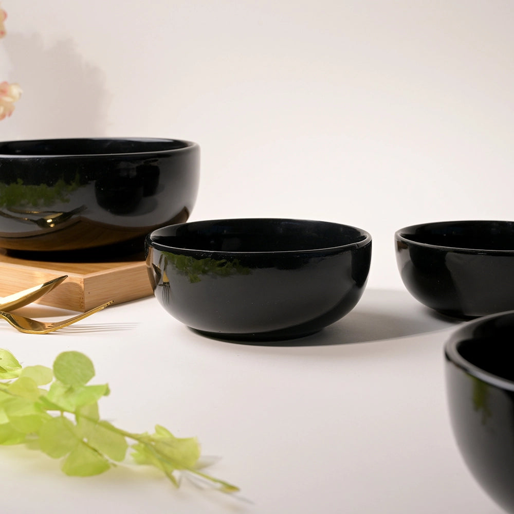 COD availableYour food tastes great but your presentation and your servings should be just as good. That's why Kairaus designed this serving bowl set, perfect for exalting any meal. The Mystique Black Bowl is made from high-quality ceramic, with a glossy finish that catches the light beautifully on your dining table. This set of 4 bowls is perfect for serving daily meals or making special dinners feel extra nice. The deep black colour gives them a bold yet elegant look. They'll make your food look even more inviting before you dig in.