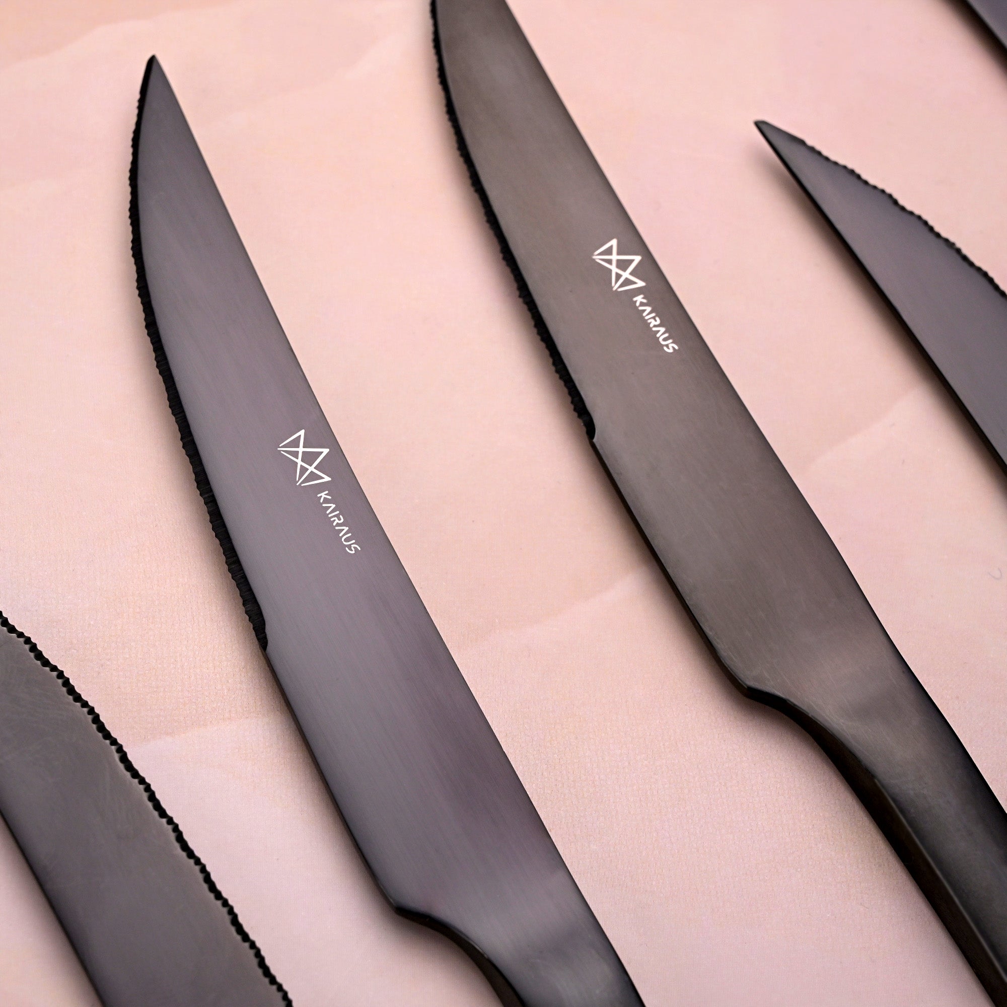 The deep black finish brings a bold, beautiful attitude to the table, if you love things with a striking edge, this knife set is made just for you. It doesn't just look stunning; it's crafted from high-quality stainless steel, making it durable and long-lasting. Whether you're hosting a dinner or just want to add a little drama to everyday meals.