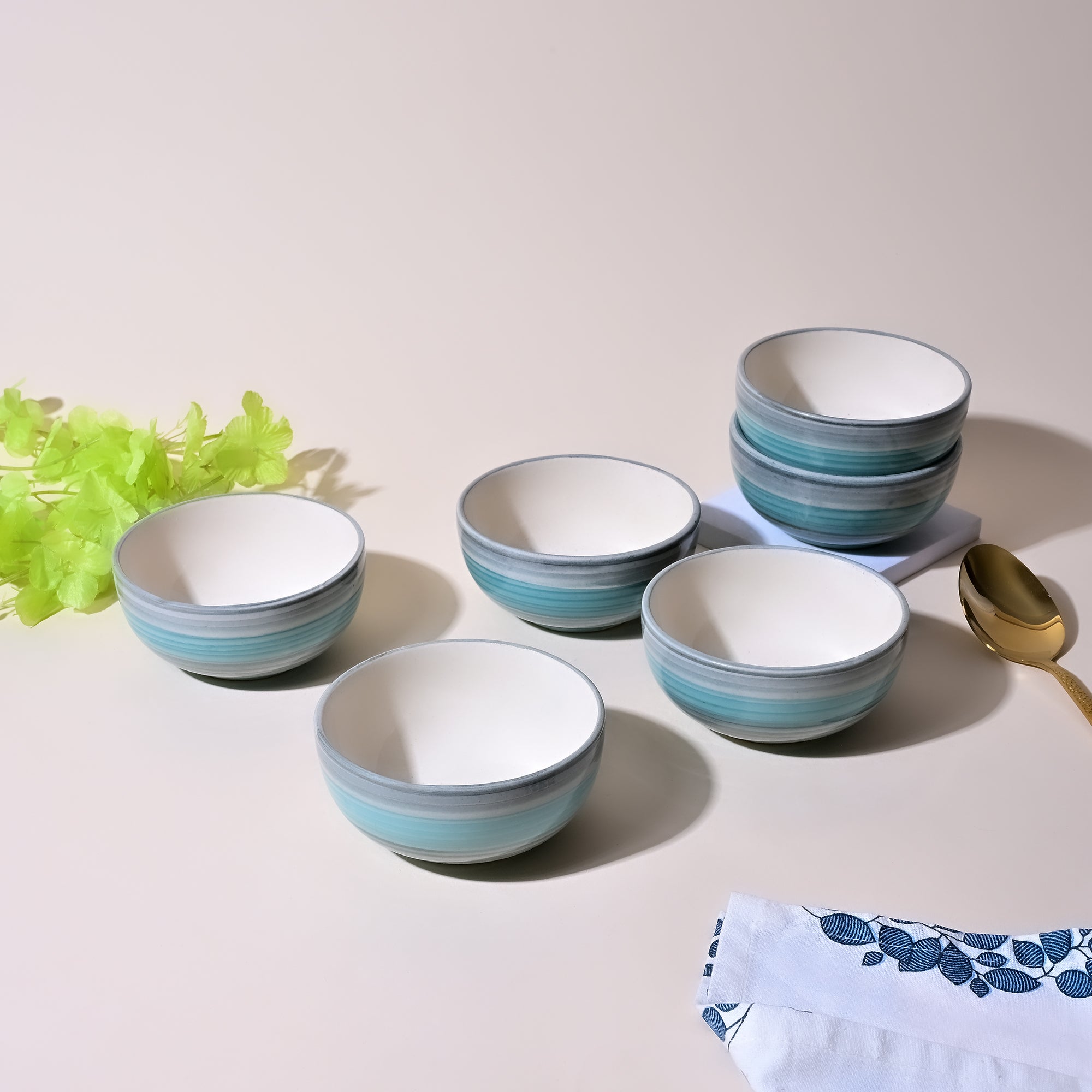 Opulent Sea Green Ceramic Dessert Bowl (Set of 6)