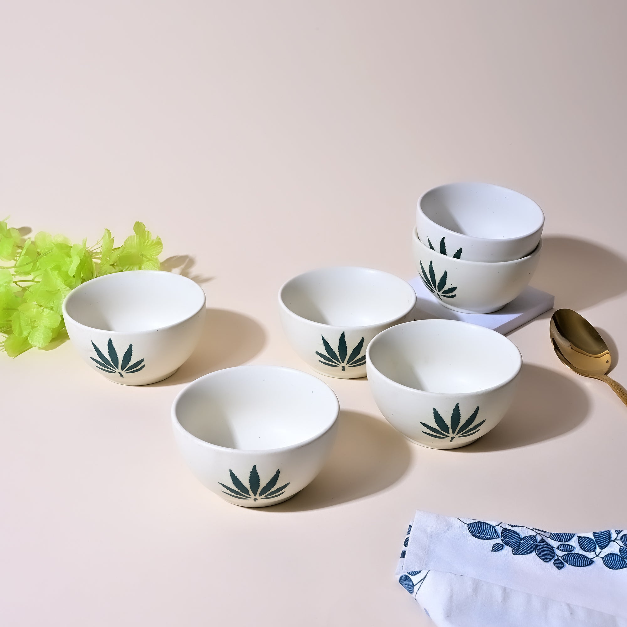 COD availableYour crockery unit deserves something unique in style, and for that, Kairaus brings you these Opulent White Ceramic Bowl Set. This set features the beautiful hand-painted leafy design that stands out effortlessly. Made from high-quality ceramic, it offers sturdy quality with a long-lasting finish. The blue and white colour combination adds a charming and refreshing vibe. These bowls are perfect for serving snacks, sweets, or even good for daily use. They're not just bowls; they're handcrafted pieces of art. So if you’re looking for something special, make them yours and bring a little shine to your kitchen.
