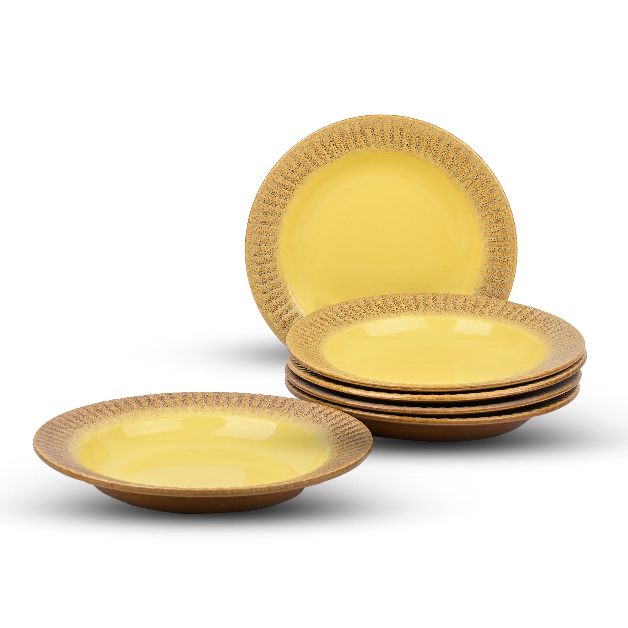 COD availableThe sun lights up the entire world, right? Now let this sun-inspired Pastel Yellow Ceramic Pasta Plate set brighten your dining table too. We present to you this pasta plate set, crafted with an earthy blend of colours. A subtle yellow centre that glows gently, framed by a beige border reflecting the rustic charm of every meal. It’s perfect for serving dishes with love, like pasta, noodles or anything else you like. Whether it’s a hearty breakfast or a special dinner, these plates are ideal for all occasions. Made from high-quality ceramic, they’re durable and sturdy for daily use, offering lasting quality.