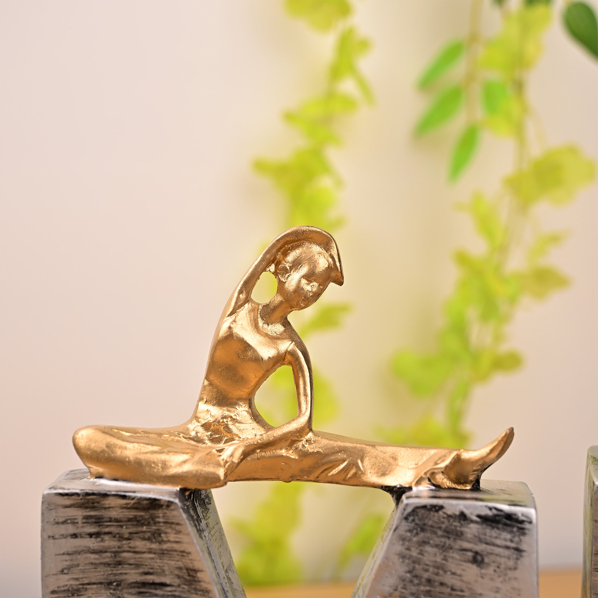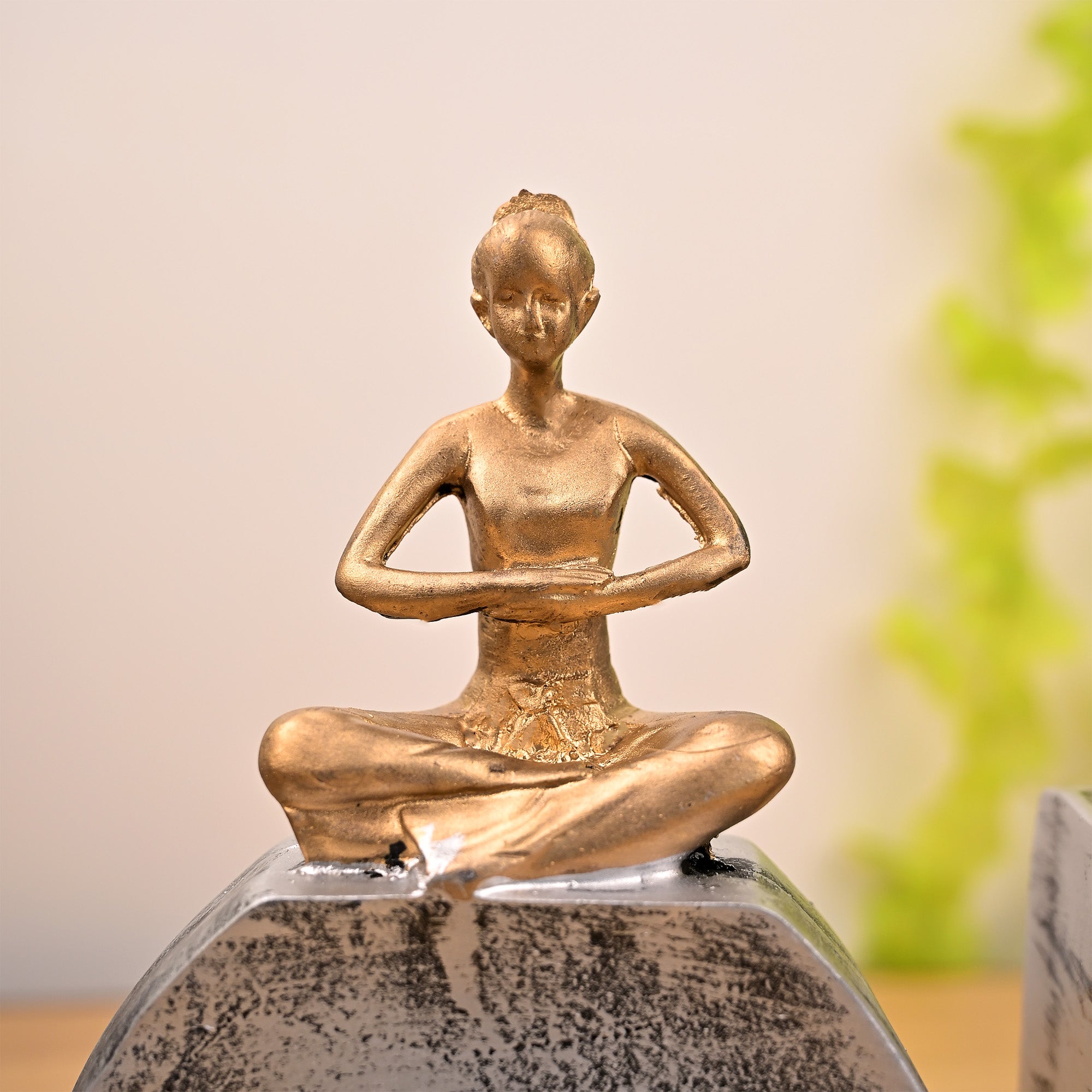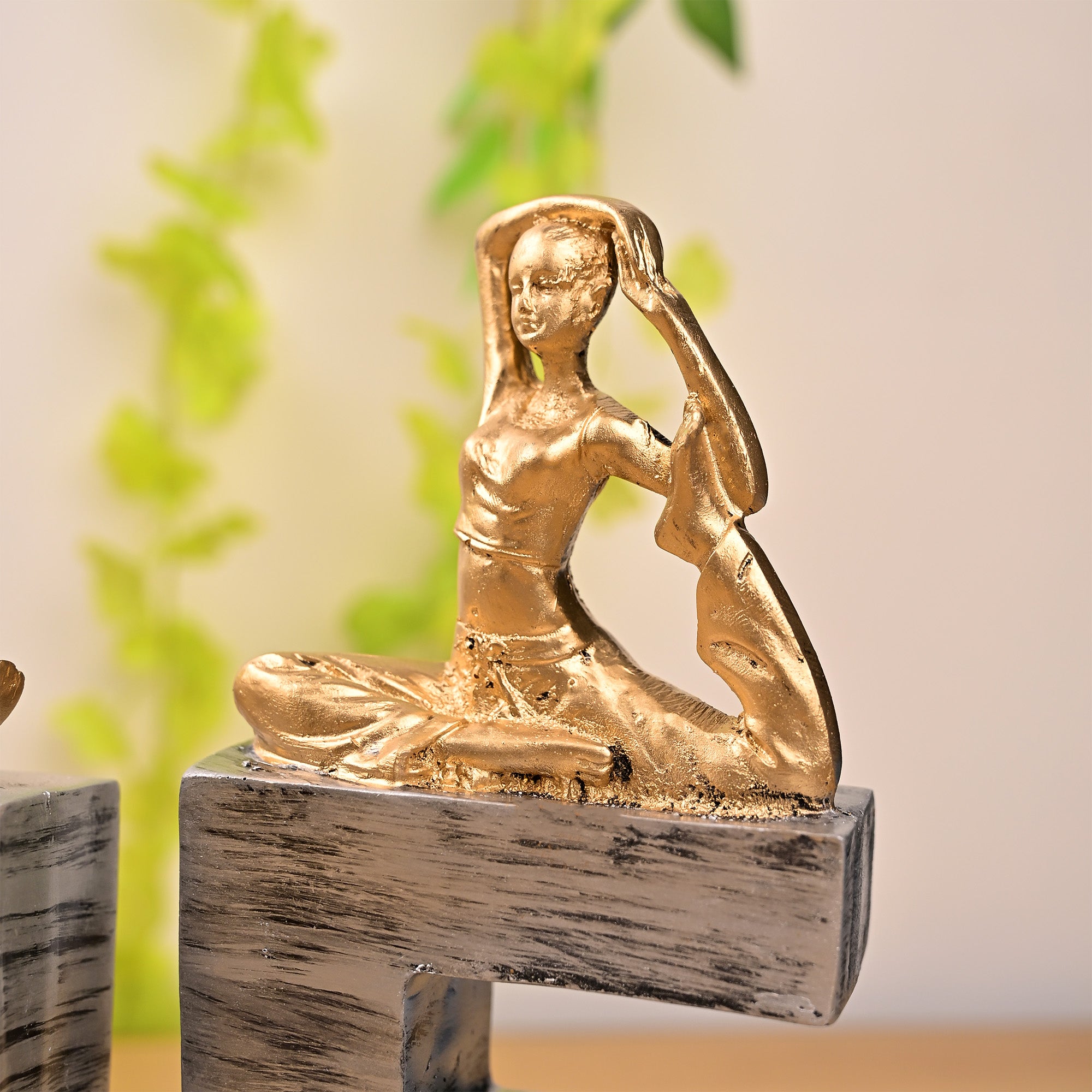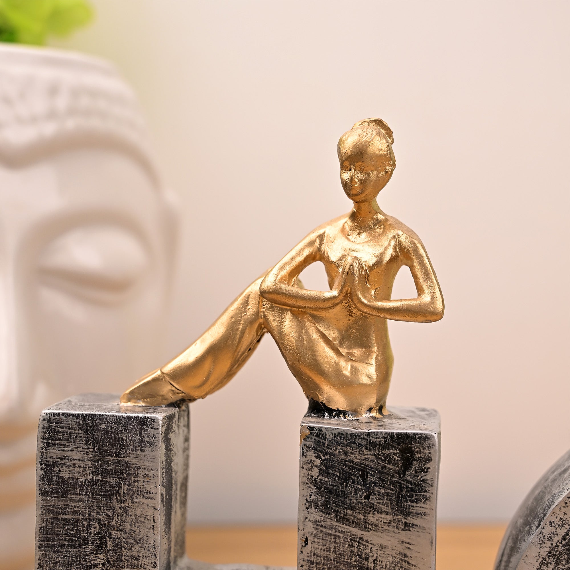 COD availableIntroduce a touch of peace, balance, and harmony within your living space with the 'Peaceful Home Yoga Letters.' This unique showpiece spells 'HOME' with each letter embellished with a figurine gracefully performing a yoga pose. The statues are elaborated in calming grey and lustrous gold hues. The piece represents a state of calm and relaxation, enhancing the decor of your home. It also makes a thoughtful gift for yoga enthusiasts and practitioners seeking a serene environment.