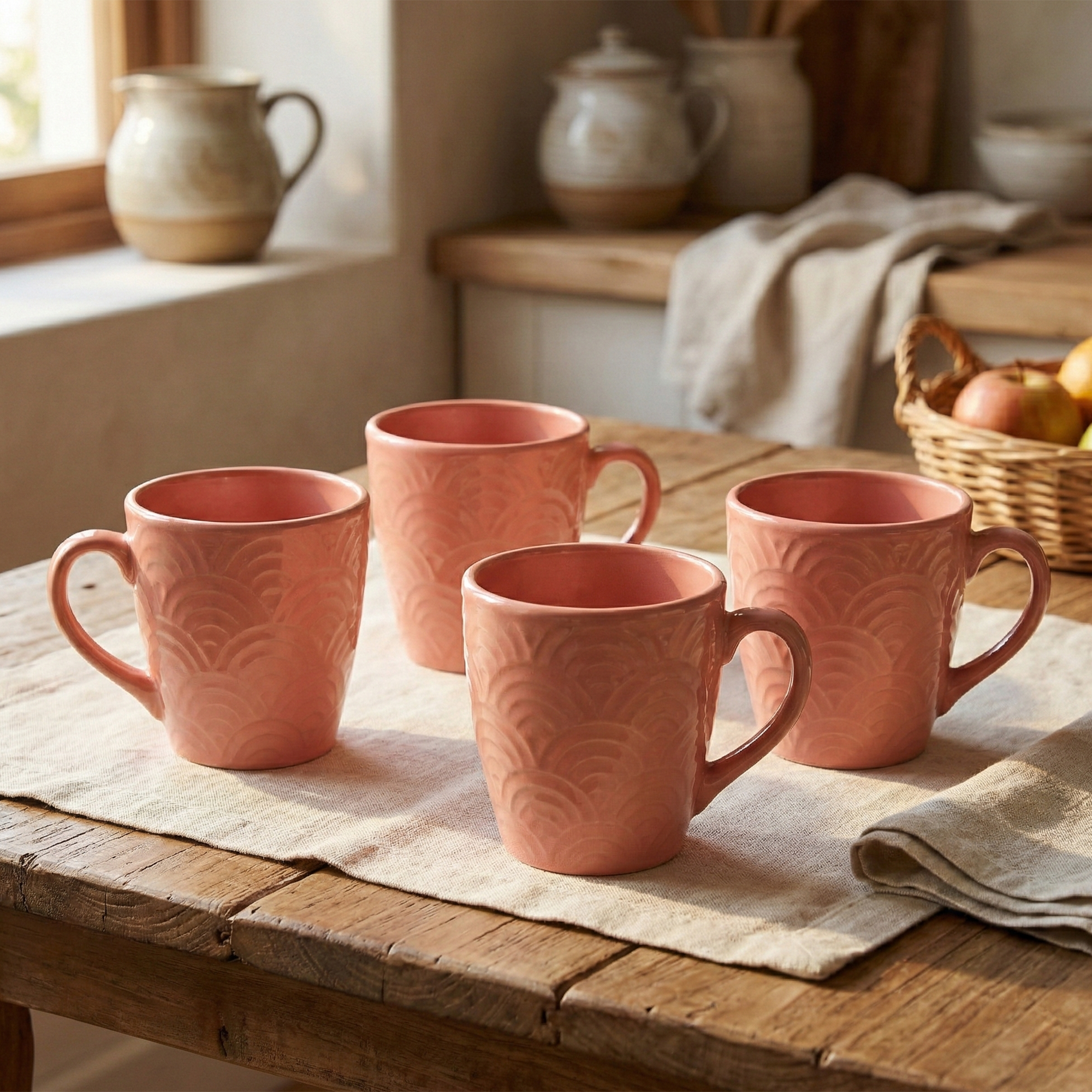 Peachy Coral Pink Ceramic Coffee Mug (Set of 4)