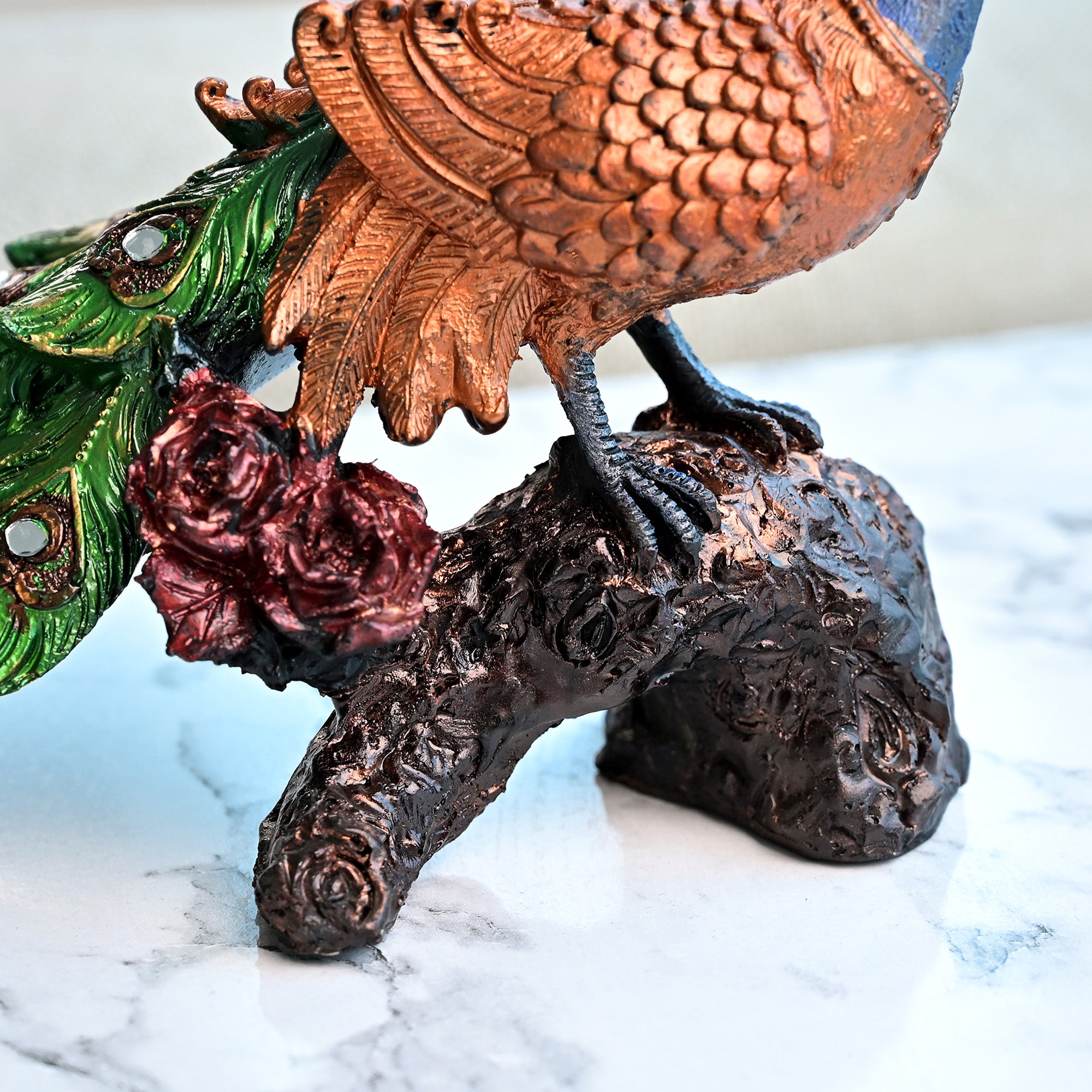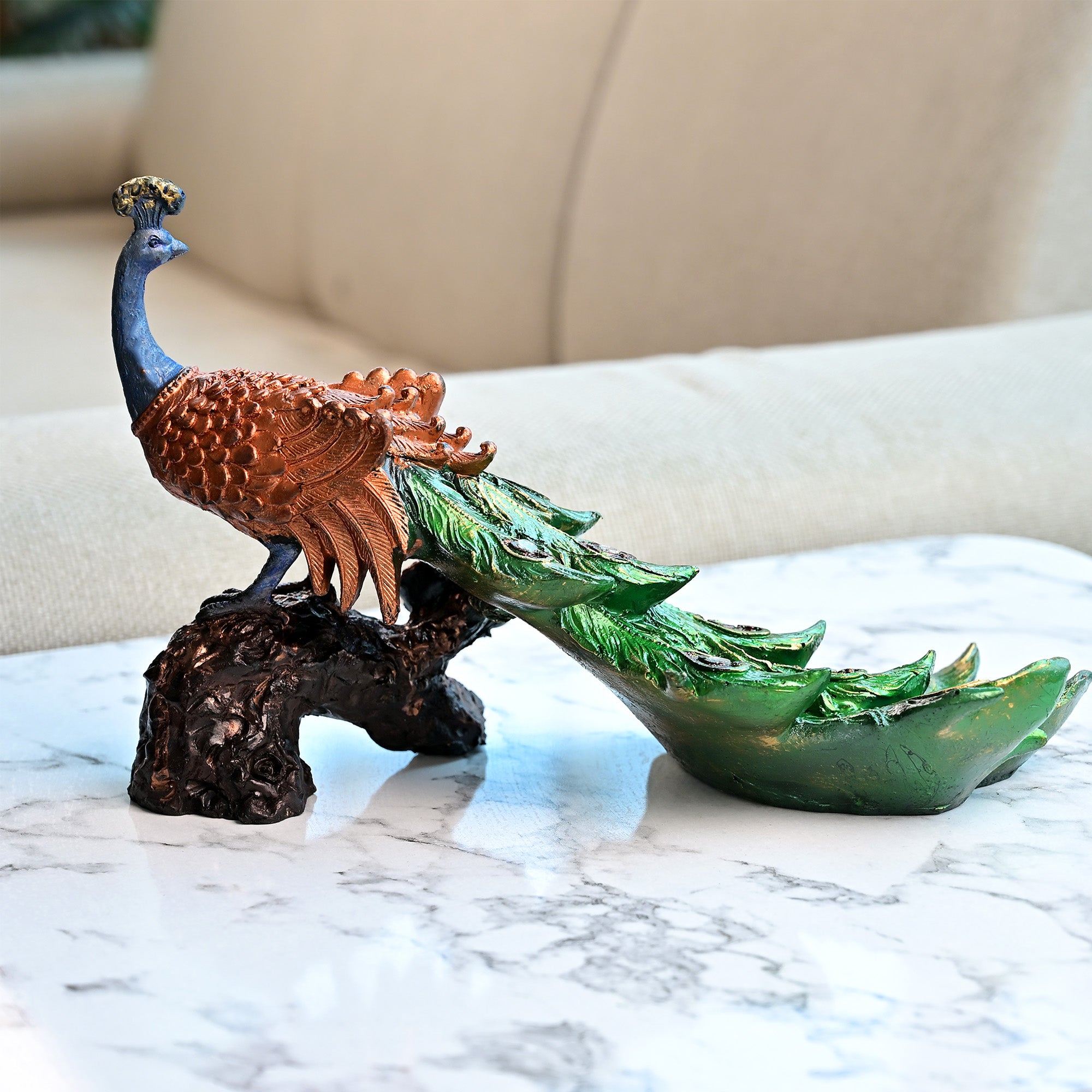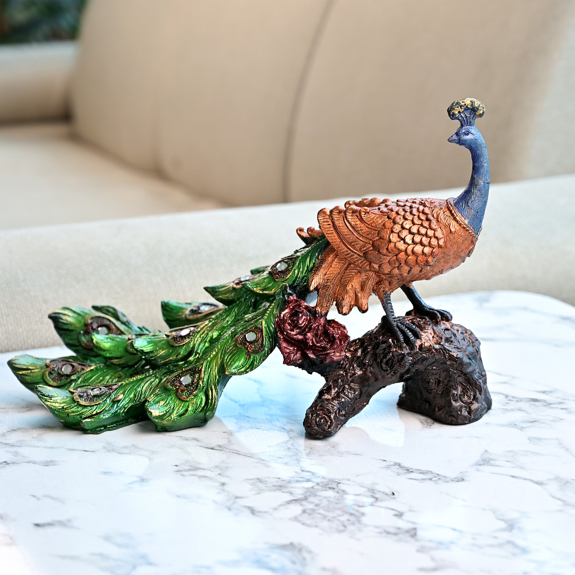 COD availableCelebrate the elegance and symbolism of the peacock with this stunning 'Peacock on Tree Trunk Statue.' This exquisite piece, made from premium resin, captures the peacock's vibrant beauty and impressive tail feathers with remarkable detail. The peacock, a symbol of wealth, prosperity, and regality across various cultures, stands proudly on a stylized tree branch, adding a touch of nature-inspired grace to any setting. This statue is a decorative masterpiece and can be used as a standalone focal point in your home decor.