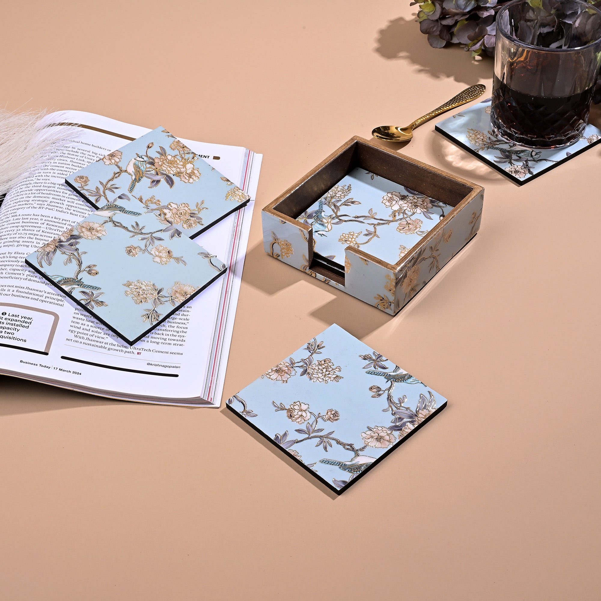 Premium Floral Elegance Glossy Coasters (Set of 6)
