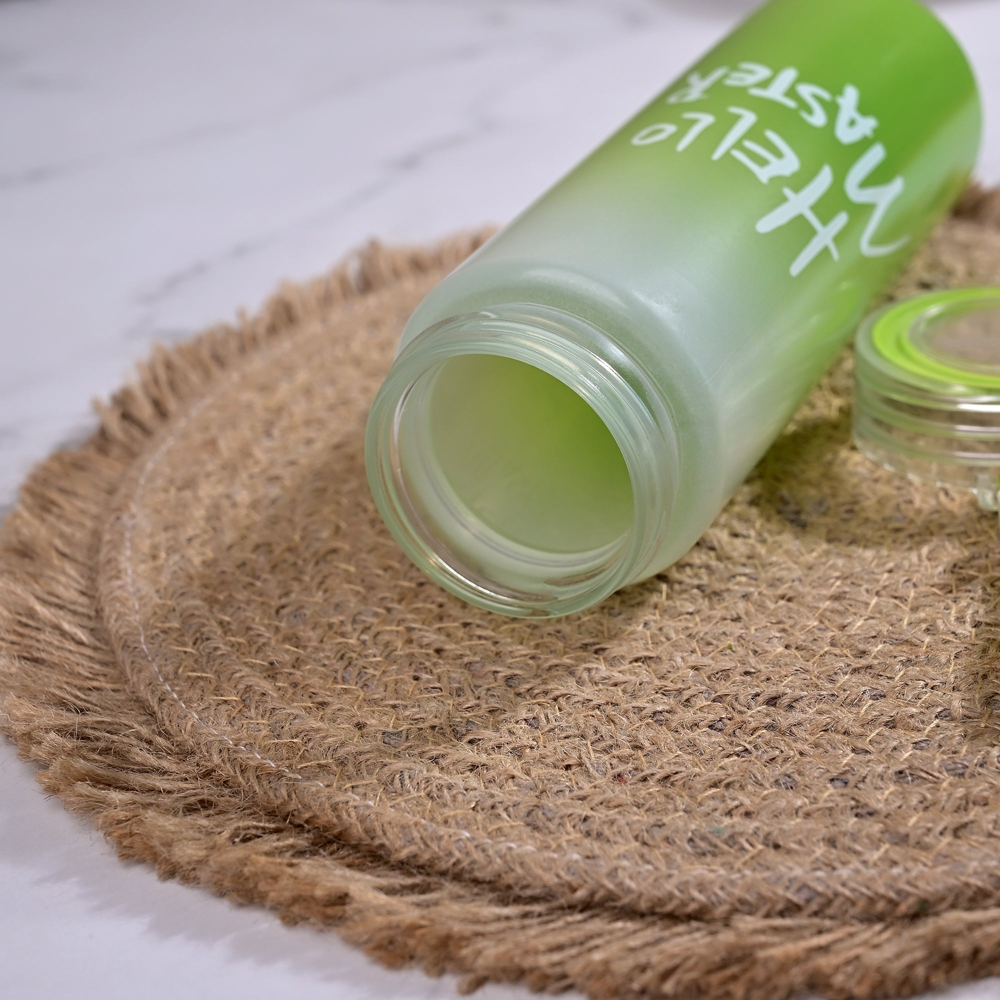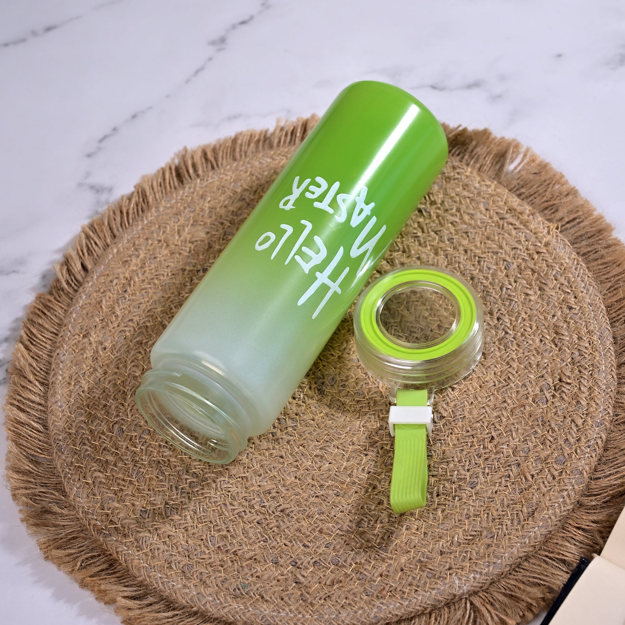 COD availableElevate your hydration experience with this exquisite green Premium Hello Master Glass Water Bottle, elegantly adorned with the playful phrase "Hello Master." Crafted for those who appreciate both style and functionality, this chic accessory seamlessly blends luxury with a touch of whimsy, making it the perfect companion for your daily adventures. Its vibrant hue and motivational inscription serve as a delightful reminder of your mastery over life's challenges, ensuring you stay refreshed and inspired wherever you go.