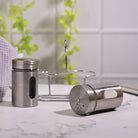 COD availableThis elegant set of two stainless steel Premium Salt and Pepper Condiment Set with Adjustable Pour Holes is designed for both functionality and style, featuring a sleek, modern aesthetic that complements any dining table. This sophisticated set features a sleek stainless steel outer layer and durable internal glass for a touch of modern elegance and long-lasting use. The shakers are securely housed on a sturdy wooden stand, adding a touch of warmth and sophistication to your kitchen or dining area. Perfect for everyday use or special occasions, this set enhances your culinary experience while keeping your seasonings easily accessible.