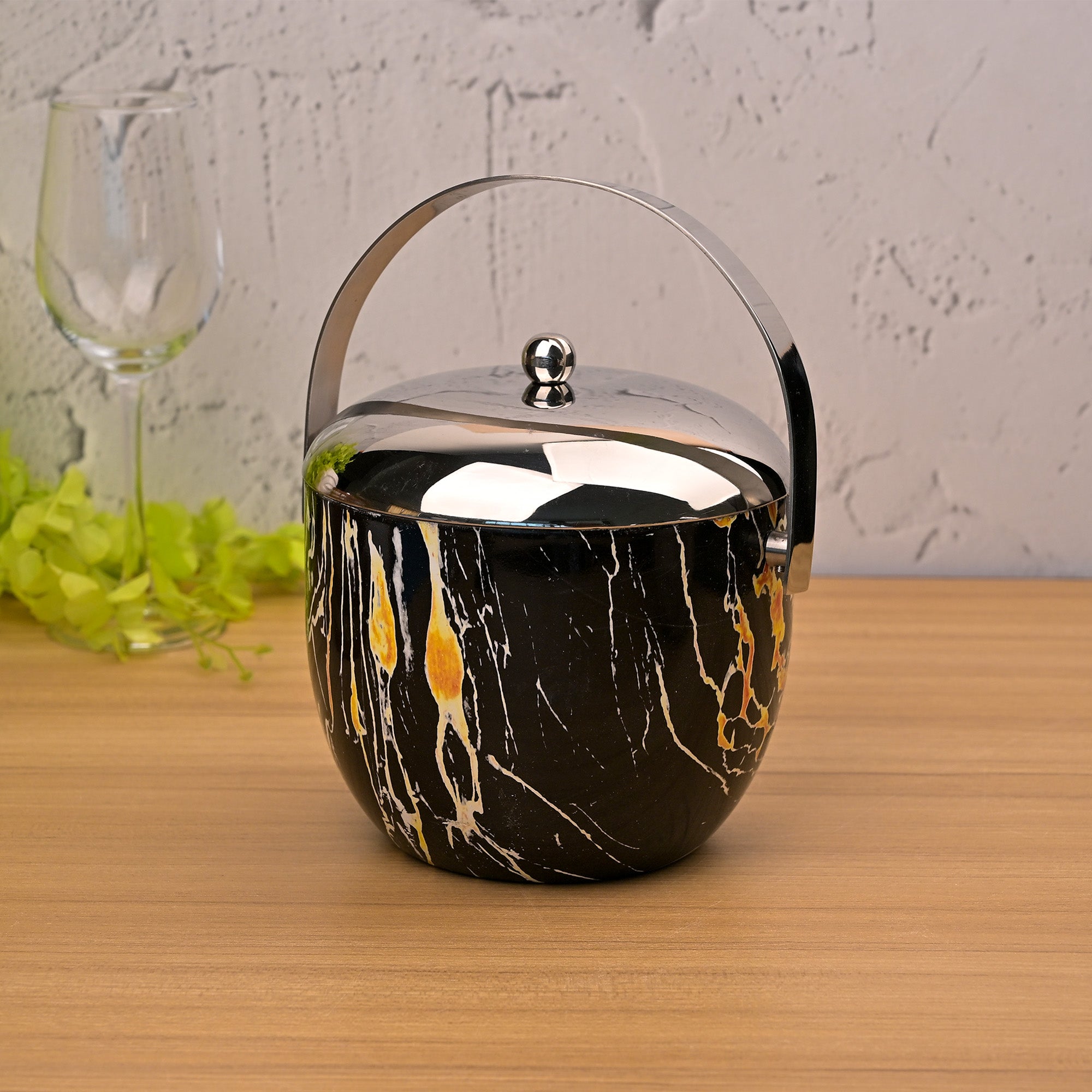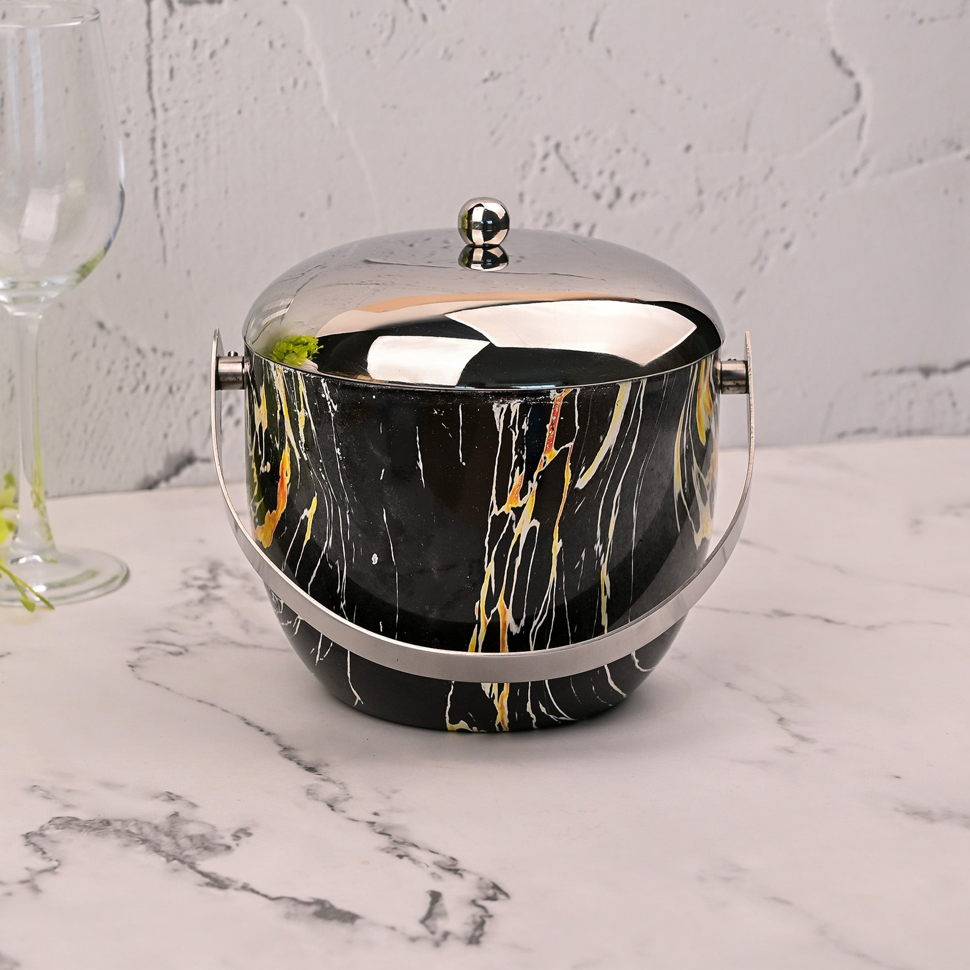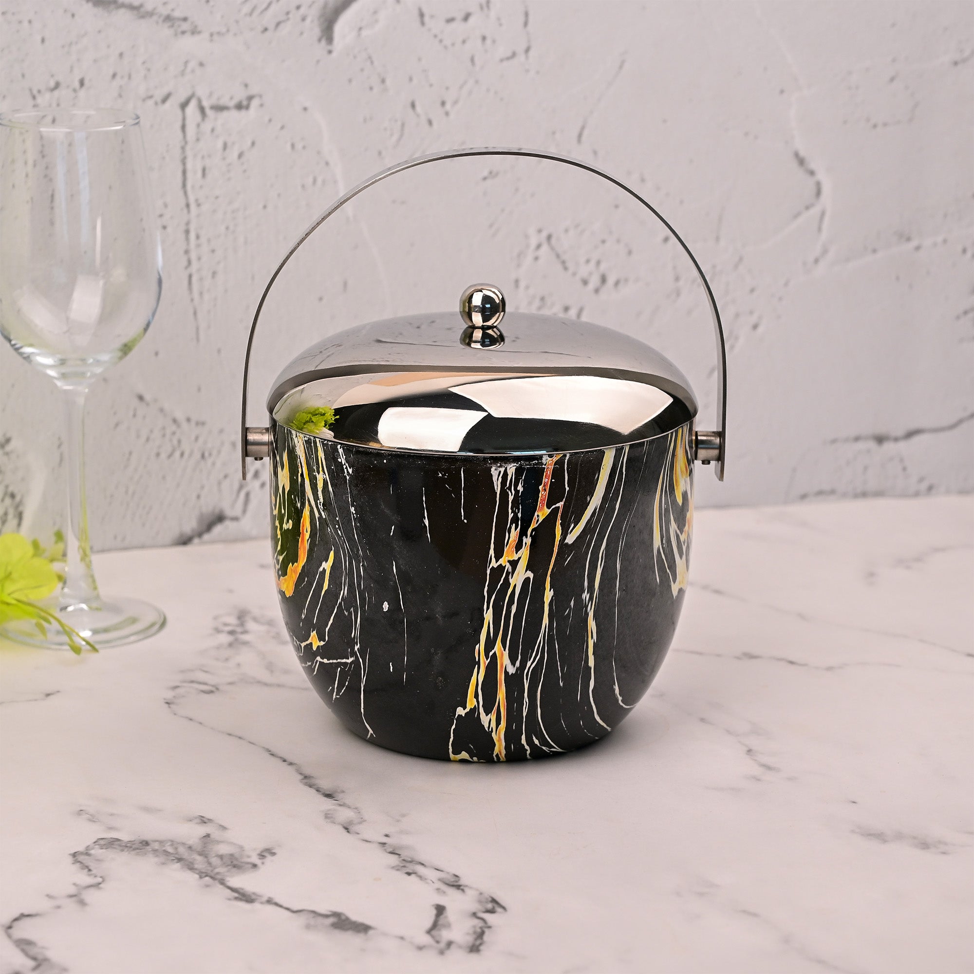 COD availableIntroducing our Premium Stainless Steel Ice Bucket, a perfect blend of elegance and functionality. Crafted from high-quality stainless steel, this ice bucket features a sleek black and yellow marble design, complemented by a sturdy handle for easy transport. Ideal for entertaining guests or enhancing your home bar, this stylish accessory keeps your beverages chilled while adding a touch of sophistication to any setting.