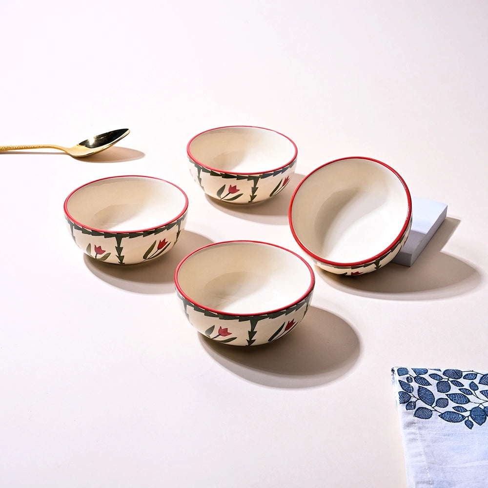 COD availableWe make sure this Premium Tropical Print Ceramic Bowl brings you closer to nature each time you look at it. Its warm off-white base feels cosy and natural and the hand-painted green leafy vine wraps around it like a little garden. The little red tulips create just the right amount of colour, so it's lively and elegant all at once. This beautiful shape shows off your snacks, sweets, and side dishes with a fresh, natural style. Crafted to feel comforting and familiar, it is more than a server; it is a little piece that turns everyday meals into something special.
