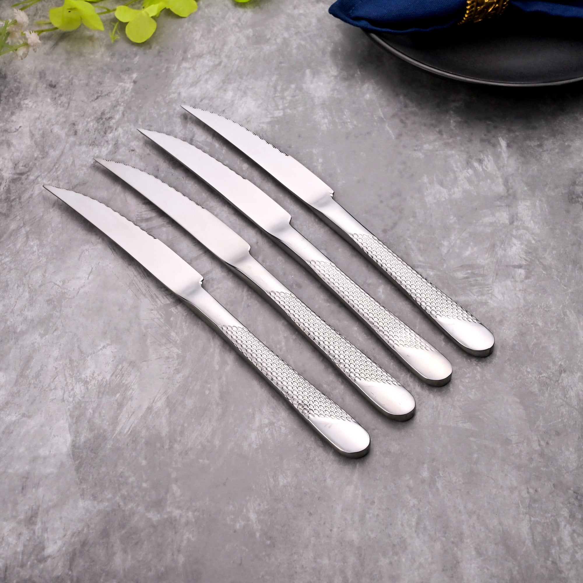COD availableThis knife is not ordinary, it is much more. The Prime Silver Stainless Steel Knife is made from premium-quality stainless steel and features a beautifully hammered texture on the handle, giving it a versatile look with a slick grip. Enjoy slicing through everything from fresh salads to hearty meals with ease and style.