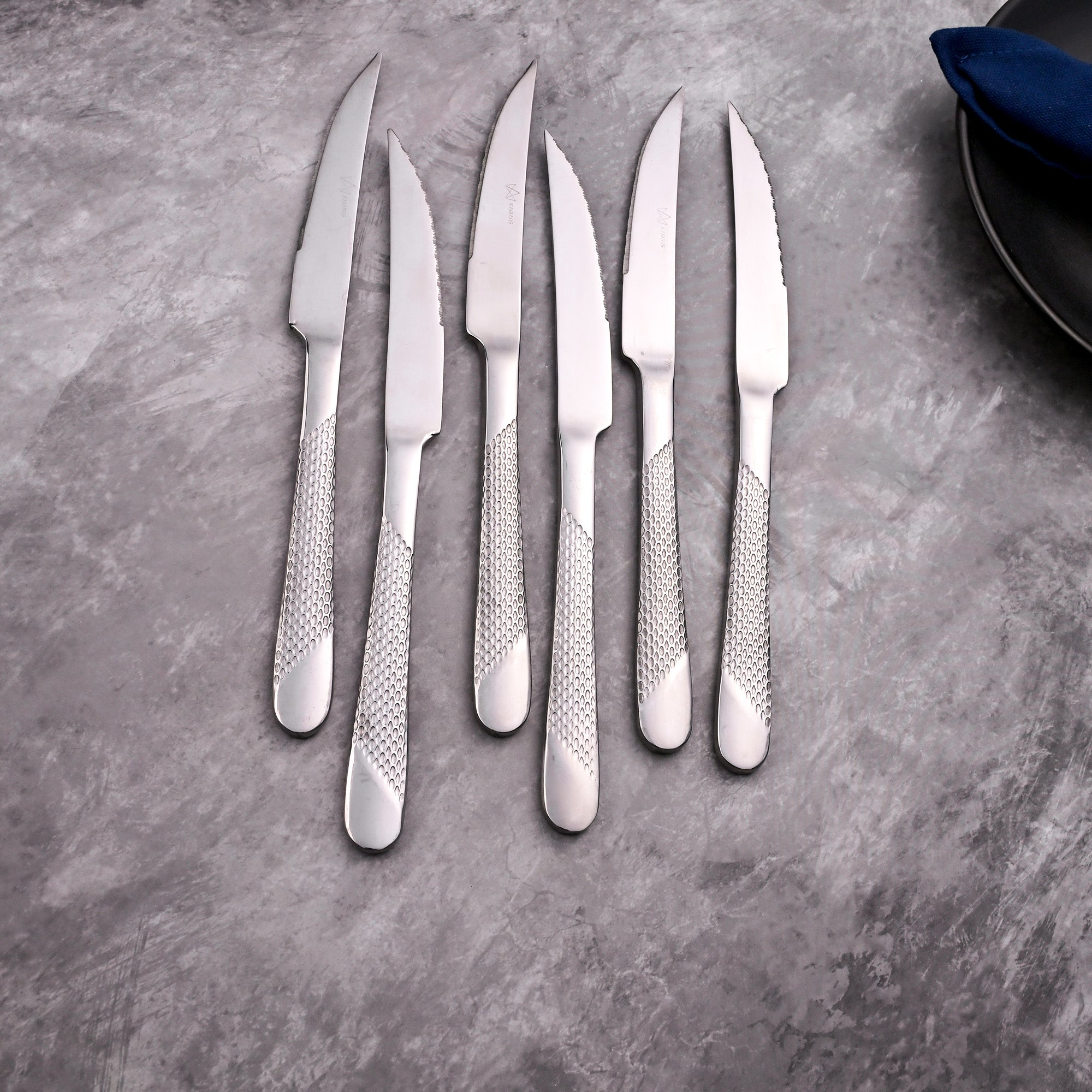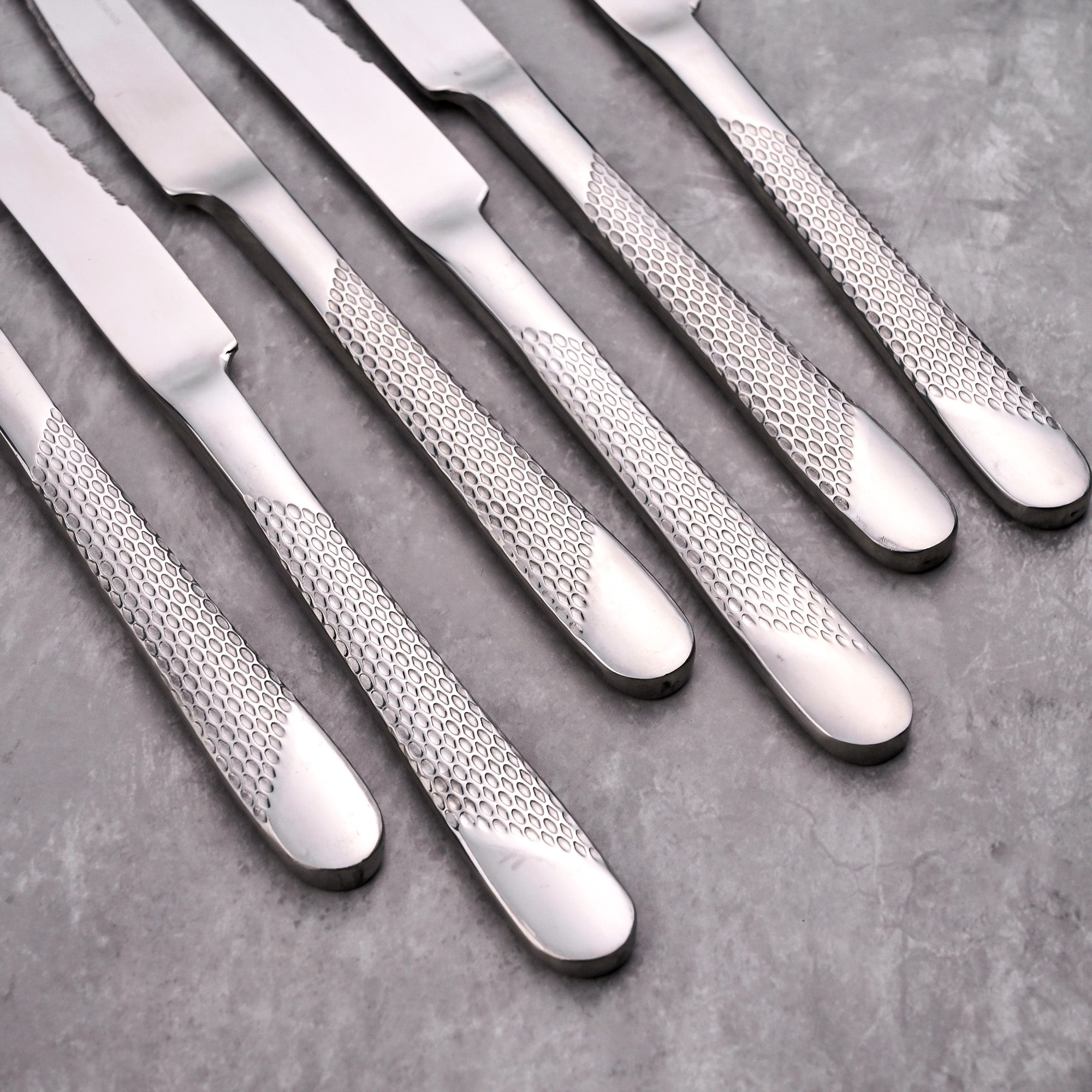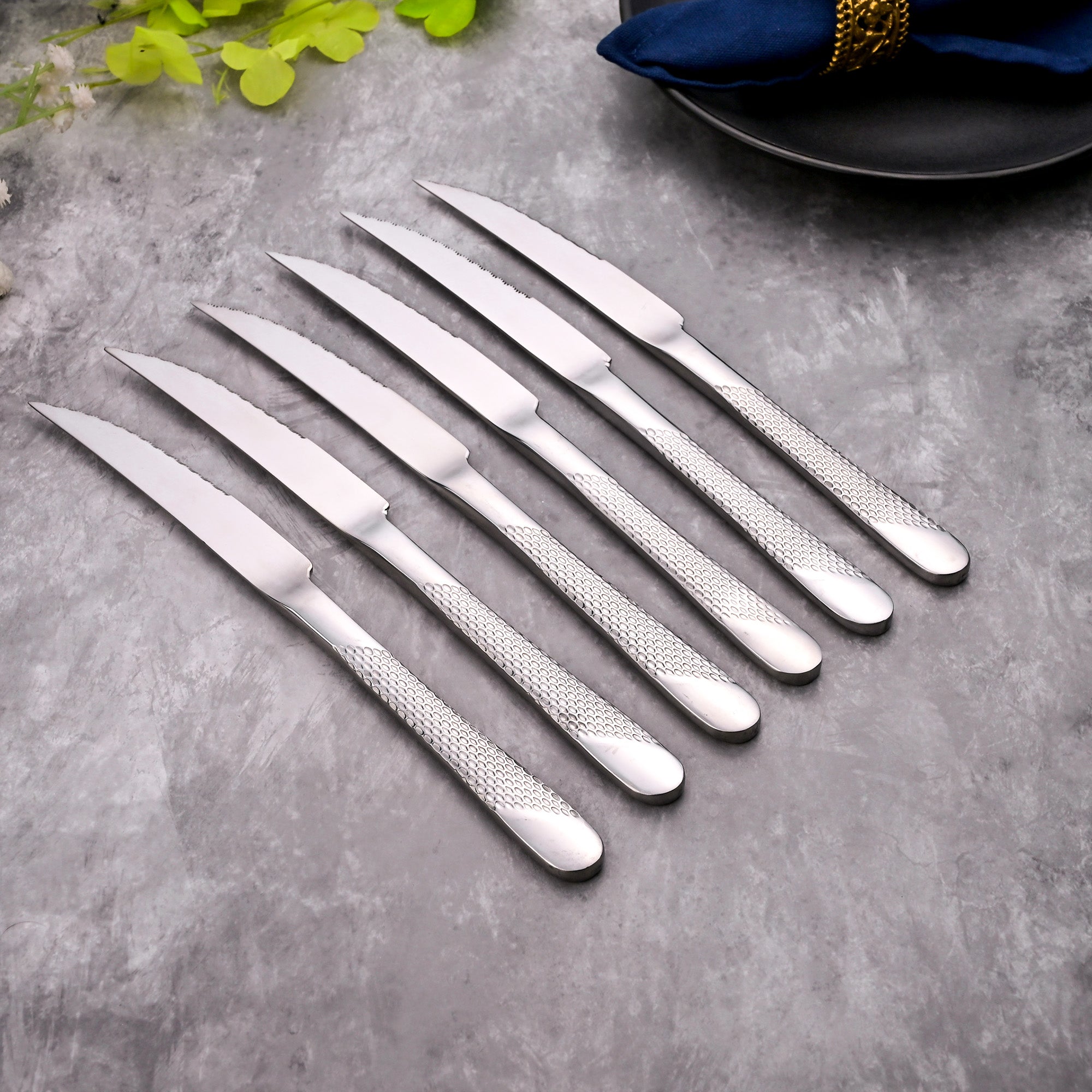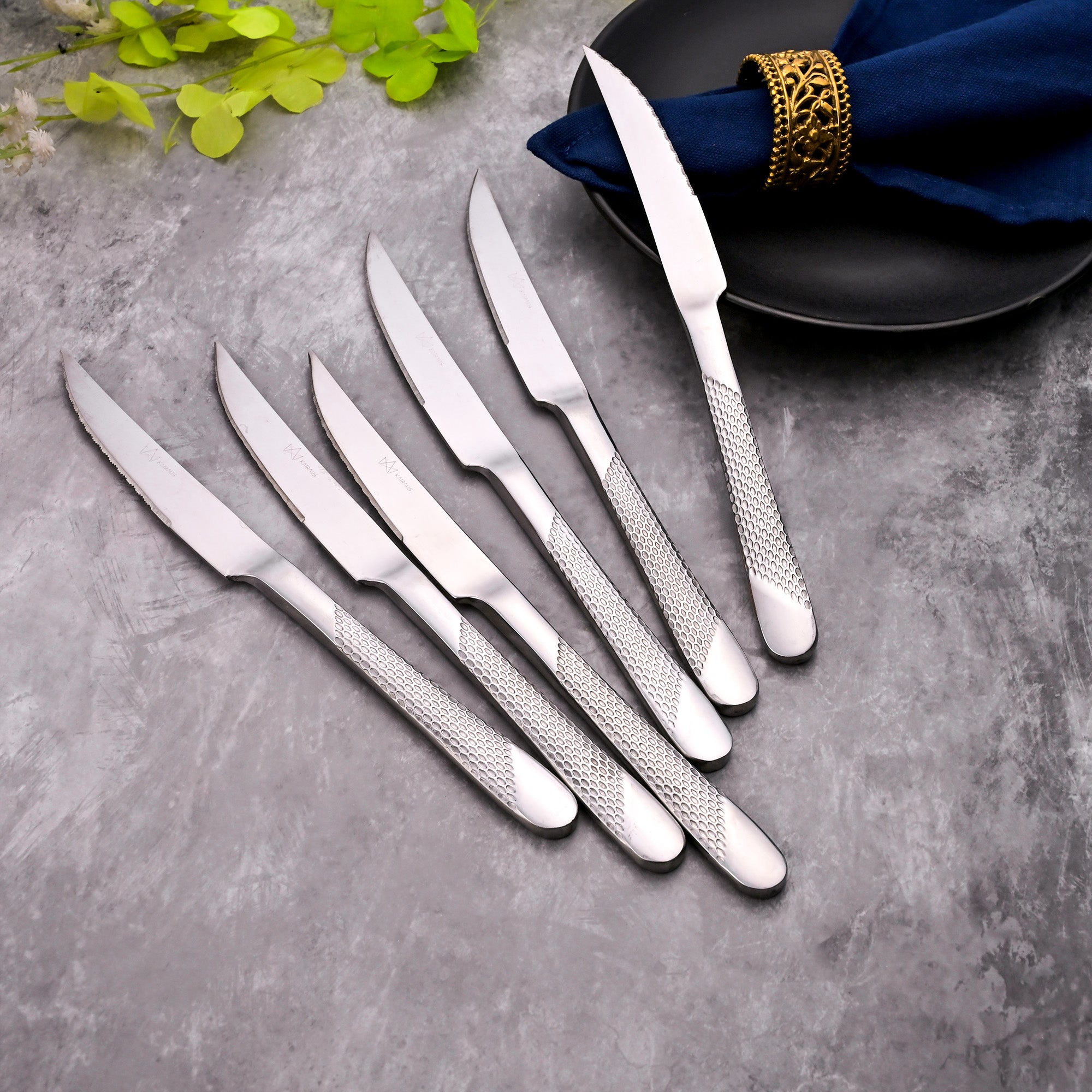 COD availableThis knife is not ordinary, it is much more. The Prime Silver Stainless Steel Knife is made from premium-quality stainless steel and features a beautifully hammered texture on the handle, giving it a versatile look with a slick grip. Enjoy slicing through everything from fresh salads to hearty meals with ease and style.