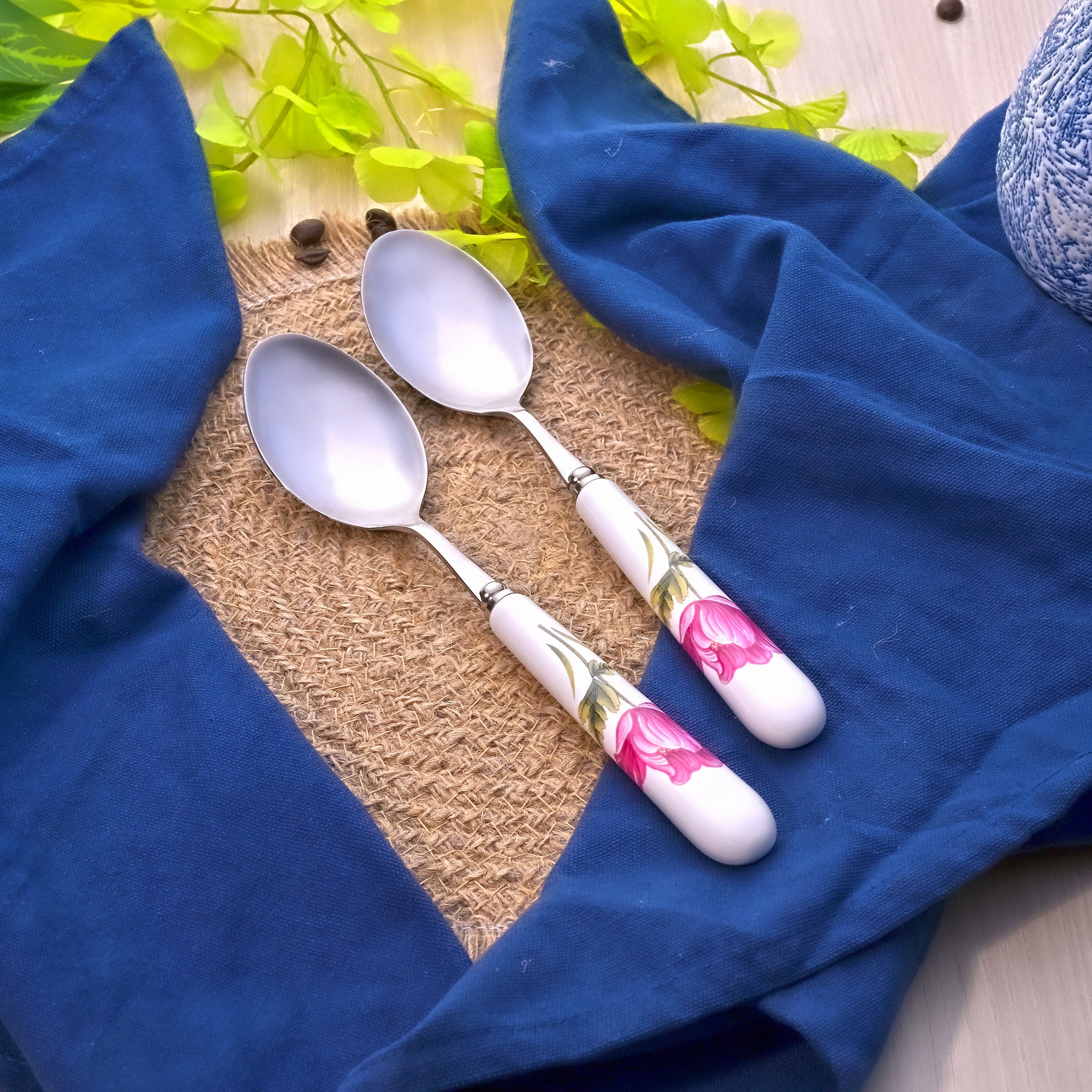 Regal Rose Print Ceramic-Handled Spoons (Set of 2)