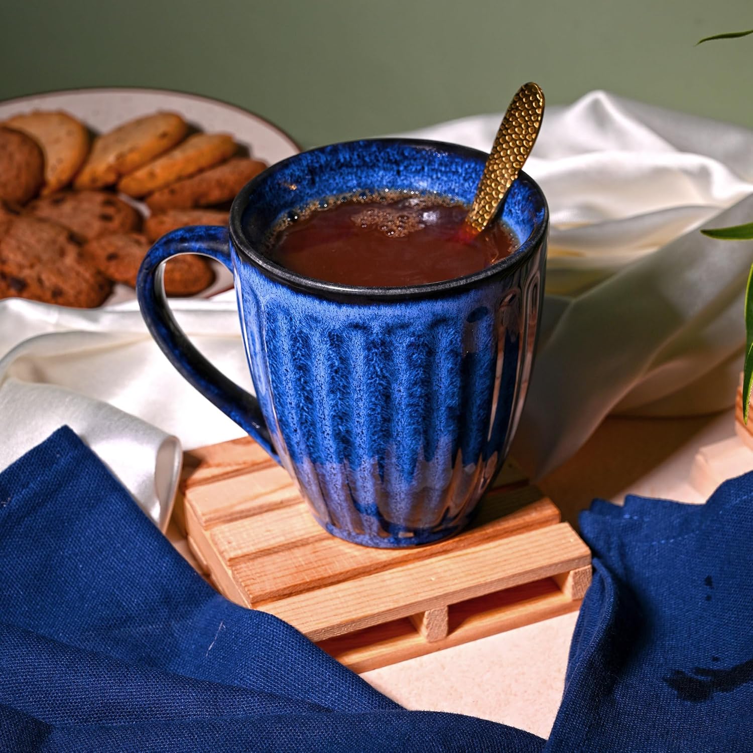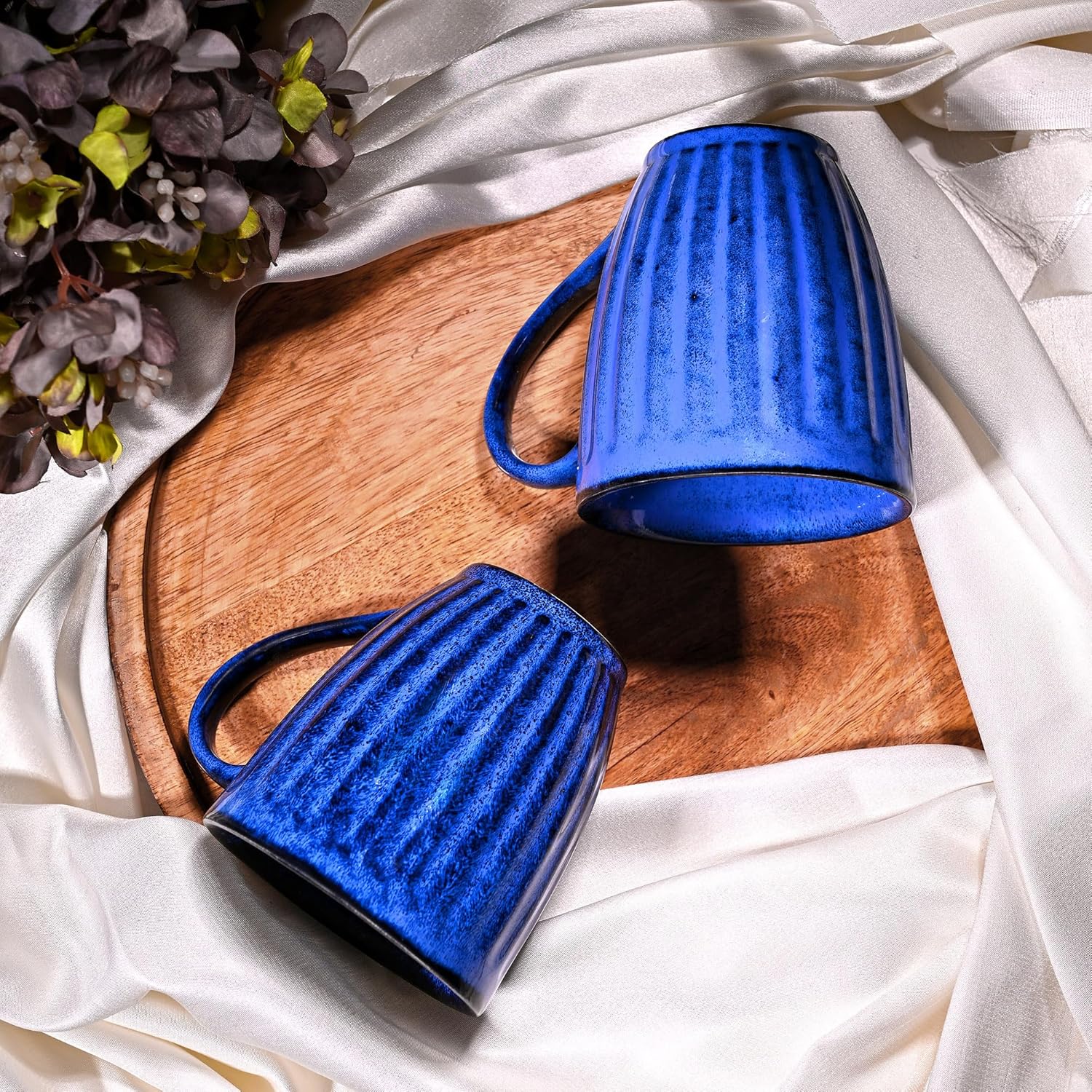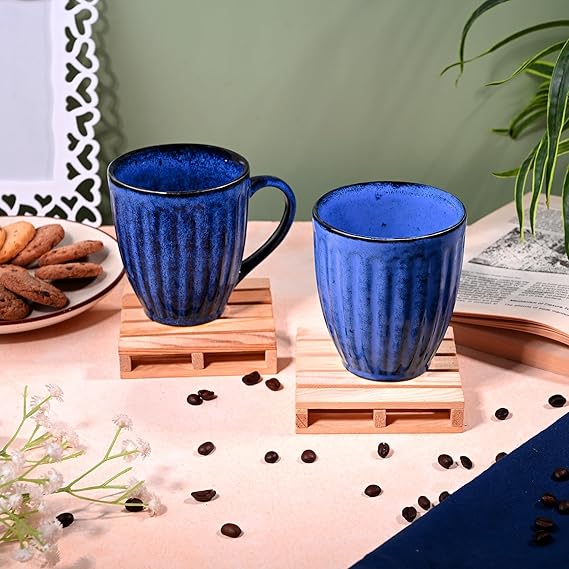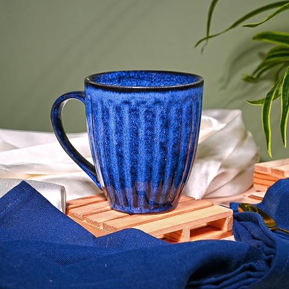 Royal Blue Ribbed Ceramic Coffee Mug (Set of 2)