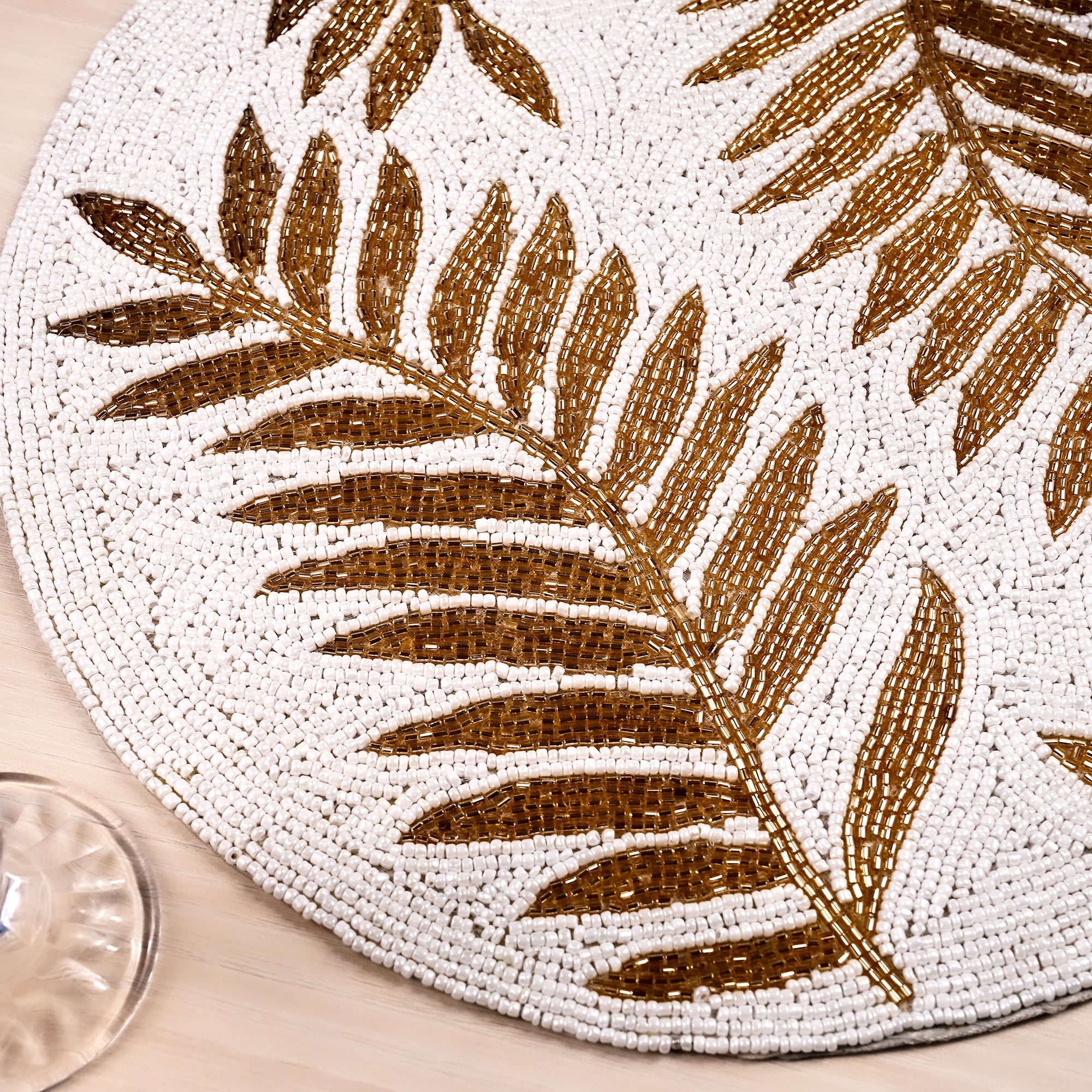 COD availableElevate your dining experience with this exquisite round Royal Gold Off-White Table Mat, adorned with opulent gold leaves that exude sophistication. Perfectly designed and adds a touch of luxury to any setting. It is also transforming your table into a stunning focal point. Indulge in the artistry of its intricate detailing, where elegance meets functionality, making every meal a lavish affair.Elevate your dining experience with this exquisite round Royal Gold Off-White Table Mat, adorned with opulent gold leaves that exude sophistication. Perfectly designed and adds a touch of luxury to any setting. It is also transforming your table into a stunning focal point. Indulge in the artistry of its intricate detailing, where elegance meets functionality, making every meal a lavish affair.