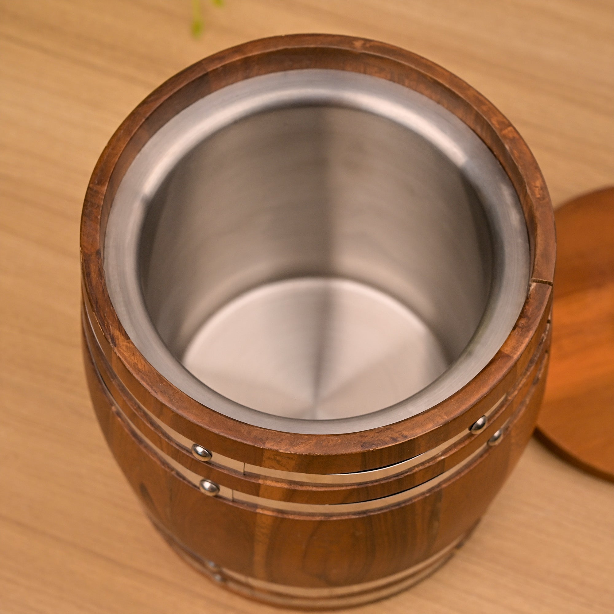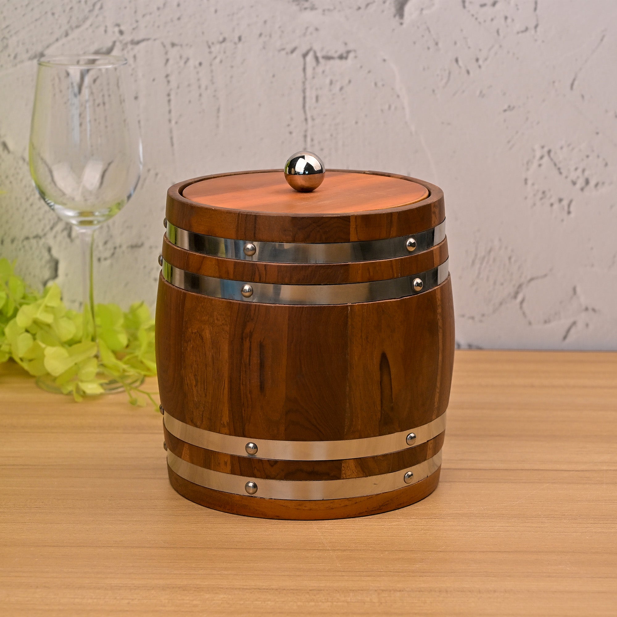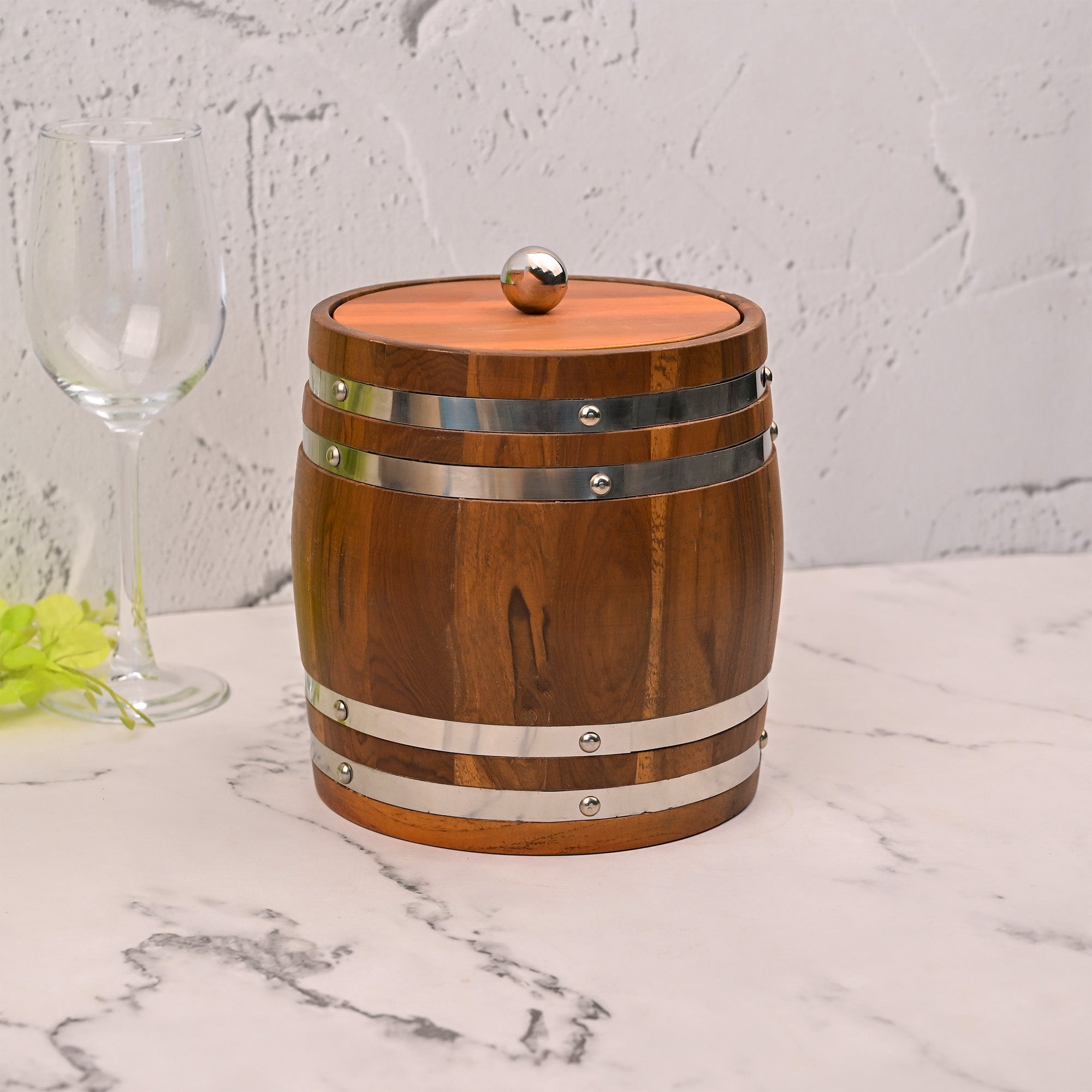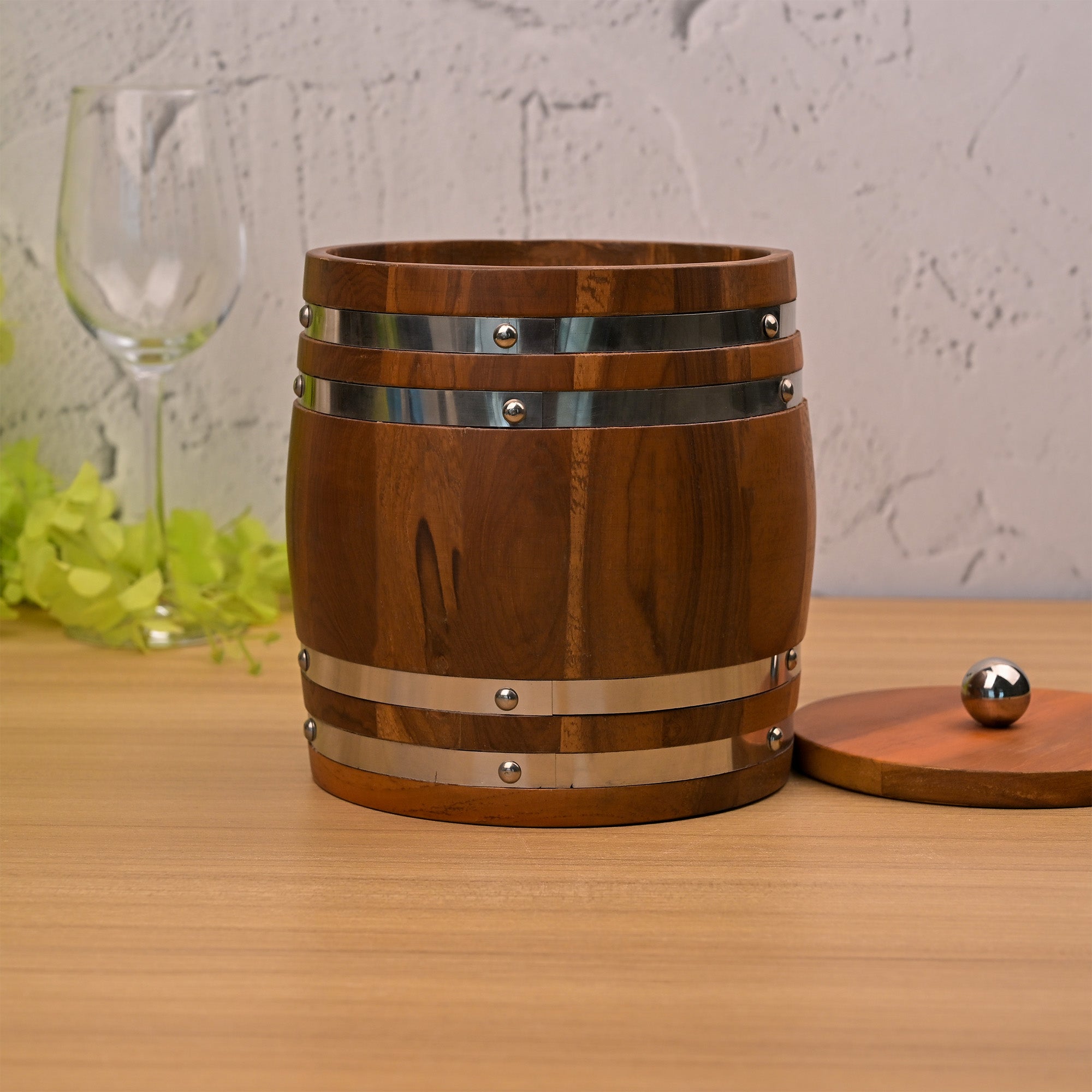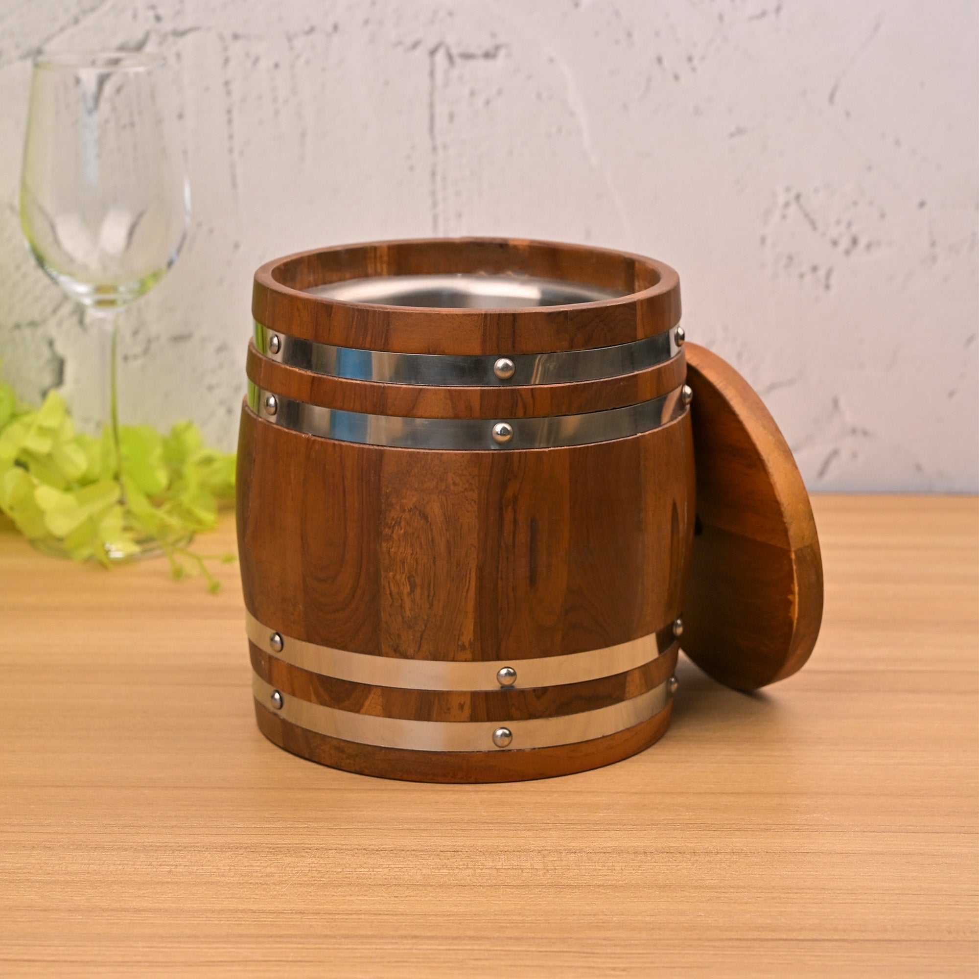 COD availableThis Rustic Wooden Ice Bucket is a delightful centrepiece for any gathering, meticulously crafted from premium wood to ensure beauty and durability. Its charming barrel design exudes timeless elegance while offering practical functionality. It features a robust lid and is made with stainless steel from the inside that enhances insulation and keeps your beverages perfectly chilled for hours. Whether for outdoor events or intimate indoor gatherings, this ice bucket harmoniously blends rustic sophistication with enduring quality, making it an exquisite choice for entertaining guests or savouring serene moments at home.