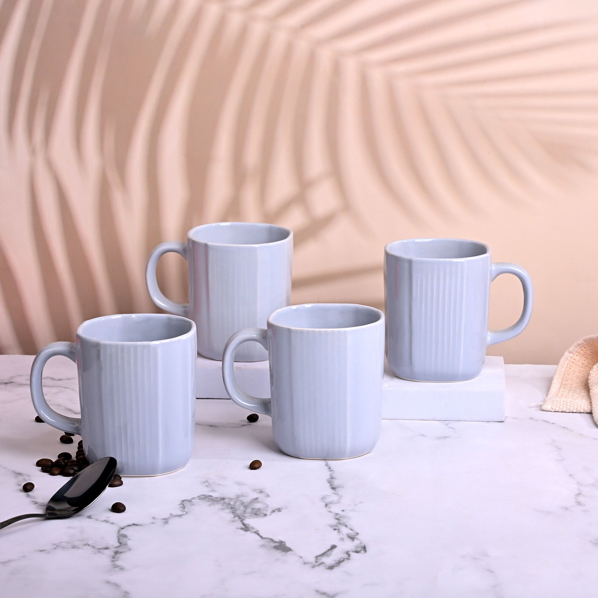 Serene Sky Blue Ceramic Coffee Mug (Set of 4)