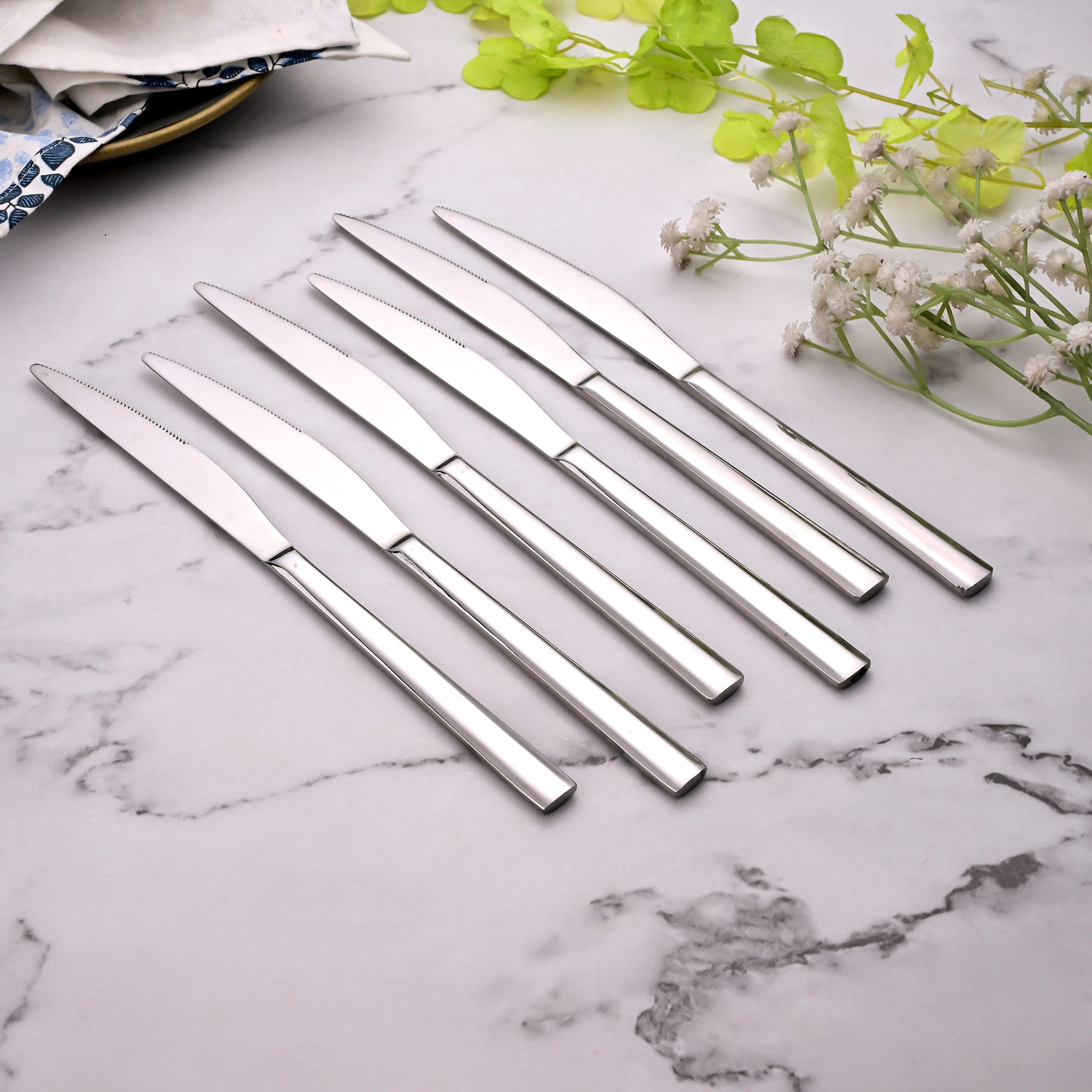 Perfect for slicing through veggies, fruits, or plating up elegant meals, these knives offer a comfortable grip and lasting sharpness. Made from high-quality stainless steel, they're durable enough for daily use and graceful enough for dinner parties.