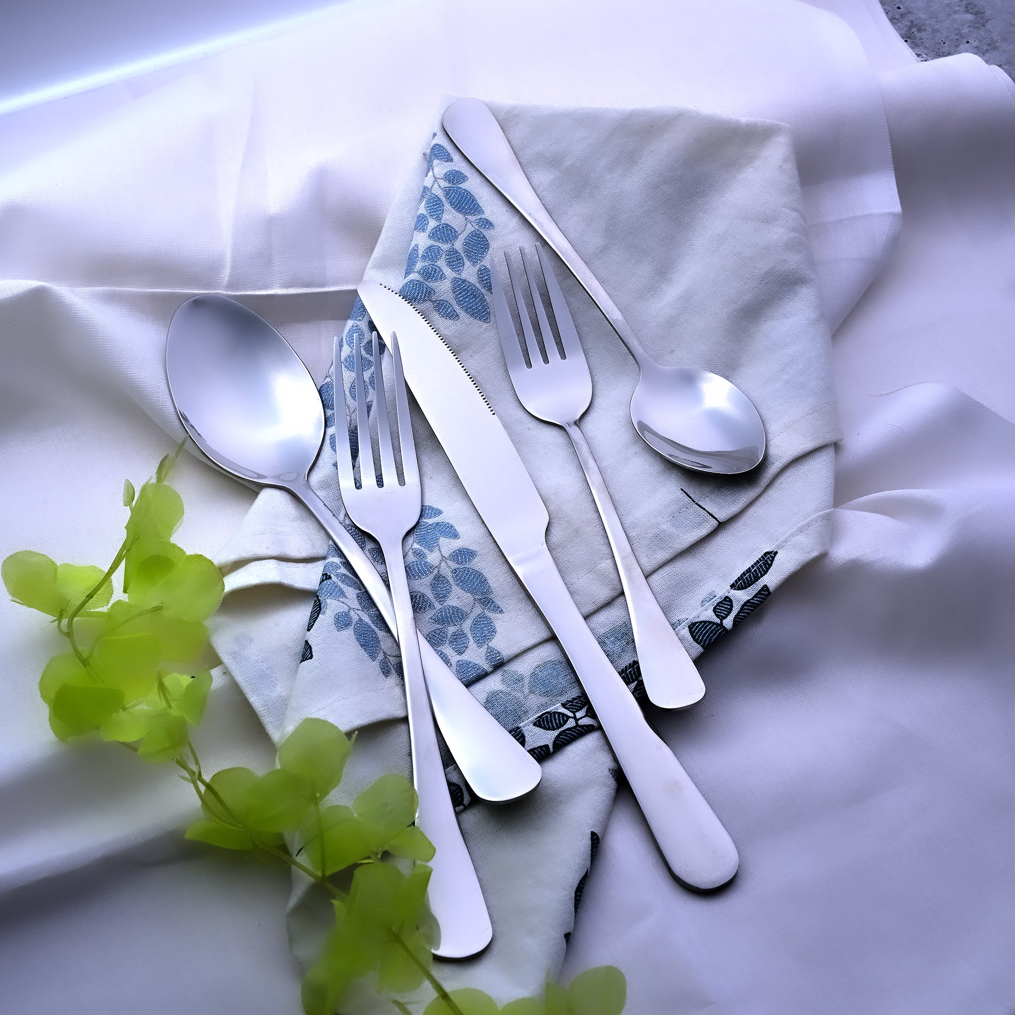 Stainless Steel cutlery is evergreen, and this set is one of the best, it never fades or dulls over time. Its simple, shiny finish isn’t just beautiful but also feels great in your hand.