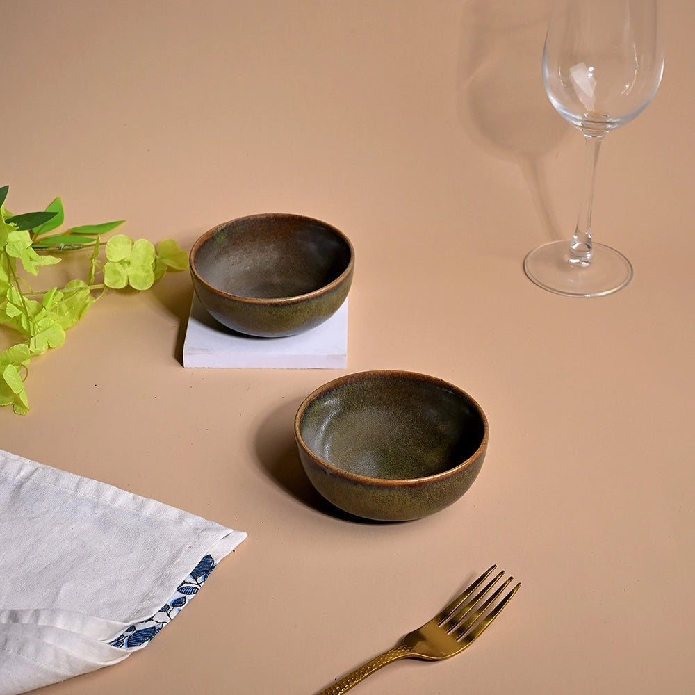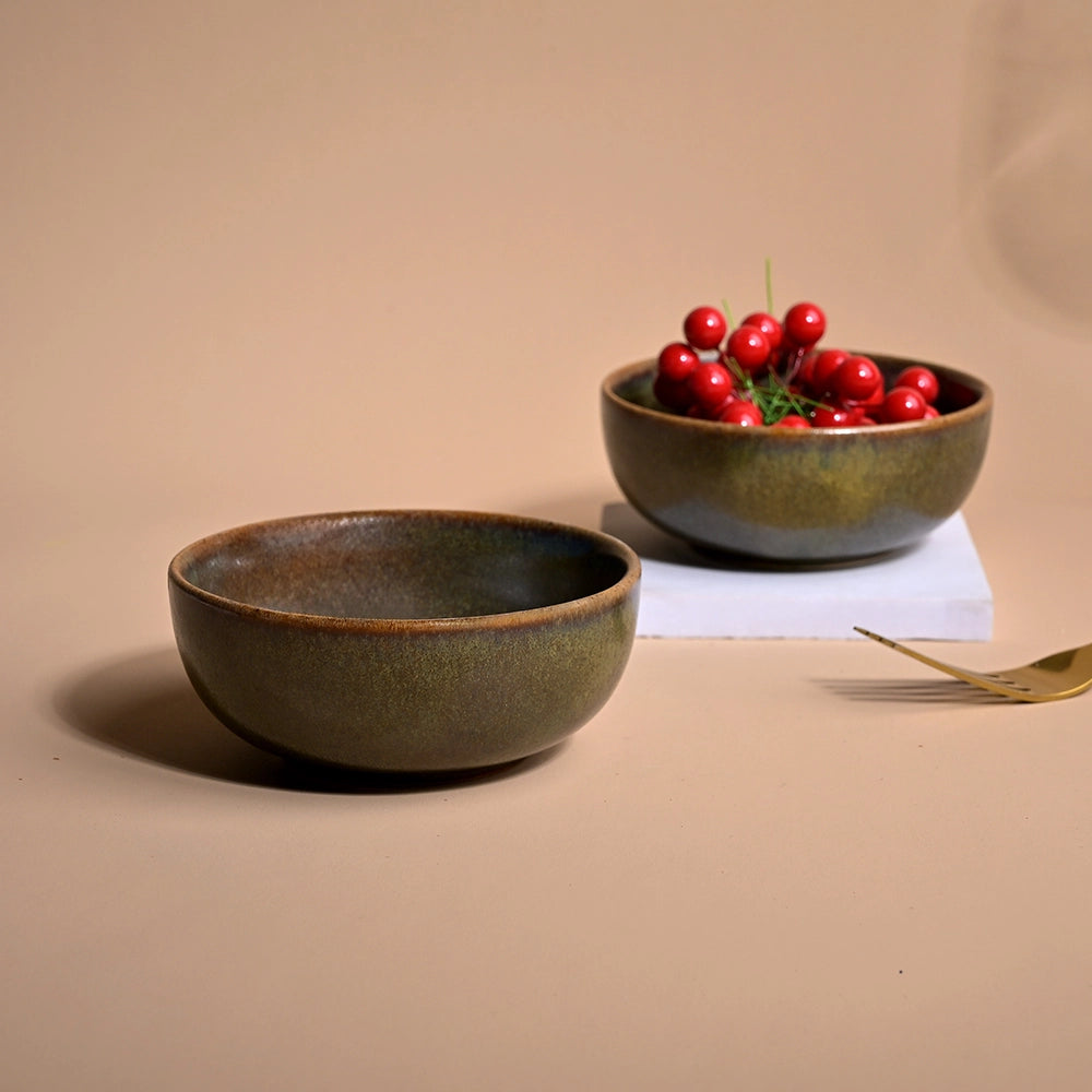 Stylish Brown Glossy Ceramic Bowl (Set of 2)