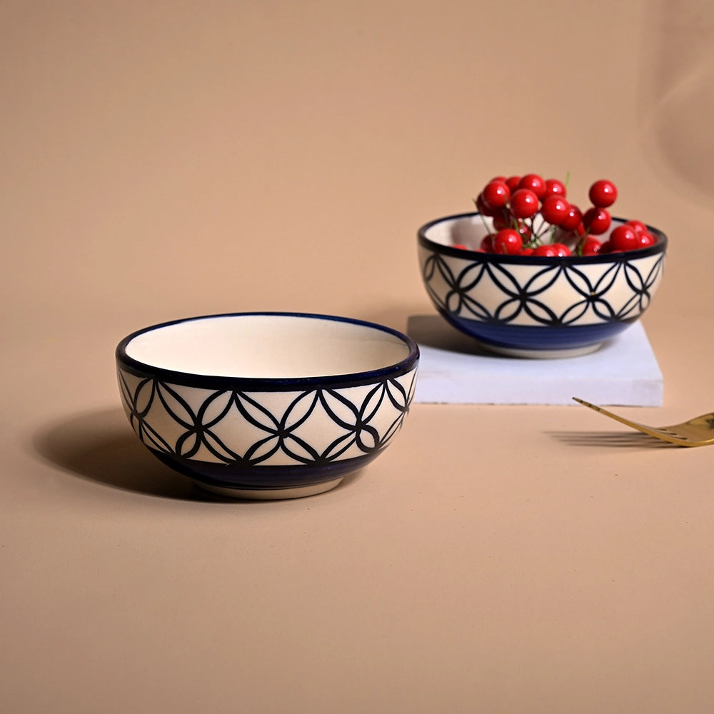 COD availablePresenting the classy form of bowls that can instantly enhance any type of food to look more elegant and fresh. We bring you the kiln-glazed finish bowl set created to make your ordinary food look more beautiful and appealing to the eyes. These bowls are made of high-quality ceramic and designed to be durable for everyday use. The soft blue print pattern adds a graceful touch to the bowls and helps to match them with any setup. You can serve sabzi, fruits, dessert, and much more. Instead of overthinking how or what to present your food in, place them on the table and let your food do the talking.