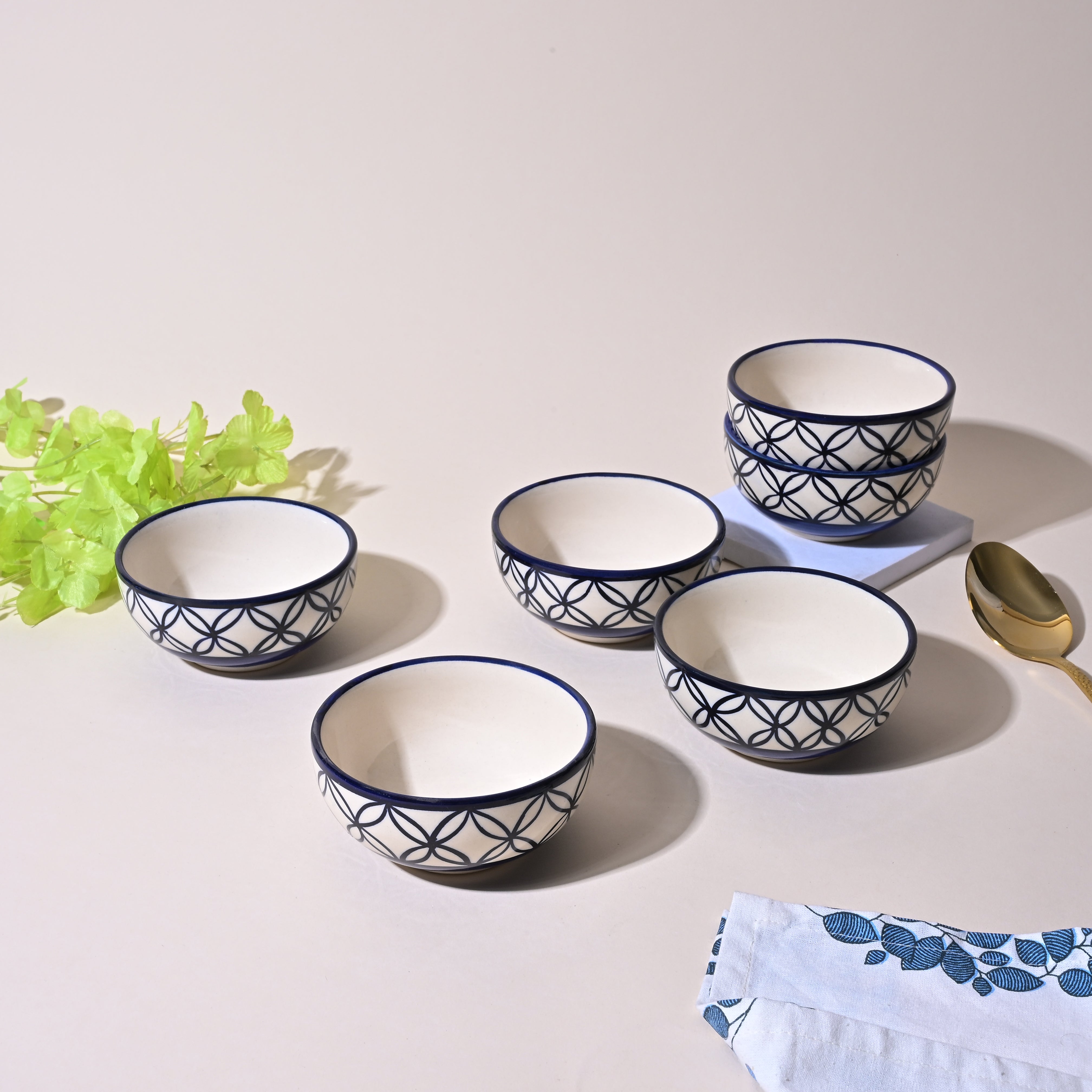 COD availablePresenting the classy form of bowls that can instantly enhance any type of food to look more elegant and fresh. We bring you the kiln-glazed finish bowl set created to make your ordinary food look more beautiful and appealing to the eyes. These bowls are made of high-quality ceramic and designed to be durable for everyday use. The soft blue print pattern adds a graceful touch to the bowls and helps to match them with any setup. You can serve sabzi, fruits, dessert, and much more. Instead of overthinking how or what to present your food in, place them on the table and let your food do the talking.