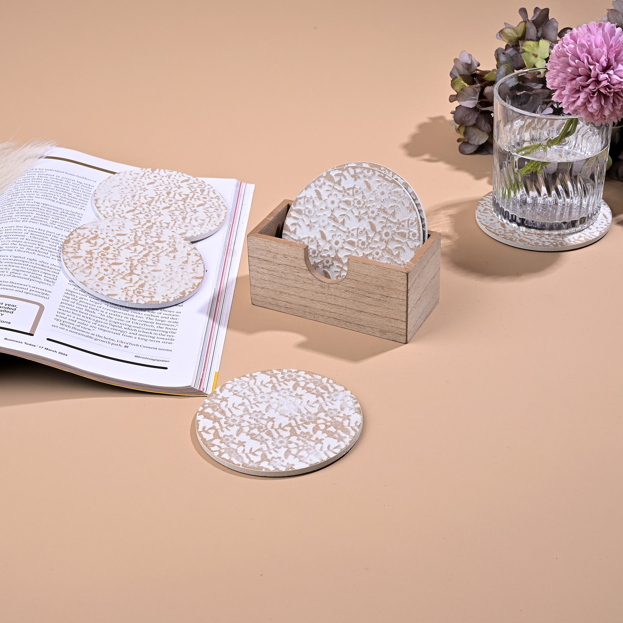 COD availableAdd a touch of rustic charm with our Stylish Gold-White Wooden Round Coasters to your table setting. These coasters are made up of high-quality wood and are both durable and functional. It also offers reliable protection against drink stains and heat.