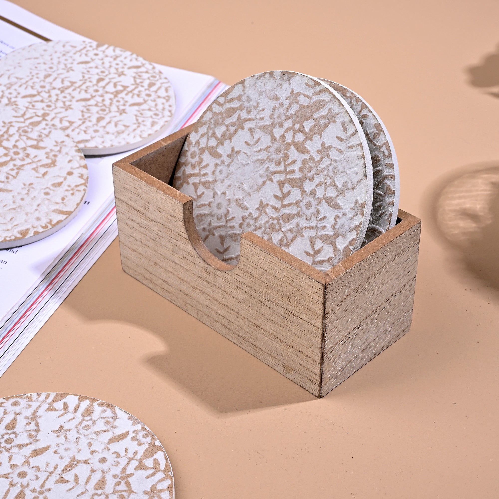 Stylish Gold-White Wooden Round Coasters (Set of 6)