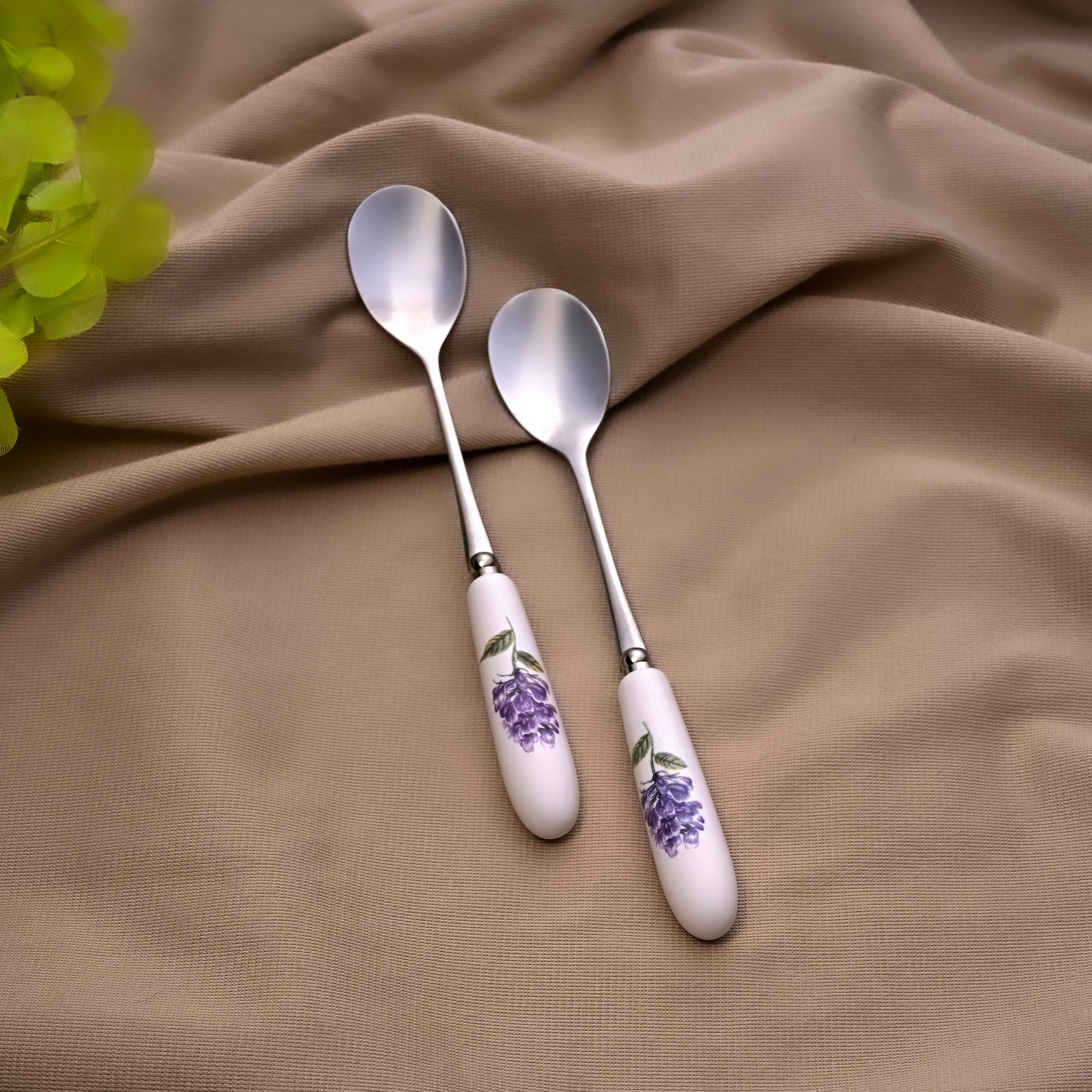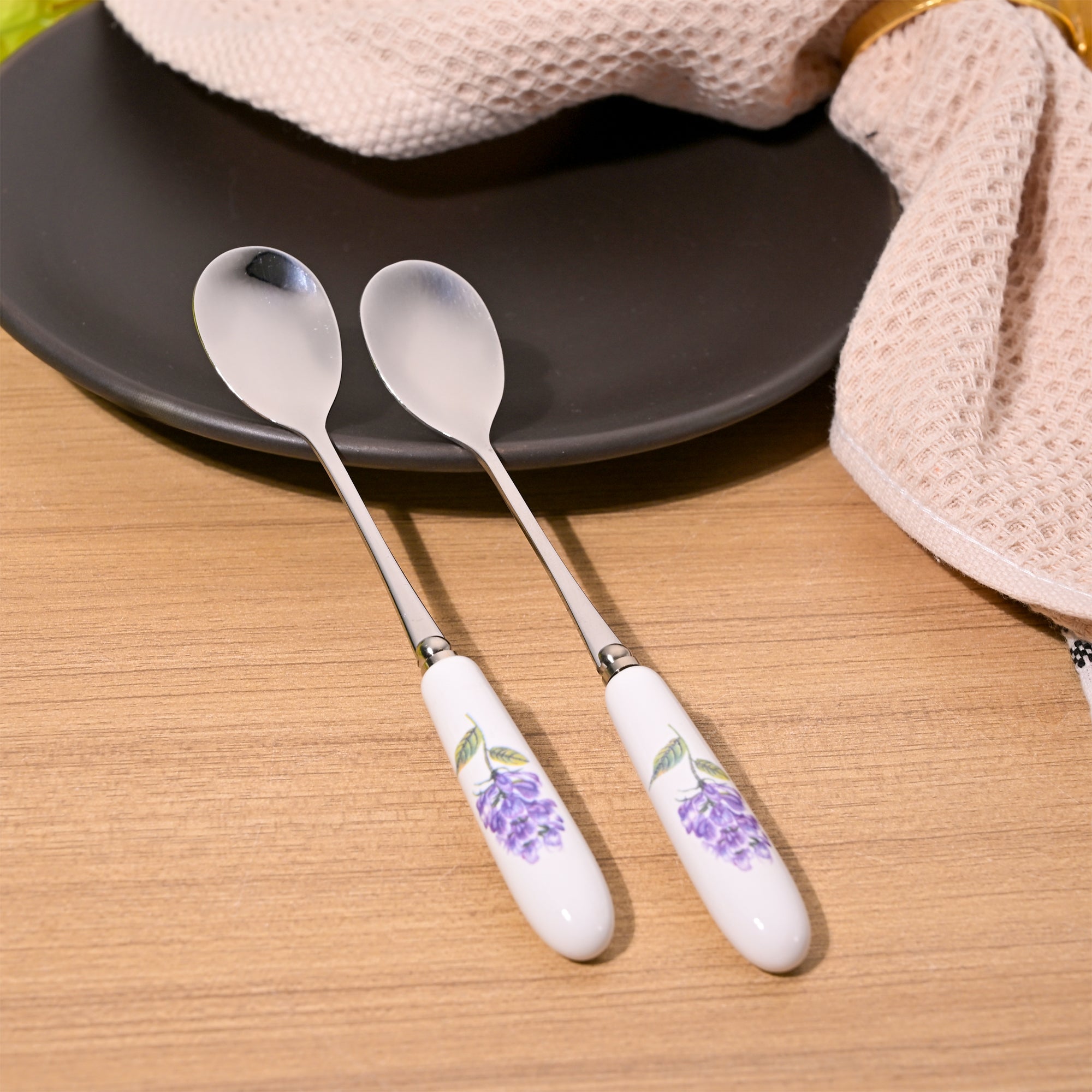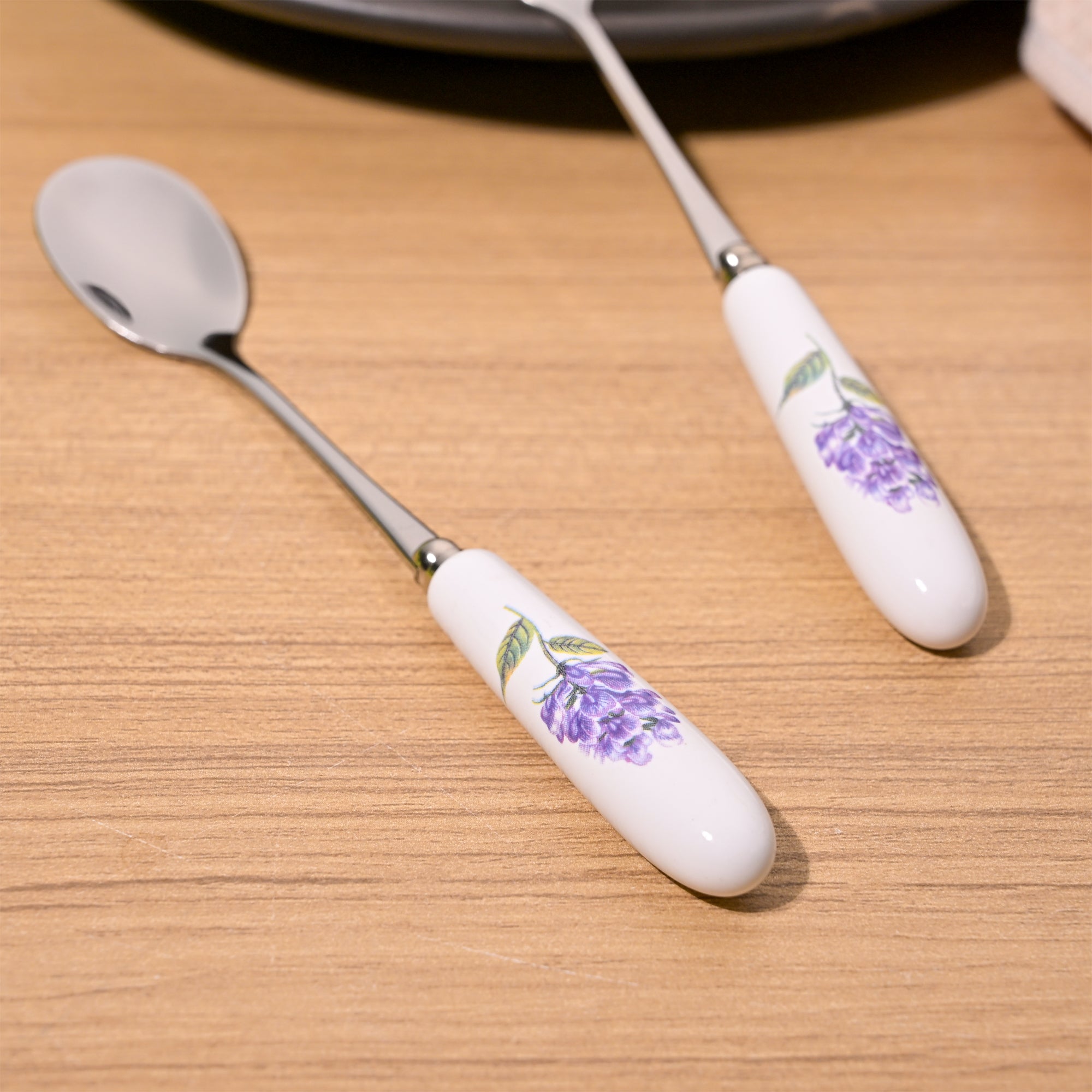 Stylish Lavender Bloom Ceramic-Handled Dessert Spoons (Set of 2)