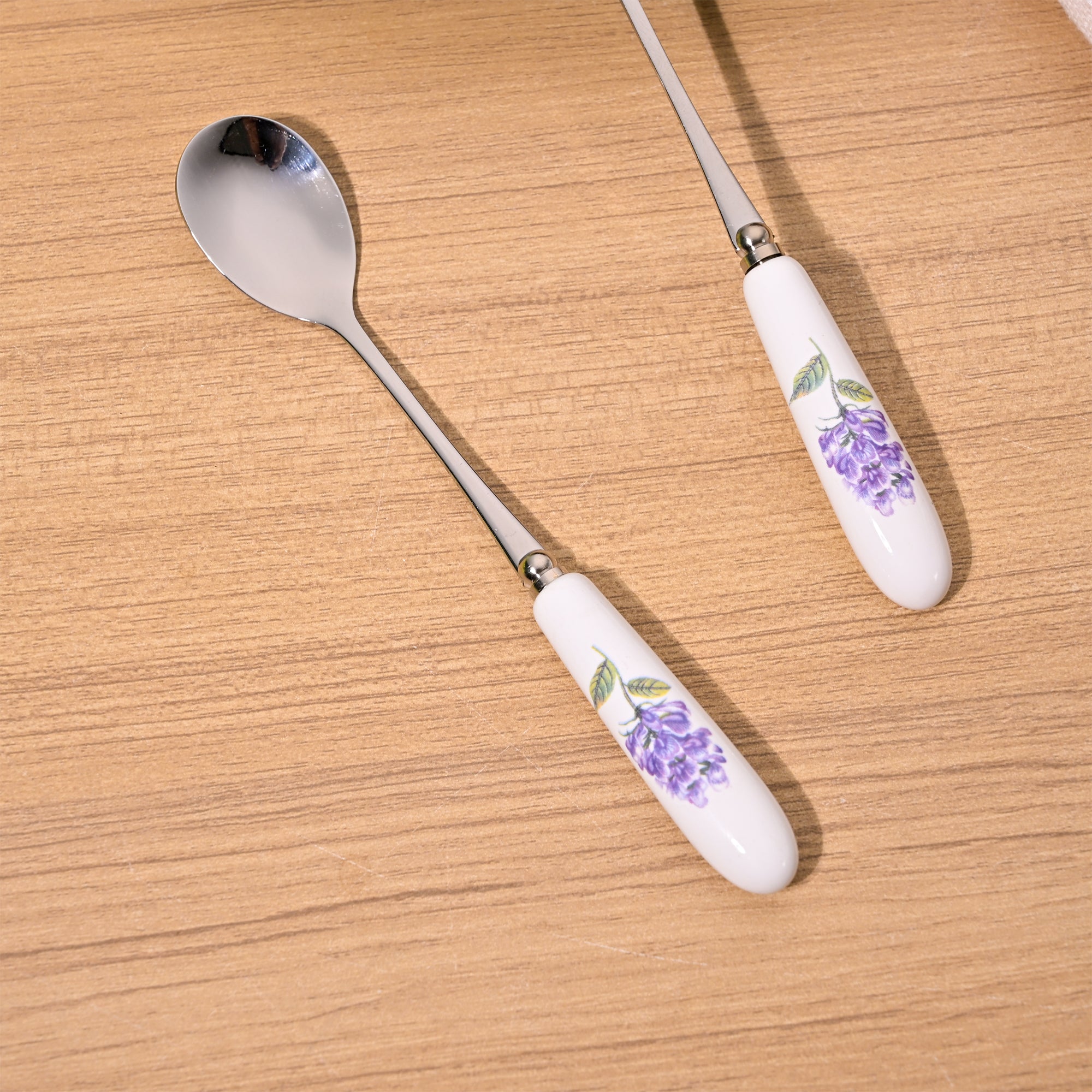 With delicate lavender blooms printed on smooth ceramic handles and paired with durable stainless steel heads, this set brings beauty and function together. Whether you're serving desserts, yogurt, or a sweet after-meal treat, these spoons make everyday dining feel just a little more special.