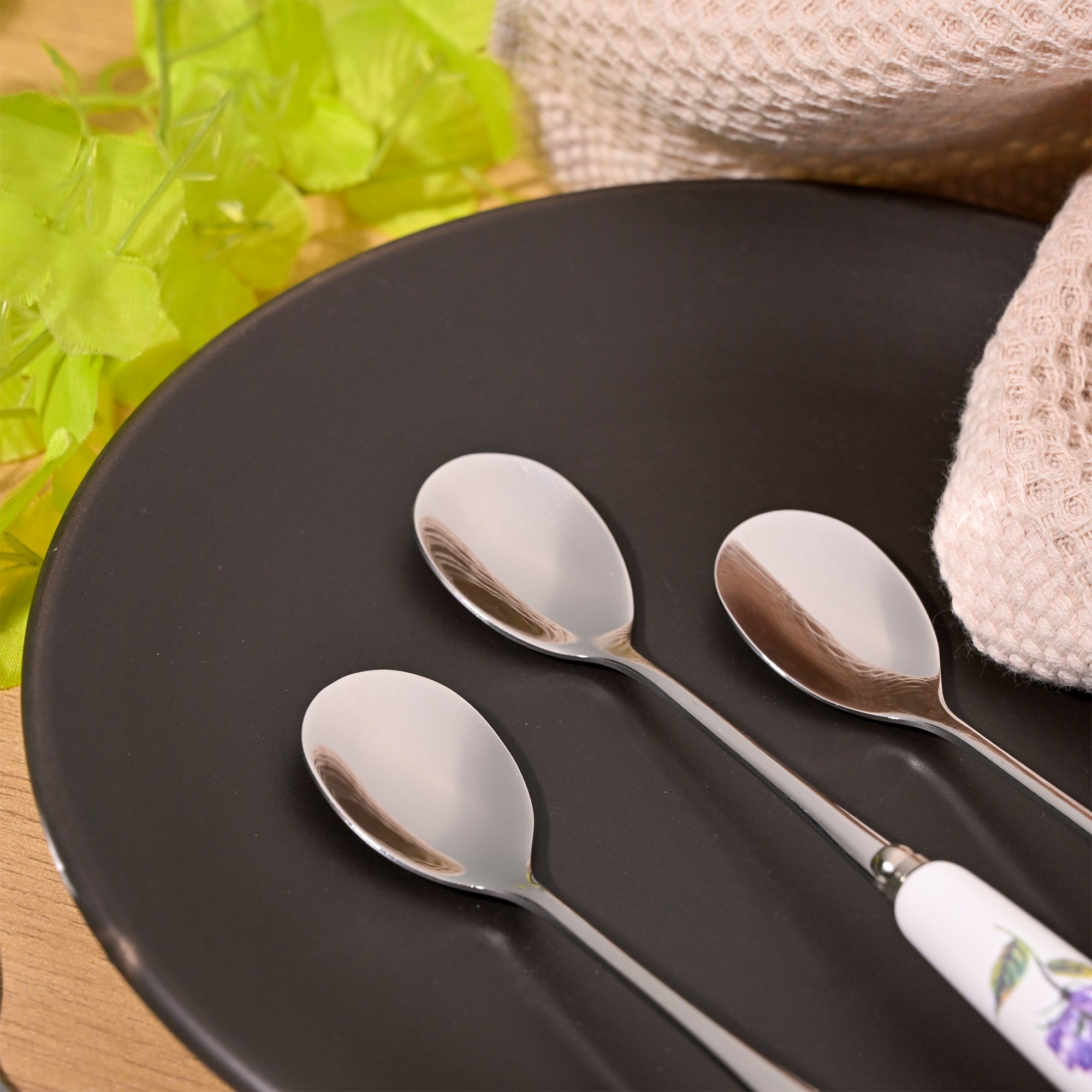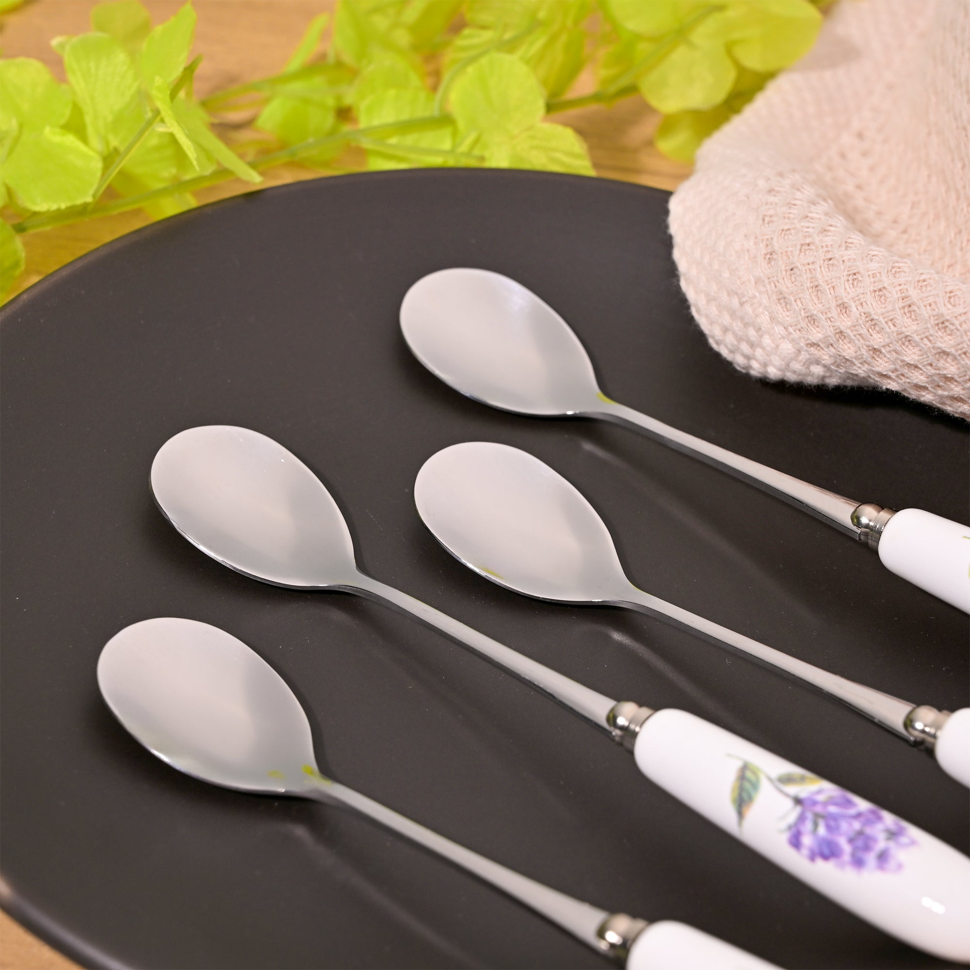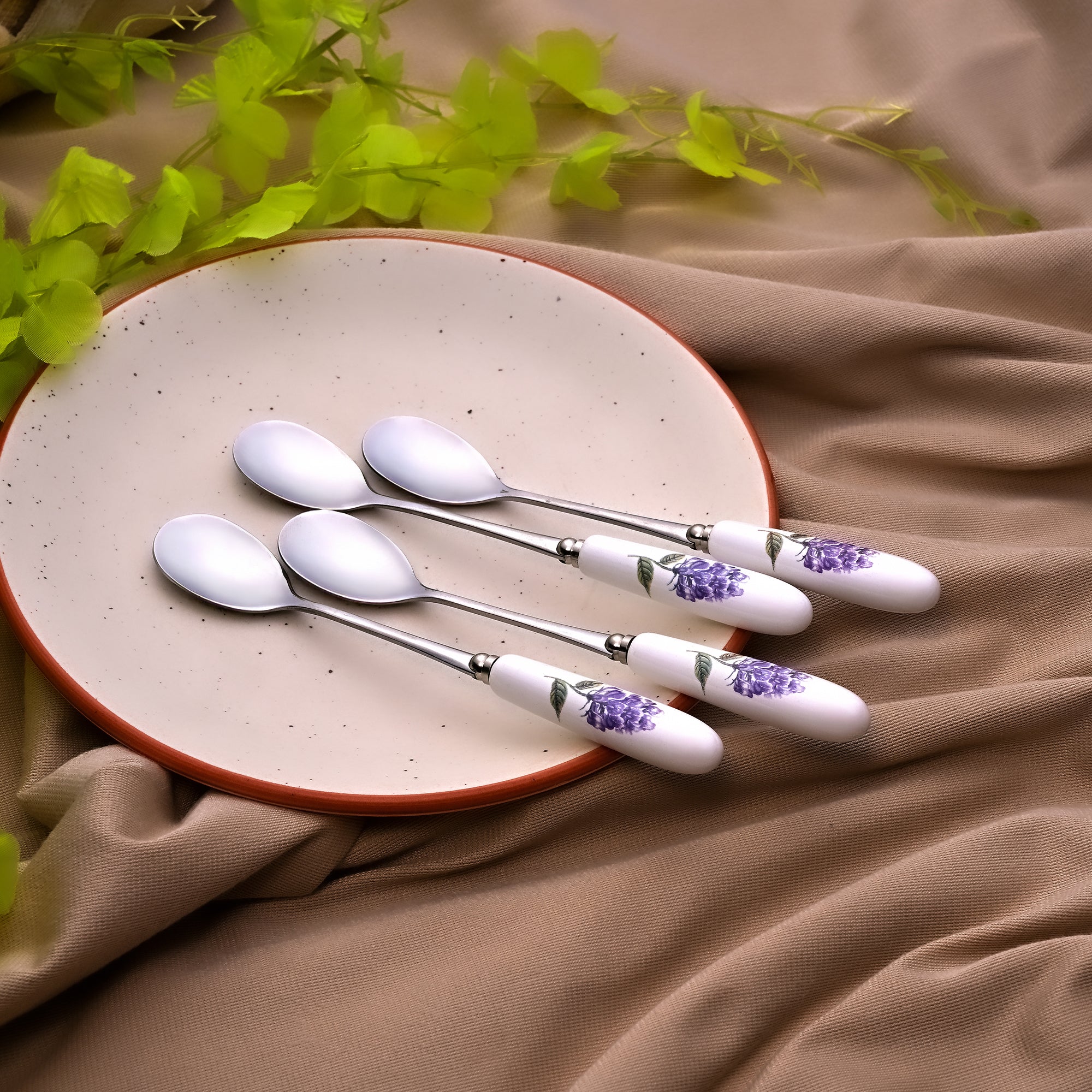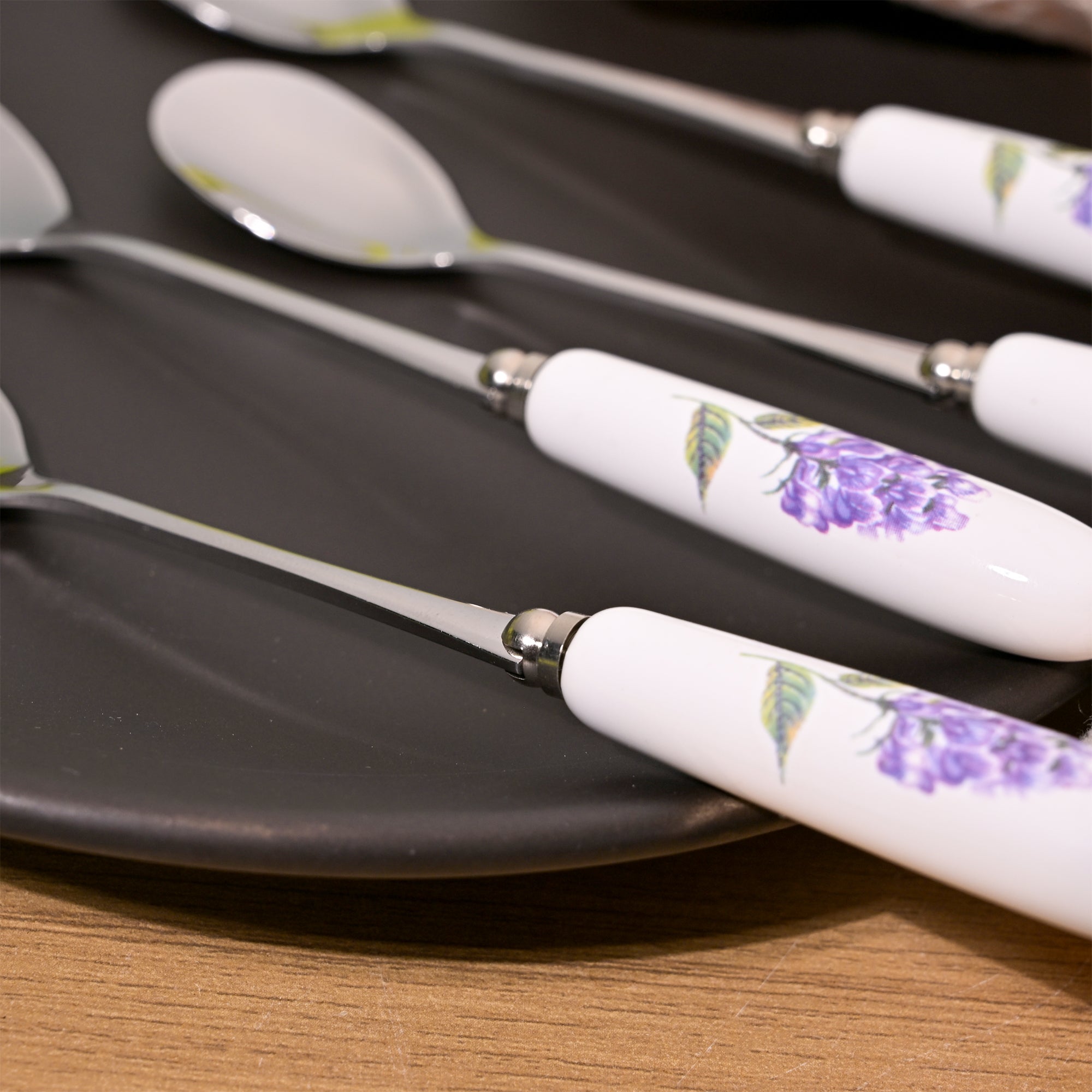 With delicate lavender blooms printed on smooth ceramic handles and paired with durable stainless steel heads, this set brings beauty and function together. Whether you're serving desserts, yogurt, or a sweet after-meal treat, these spoons make everyday dining feel just a little more special.