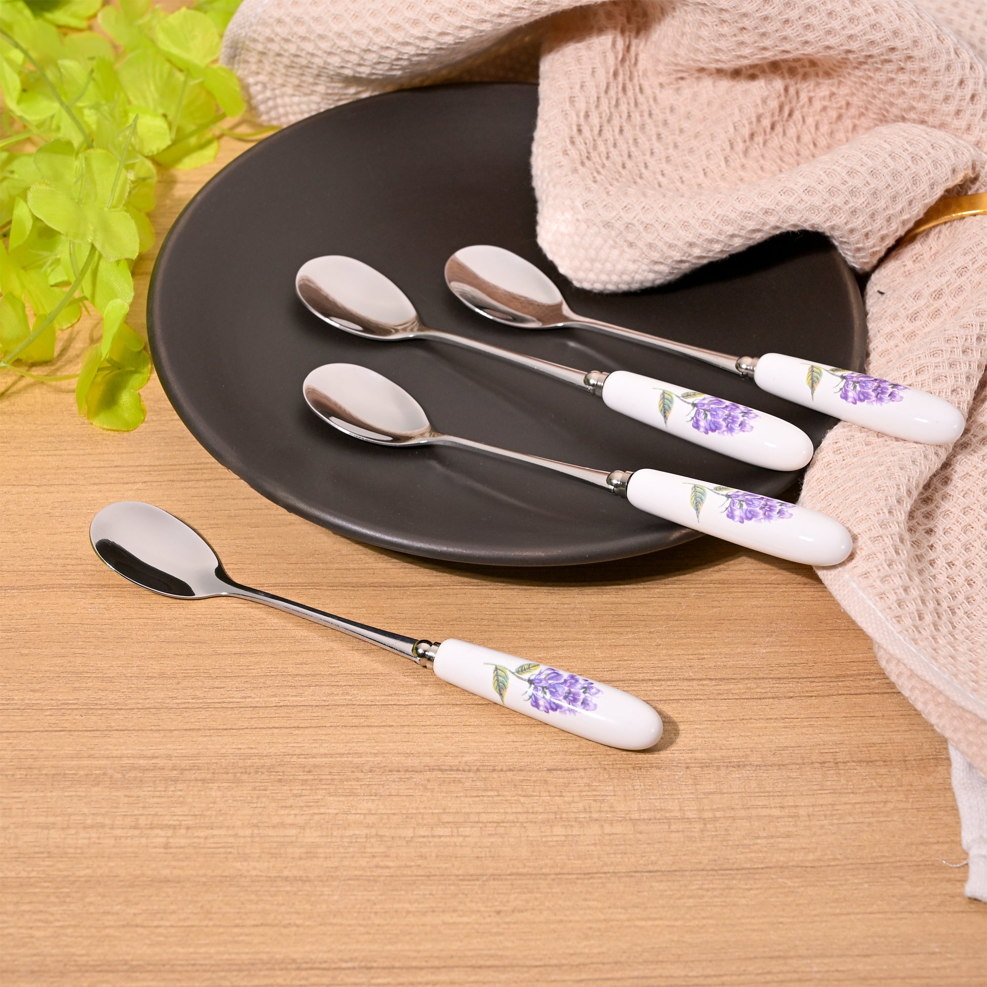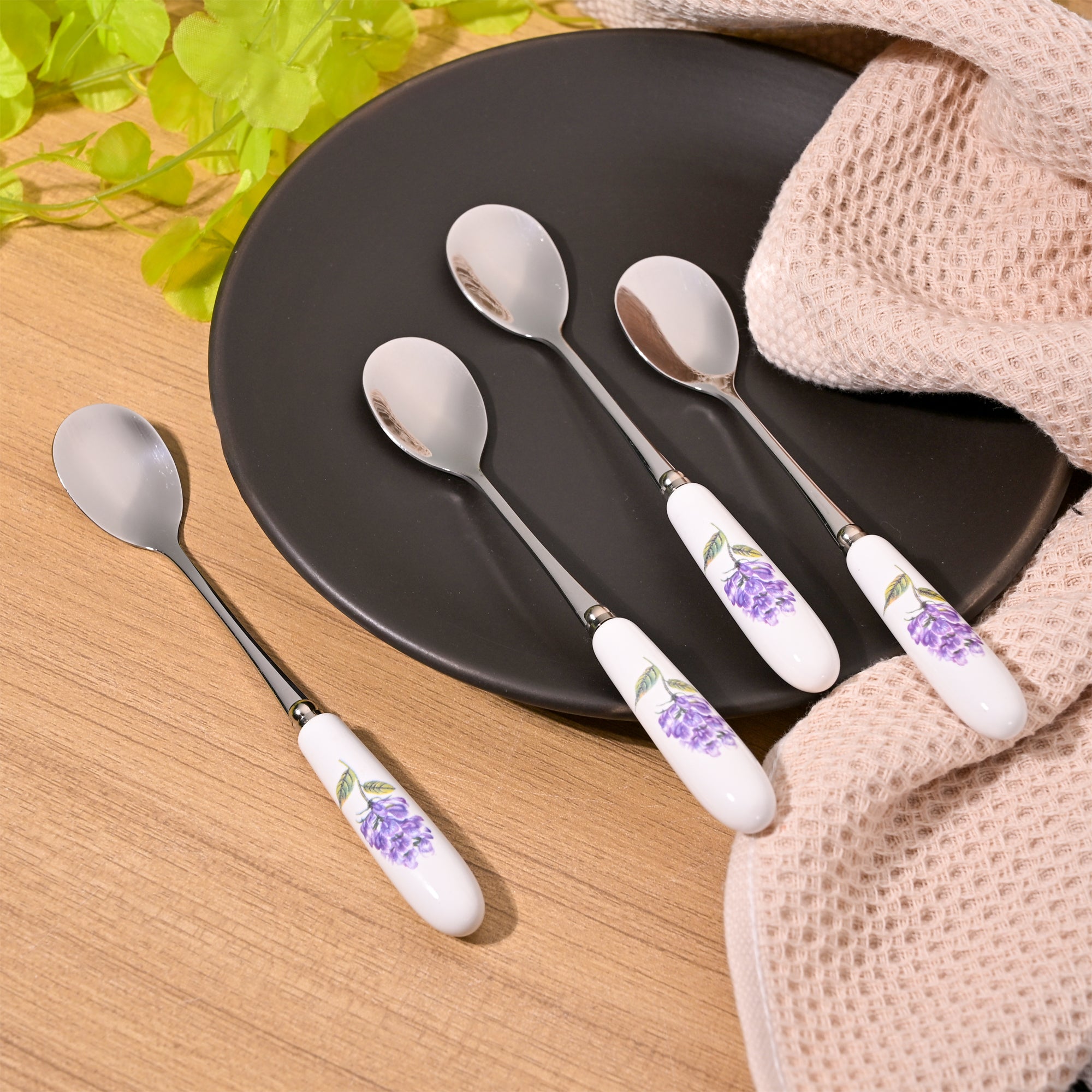 Stylish Lavender Bloom Ceramic-Handled Dessert Spoons (Set of 4)