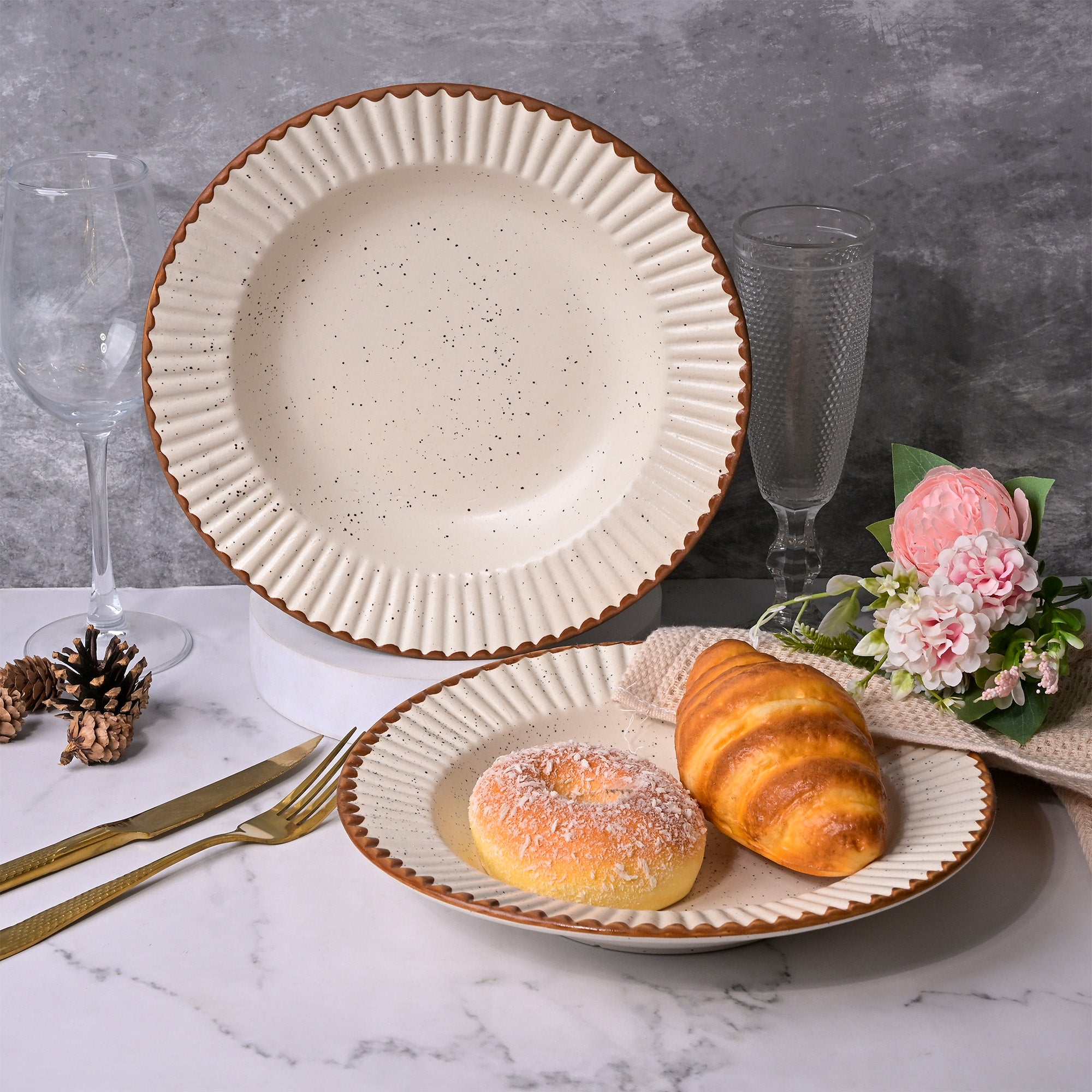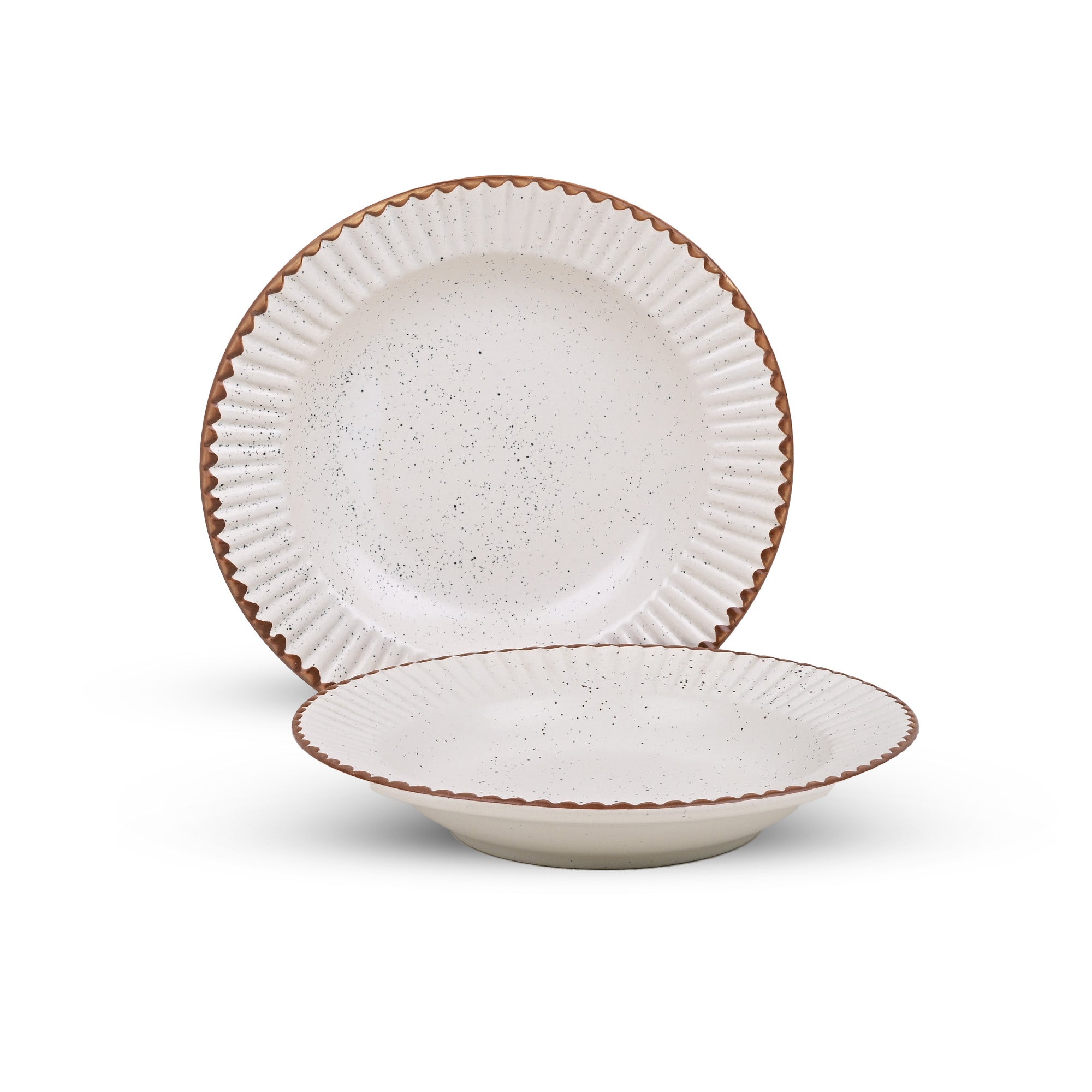 Stylish White & Brown Ceramic Snack Plate Set of 2 (9.5 inch)