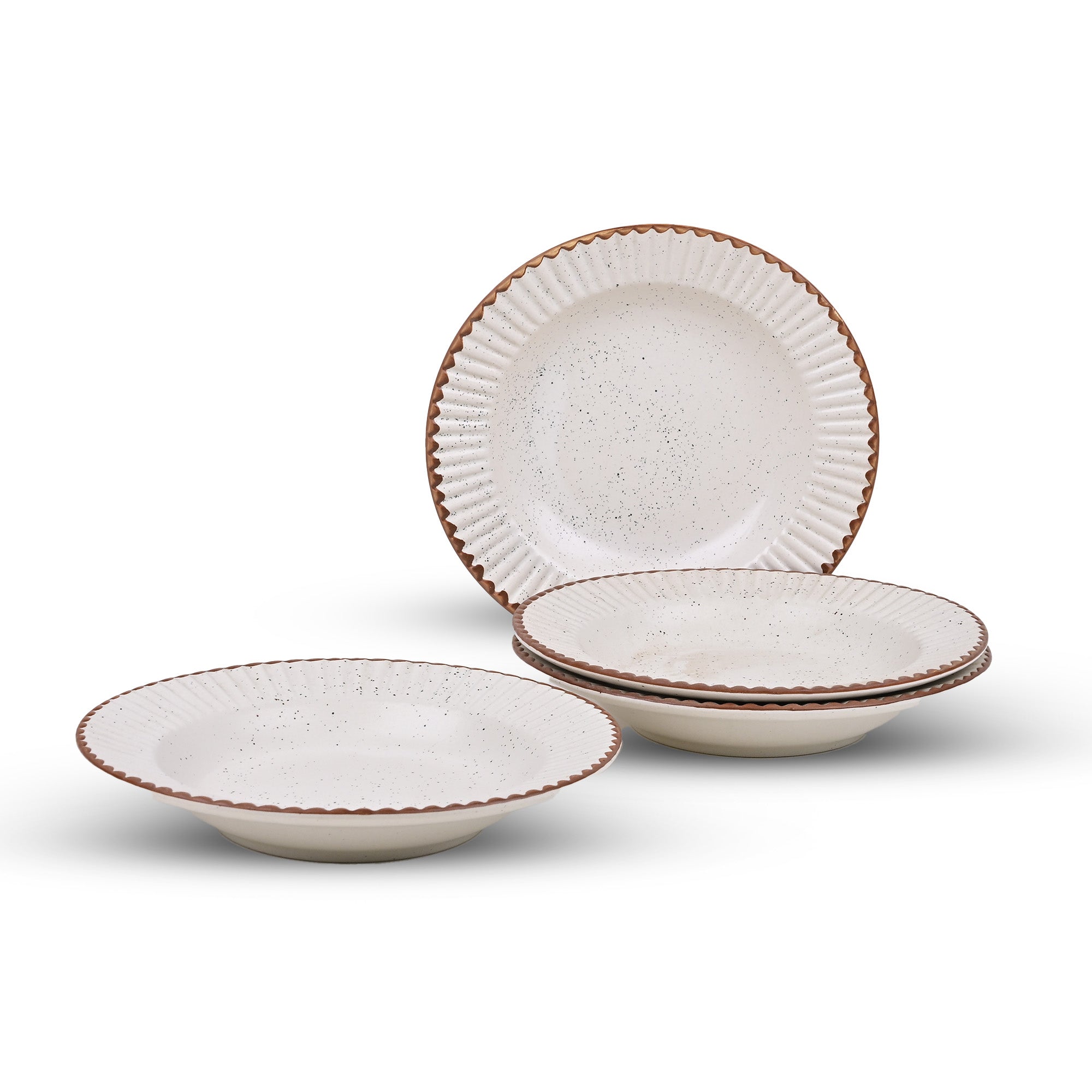 Stylish White & Brown Ceramic Snack Plate Set of 4 (9.5 inch)