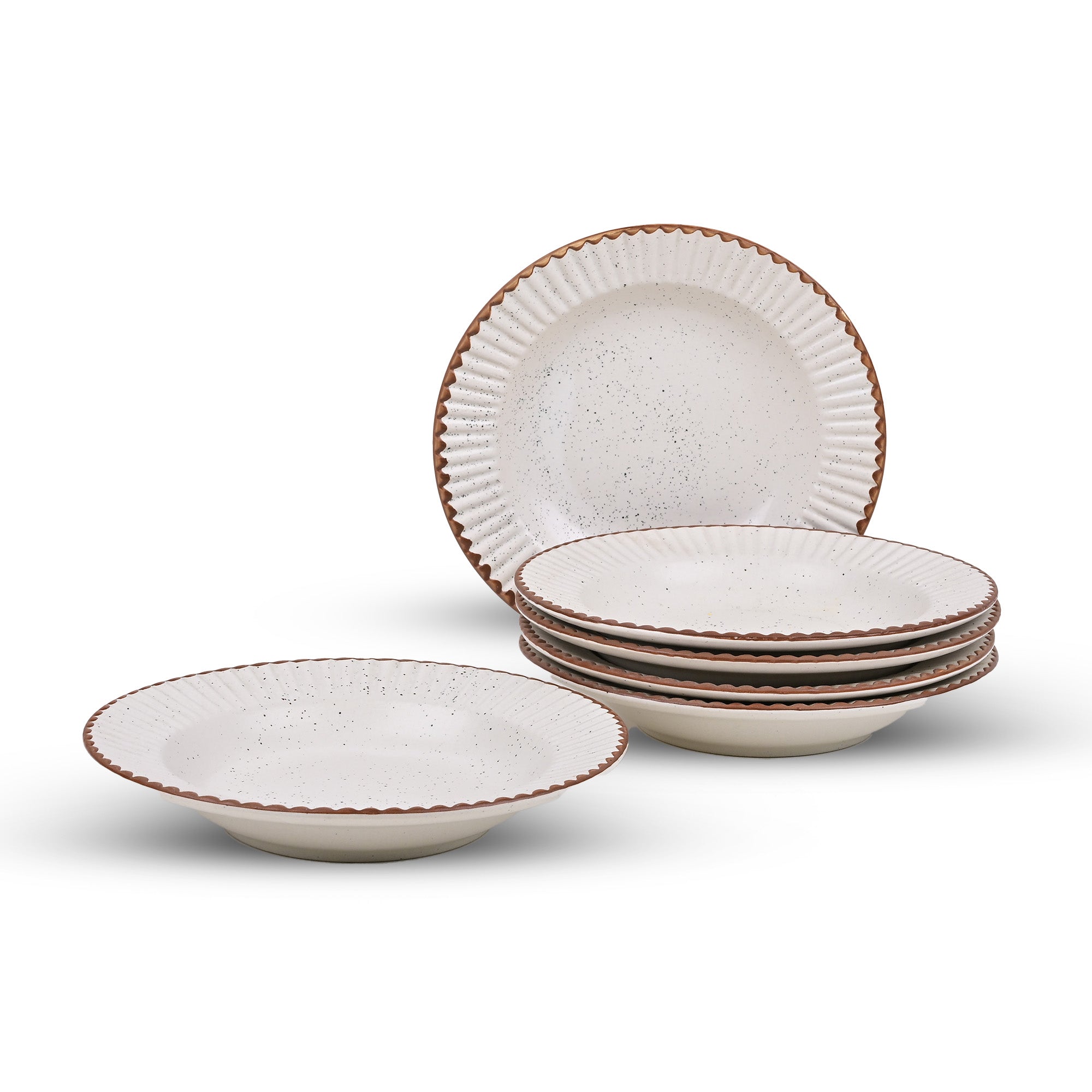 Stylish White & Brown Ceramic Snack Plate Set of 6 (9.5 inch)