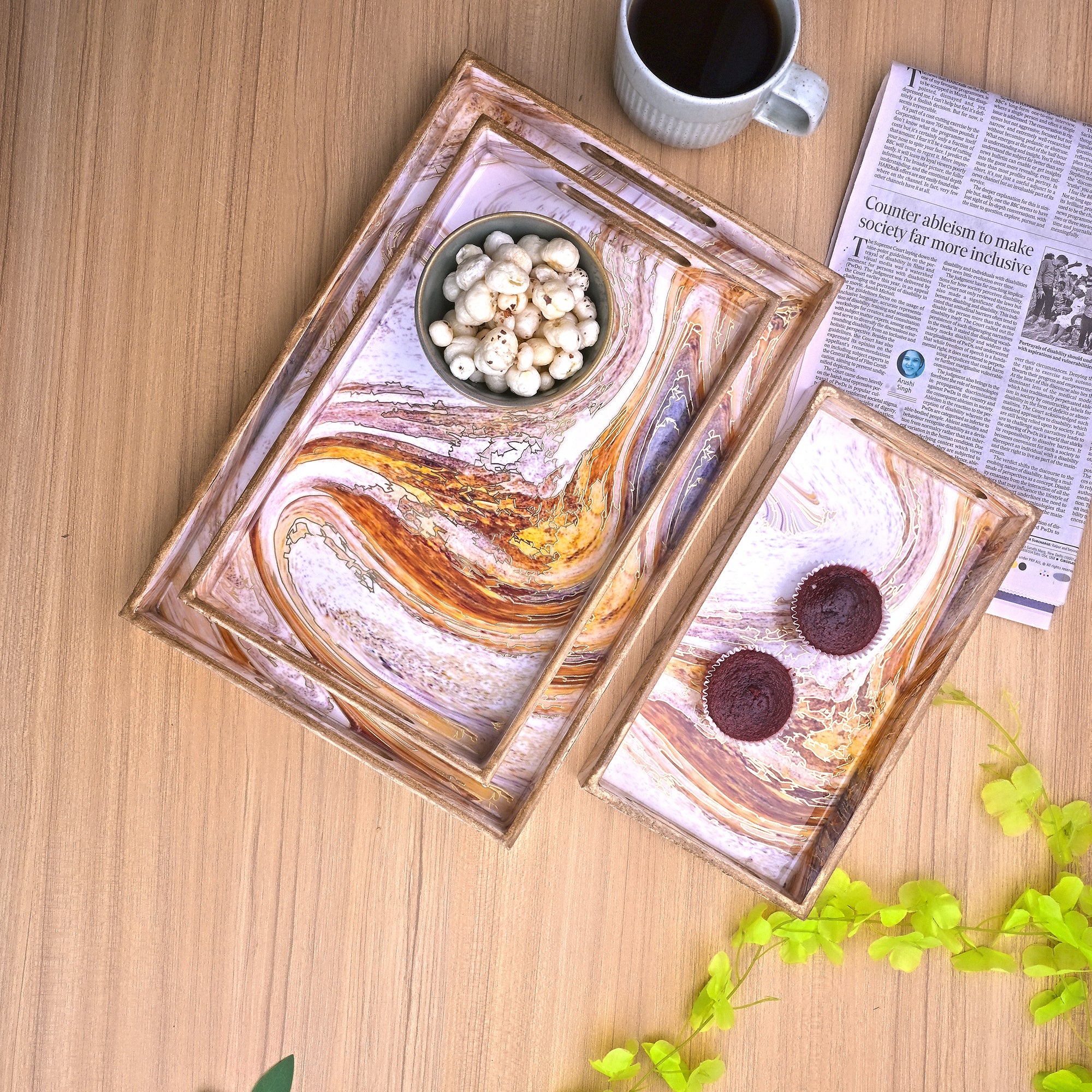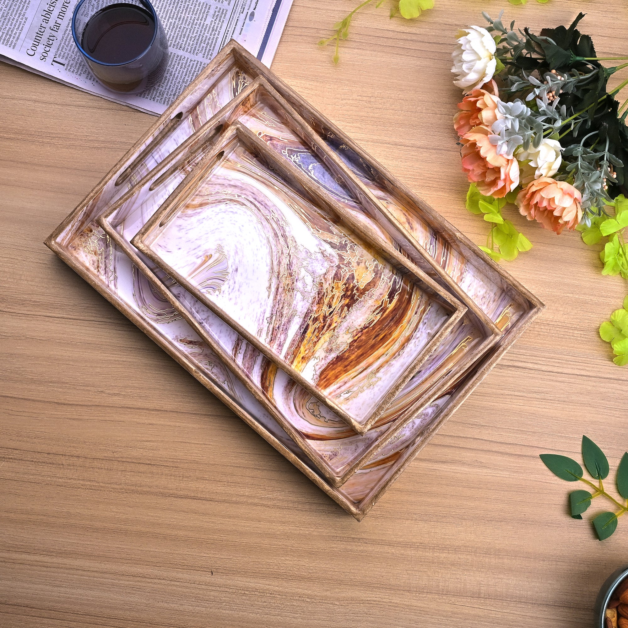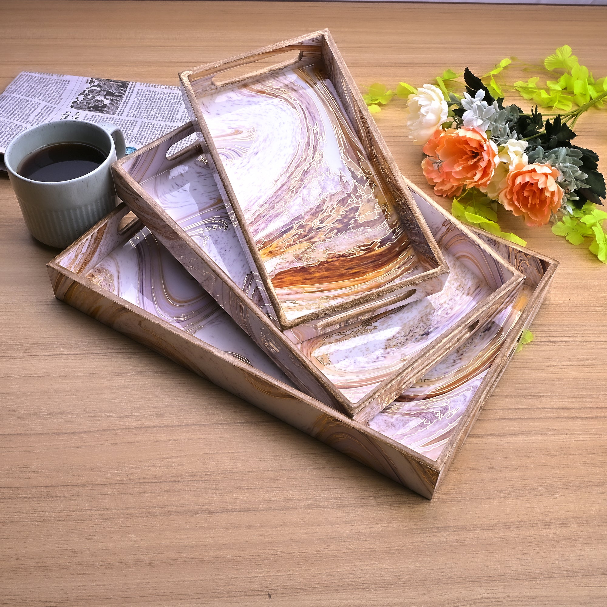 Swirling Marble Wooden Tray (Set of 3)