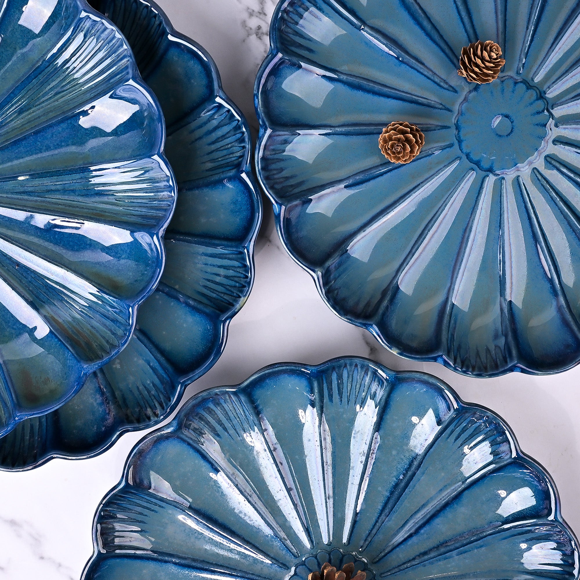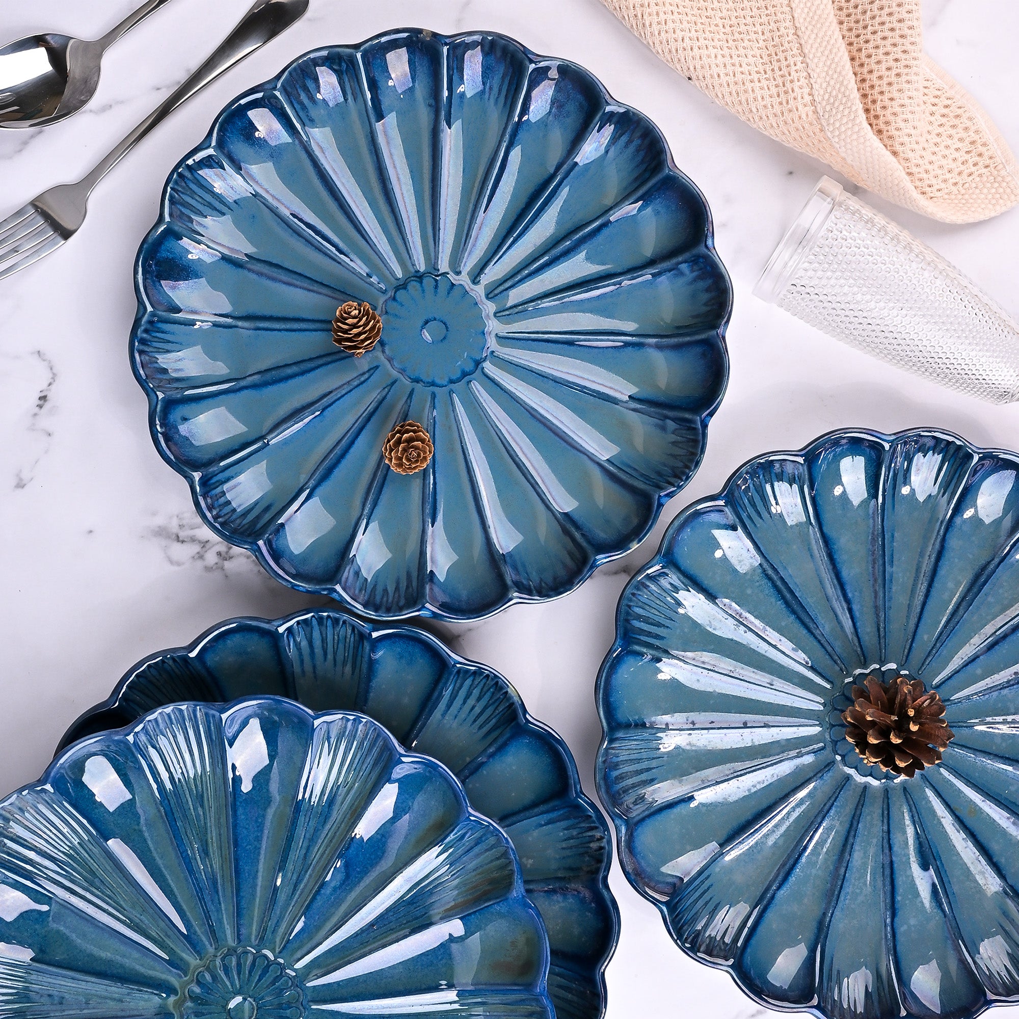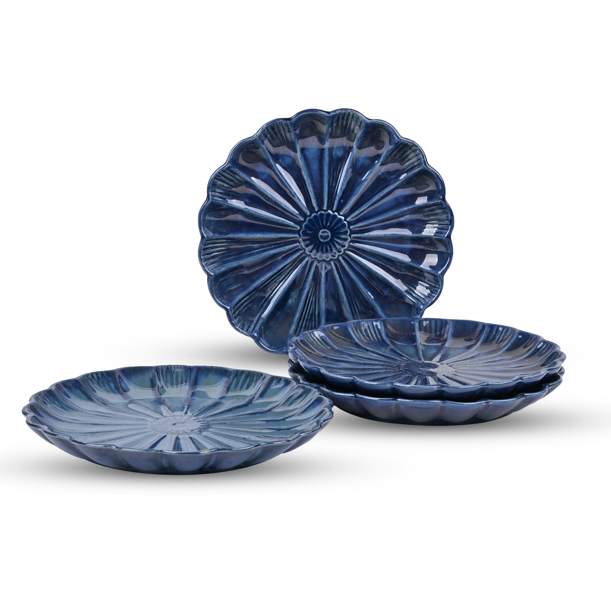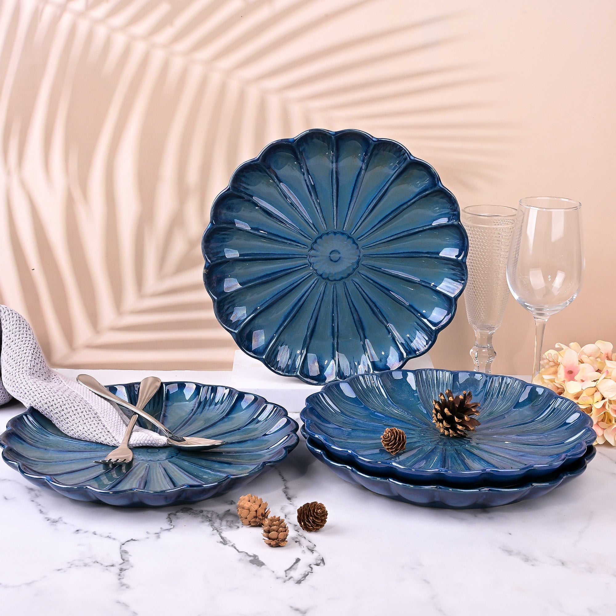 Teal Blue Flower-Shaped Plates Set of 4 (10.5 Inch)