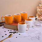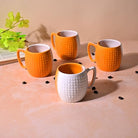 Textured Ceramic Tea Cup Set - Orange & White (Set of 6)