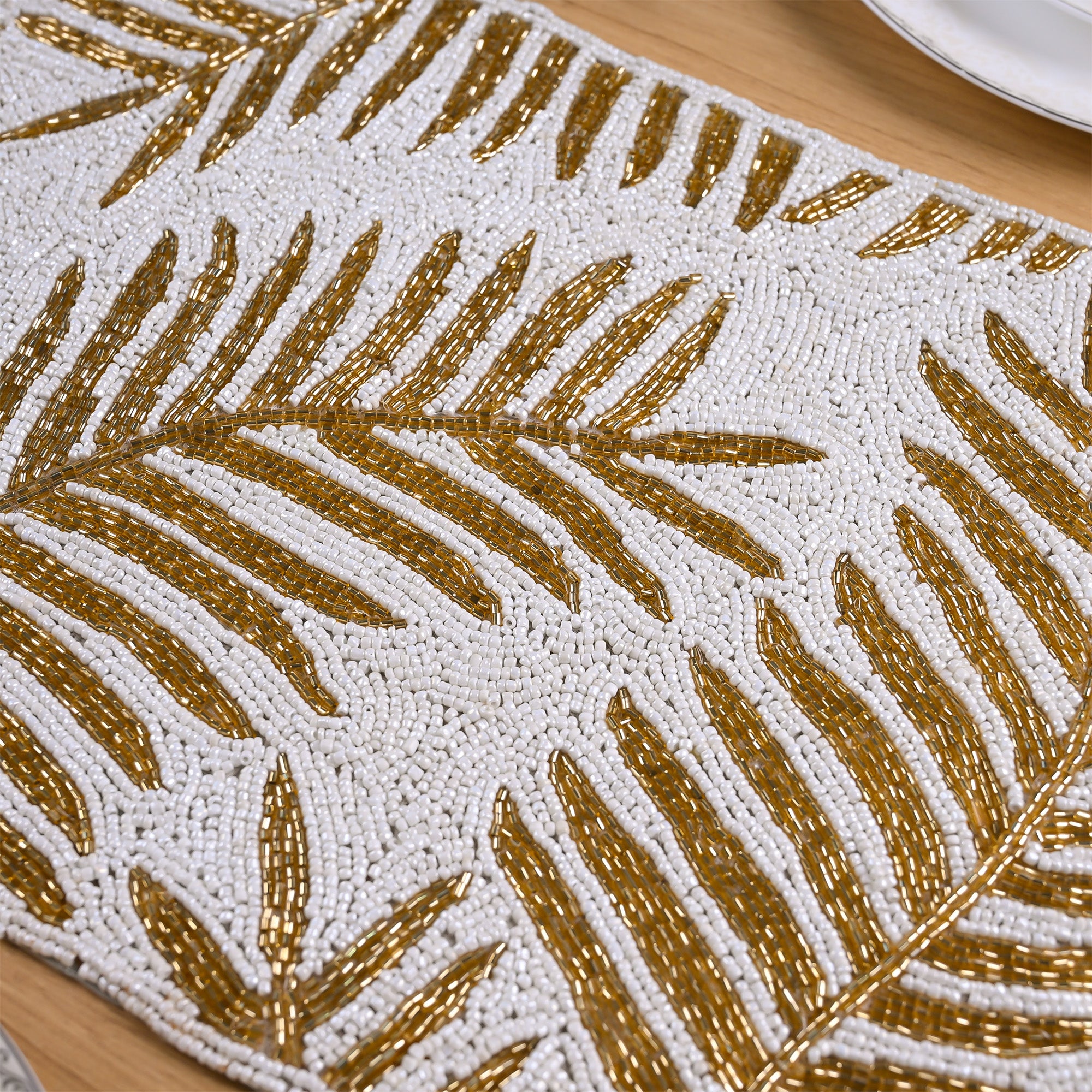 Thanksgiving Golden-White Hand-beaded Table Mat