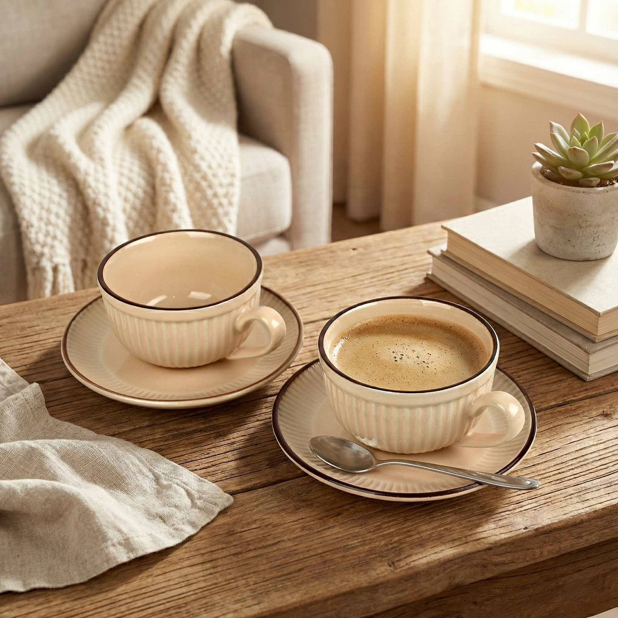 COD availableMade to perfect your winter cravings, The Soothe is a gift of affection for your kitchen by the frost itself. Used to stage your favourite sips and slurps, these enchanting tea cup sets are made of new bone china, without any interference of bone ash. Its wide rim, outlined with rich black, allows the smoke to perform gracefully while letting you enjoy every sip. Made under the supervision of culinary experts, these cups are perfect to transport your ordinary moments to high-tea gatherings. Coming with a saucer and brand signature, they are perfect next for your warm sips.