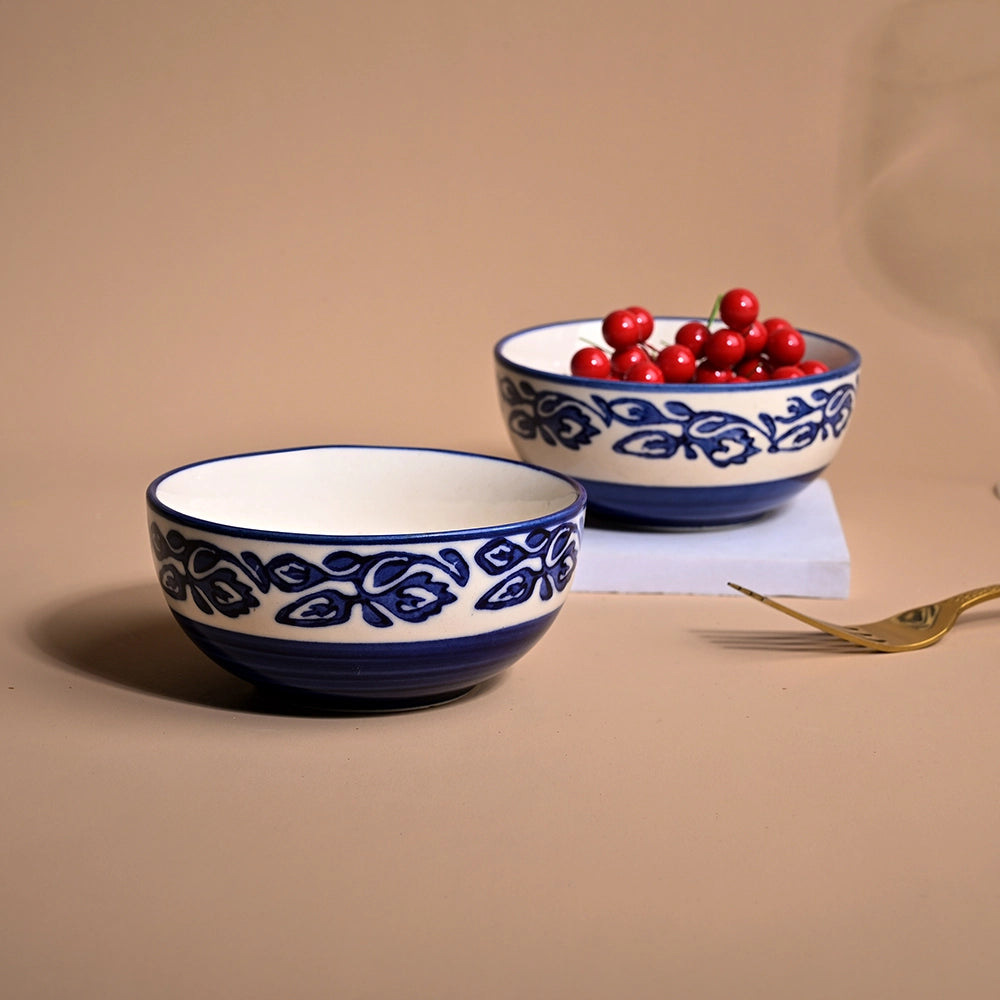 Timeless Blue Blossom Ceramic Bowl (Set of 2)