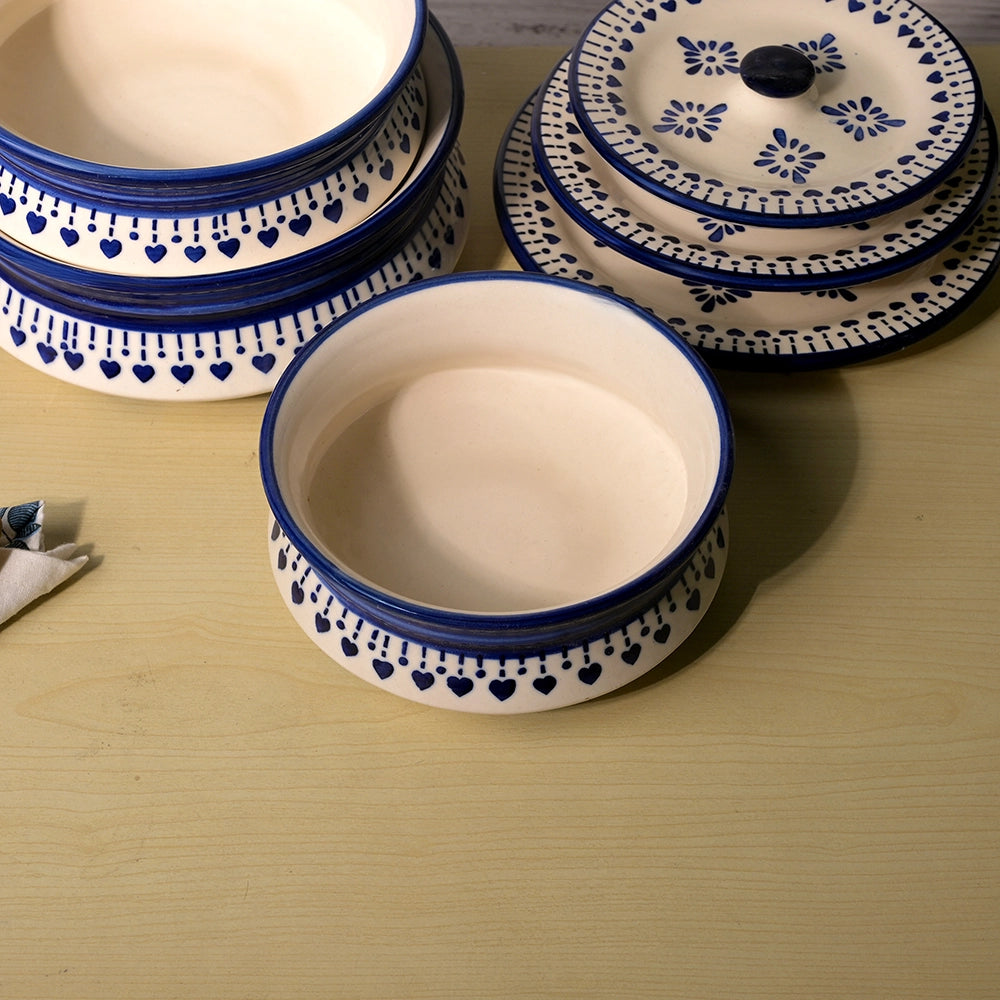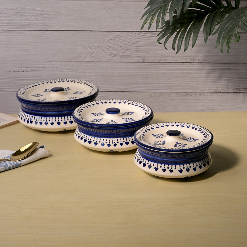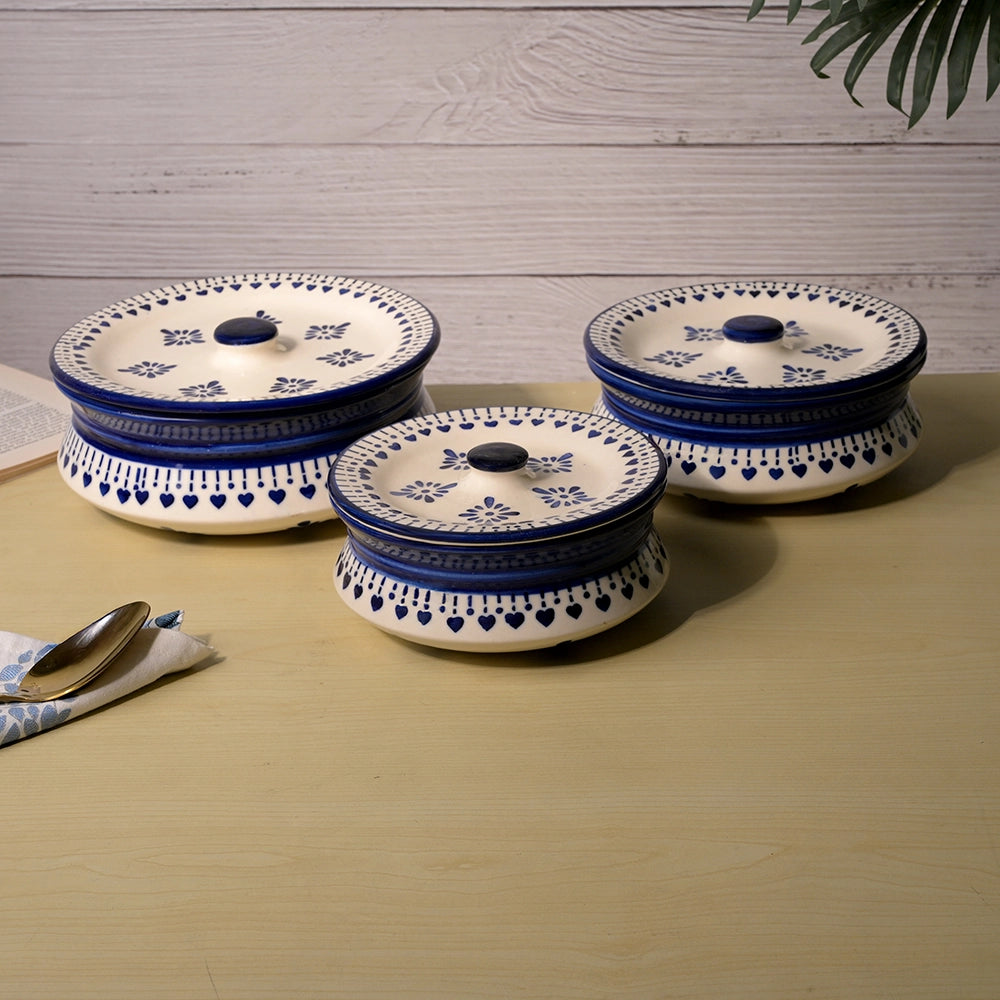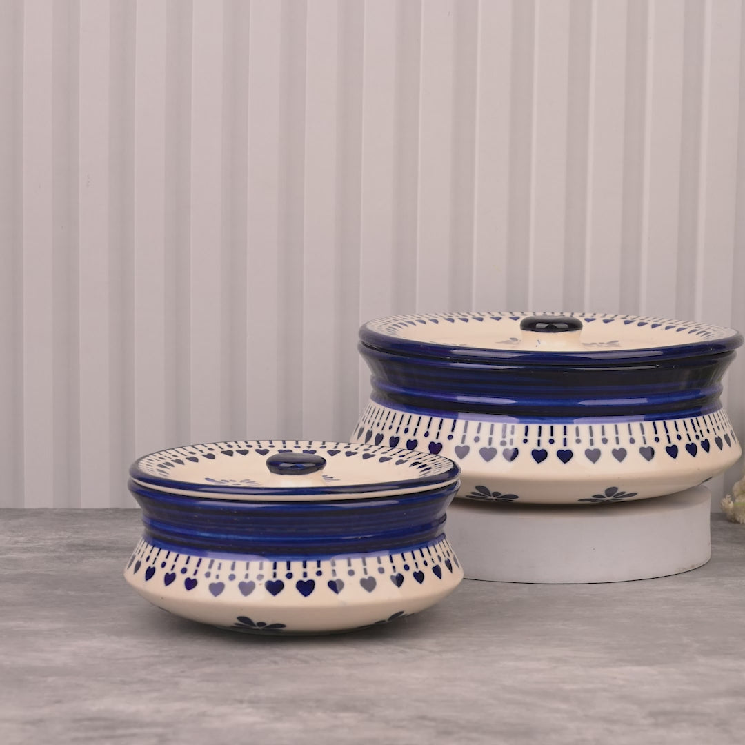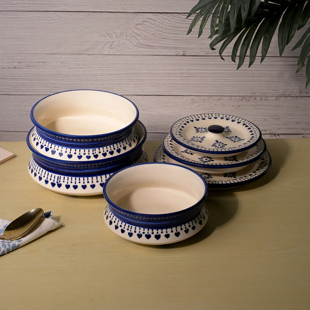 COD availableTake home this Traditional Elegance Serving Bowl Set that exudes classic charm with everyday functionality. Each bowl has a clean white base and beautiful blue traditional prints that offer an old-world, village-inspired feeling to your meals. The lids are perfect for keeping food warm and allow us to bring a beautiful hosting aspect while serving. The ceramic is solid and durable, perfect for long-lasting use. The Best part? These bowls are microwave and dishwasher-safe for those busy days. Everyone can use a variety of bowls for dishing out dals, curries, sabzis, or snacks. They allow you to make every family dinner or festive gathering warm and inviting. You should add these to your kitchen to celebrate tradition, utility and quality for all your meals.