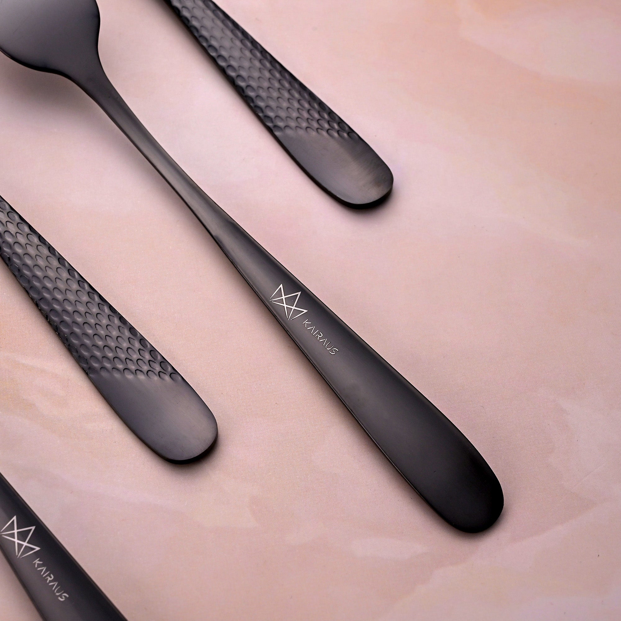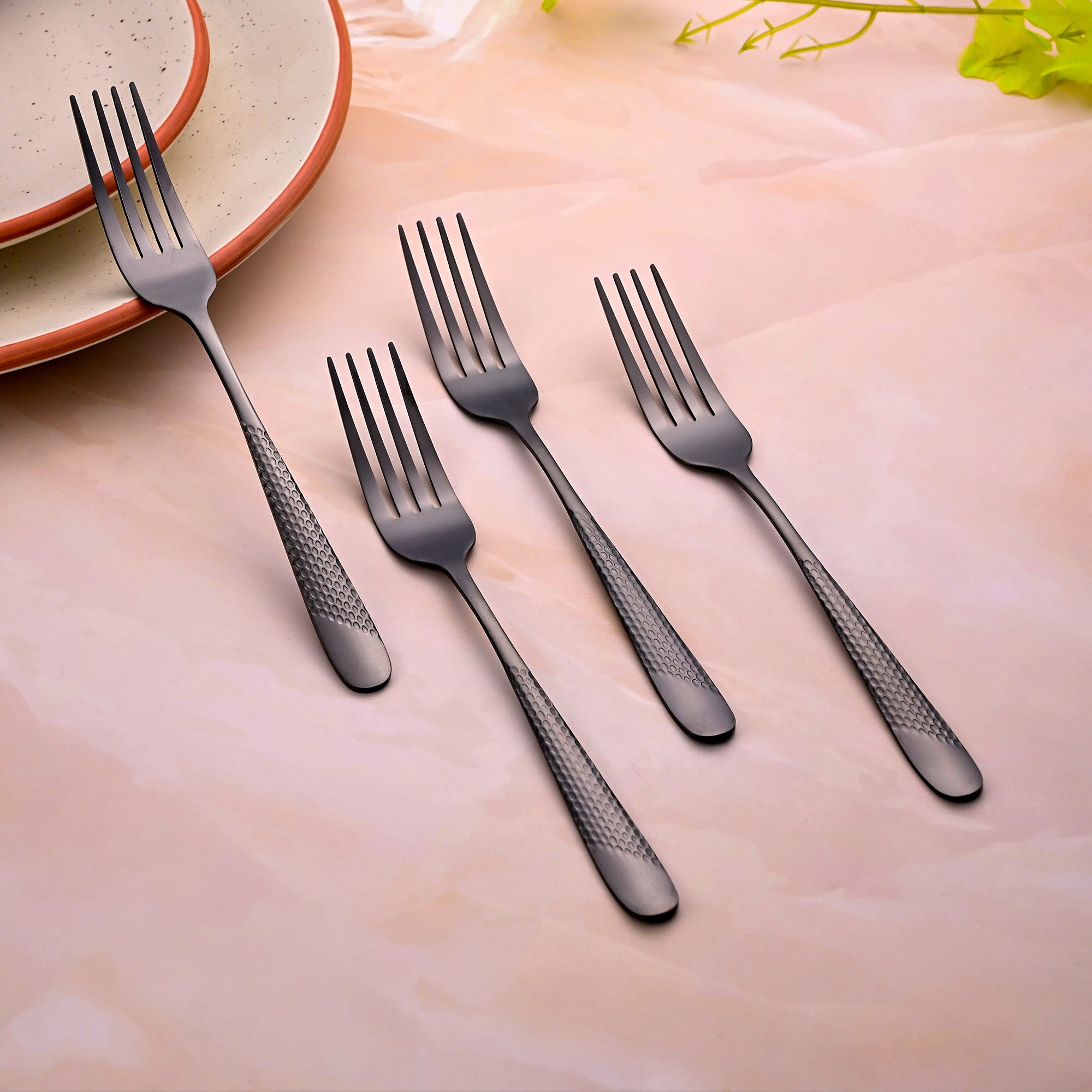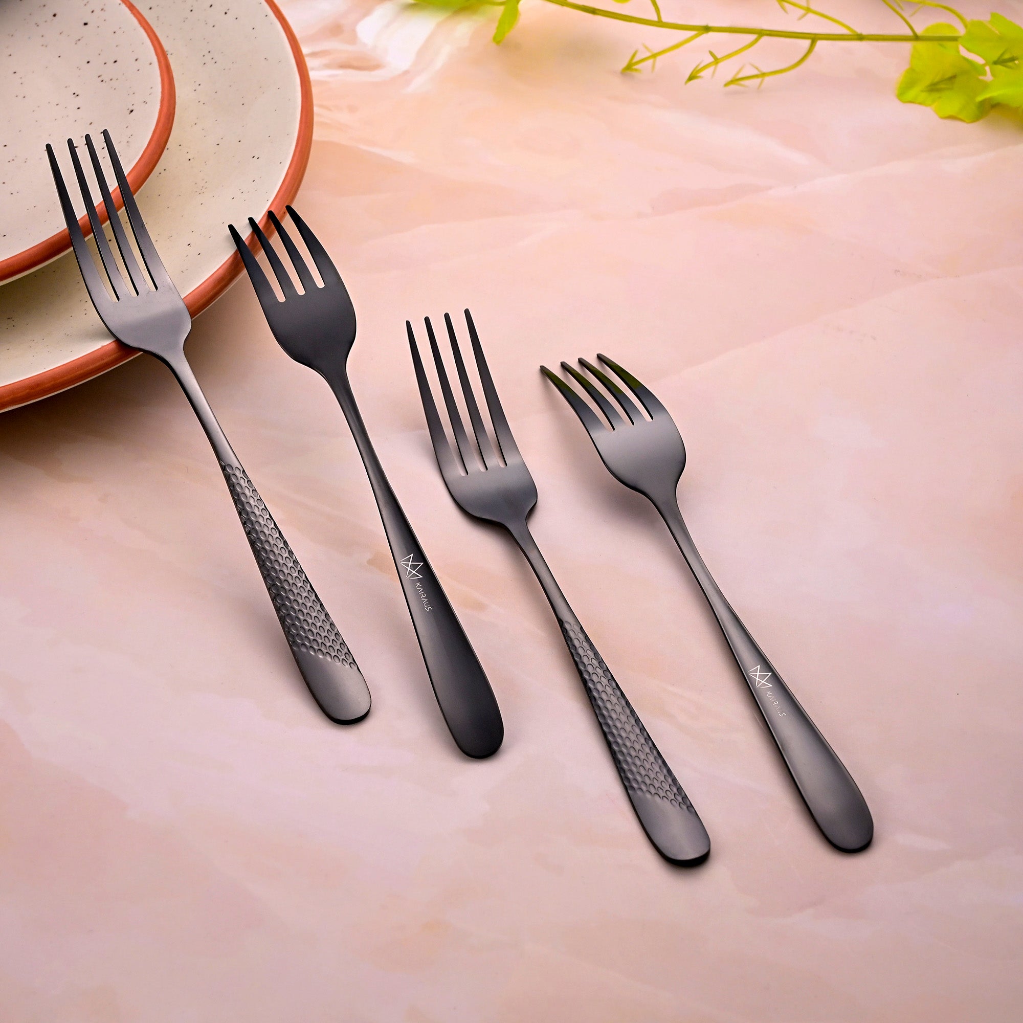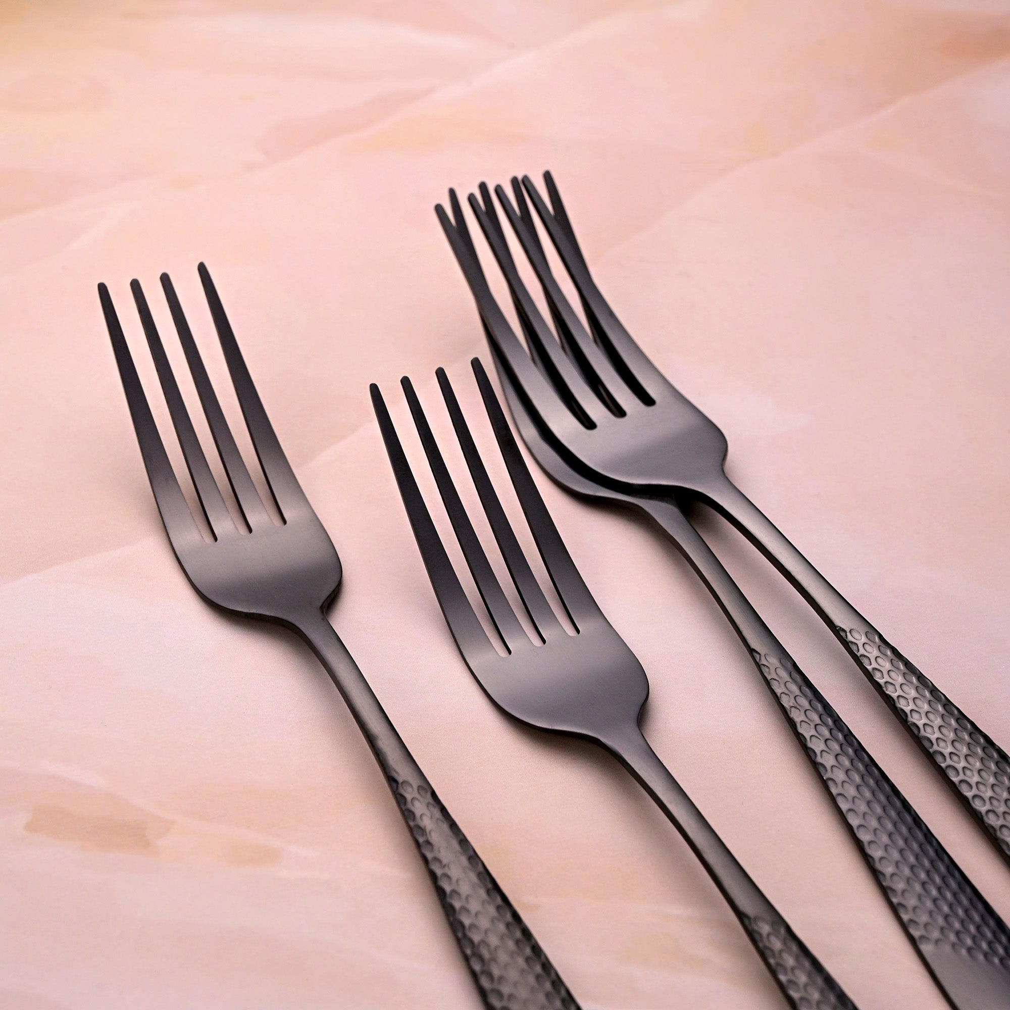 COD availableCraving something sweet? The Velvet Black Stainless Steel Tiny Fork Set is the perfect companion for your indulgent bites. With a rich matte black finish and hammered texture handles, these petite forks bring both charm and comfort to your table.