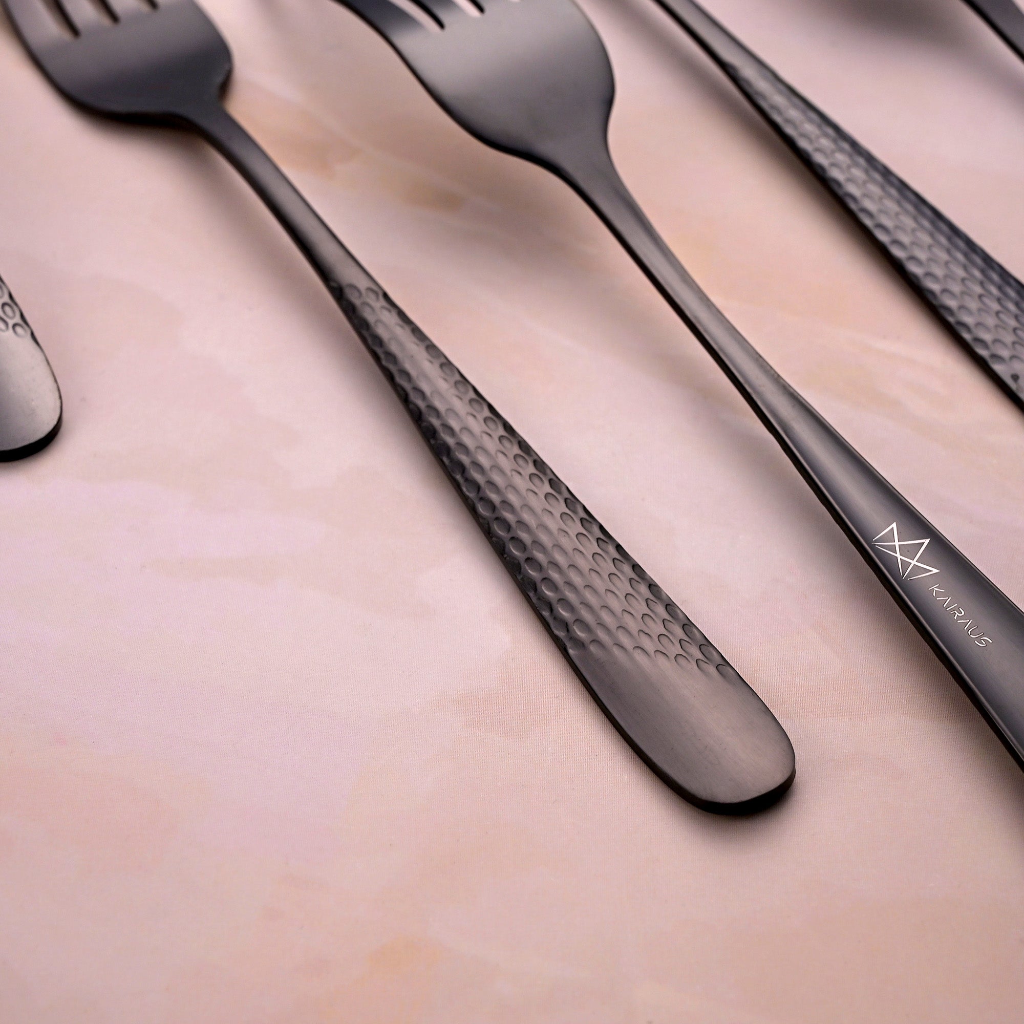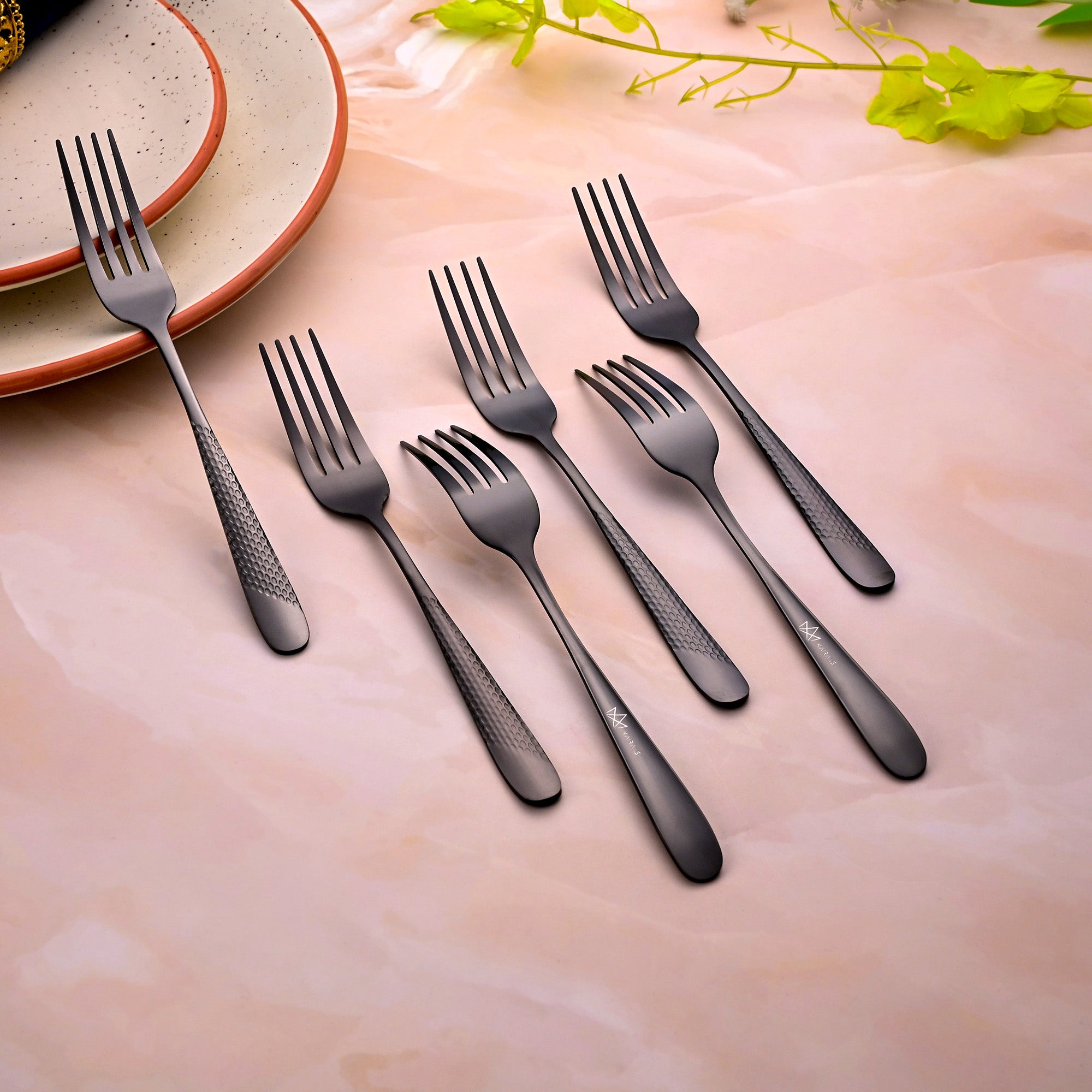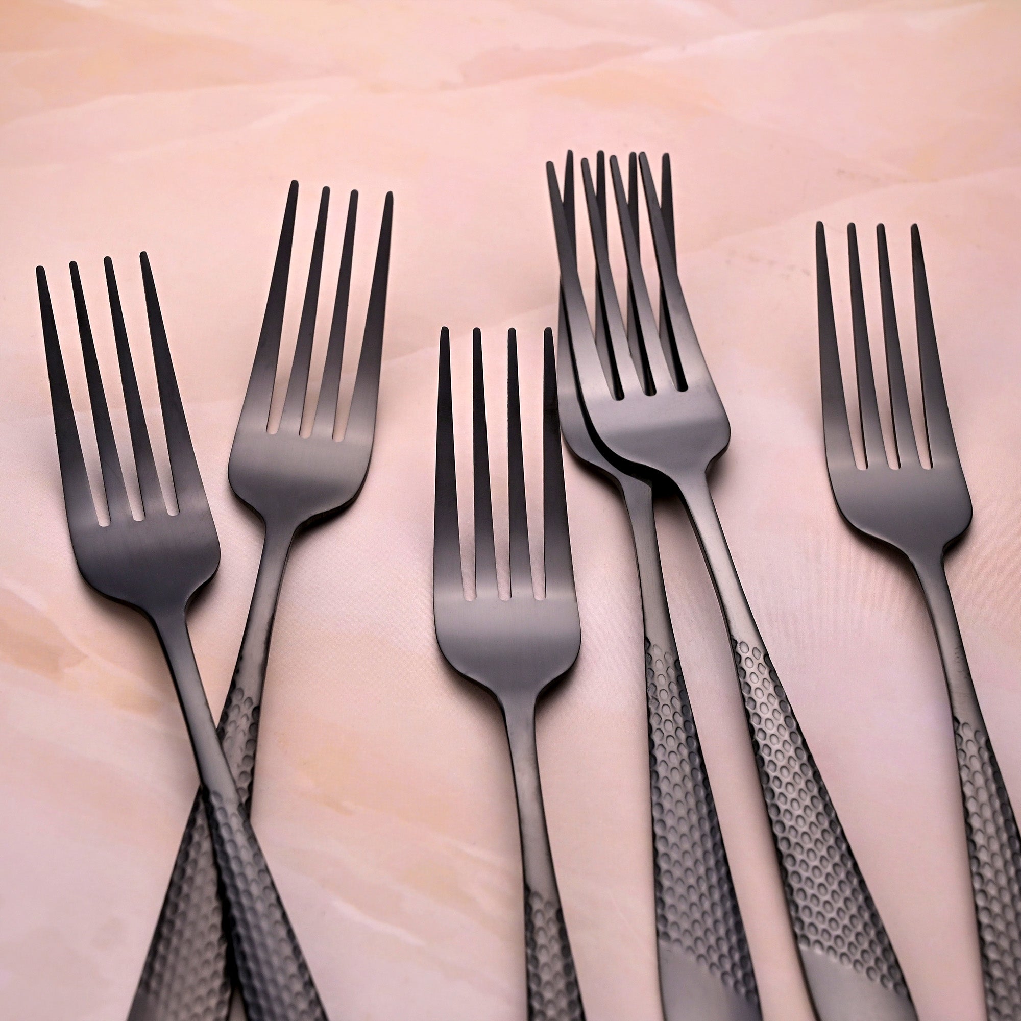 COD availableCraving something sweet? The Velvet Black Stainless Steel Tiny Fork Set is the perfect companion for your indulgent bites. With a rich matte black finish and hammered texture handles, these petite forks bring both charm and comfort to your table.