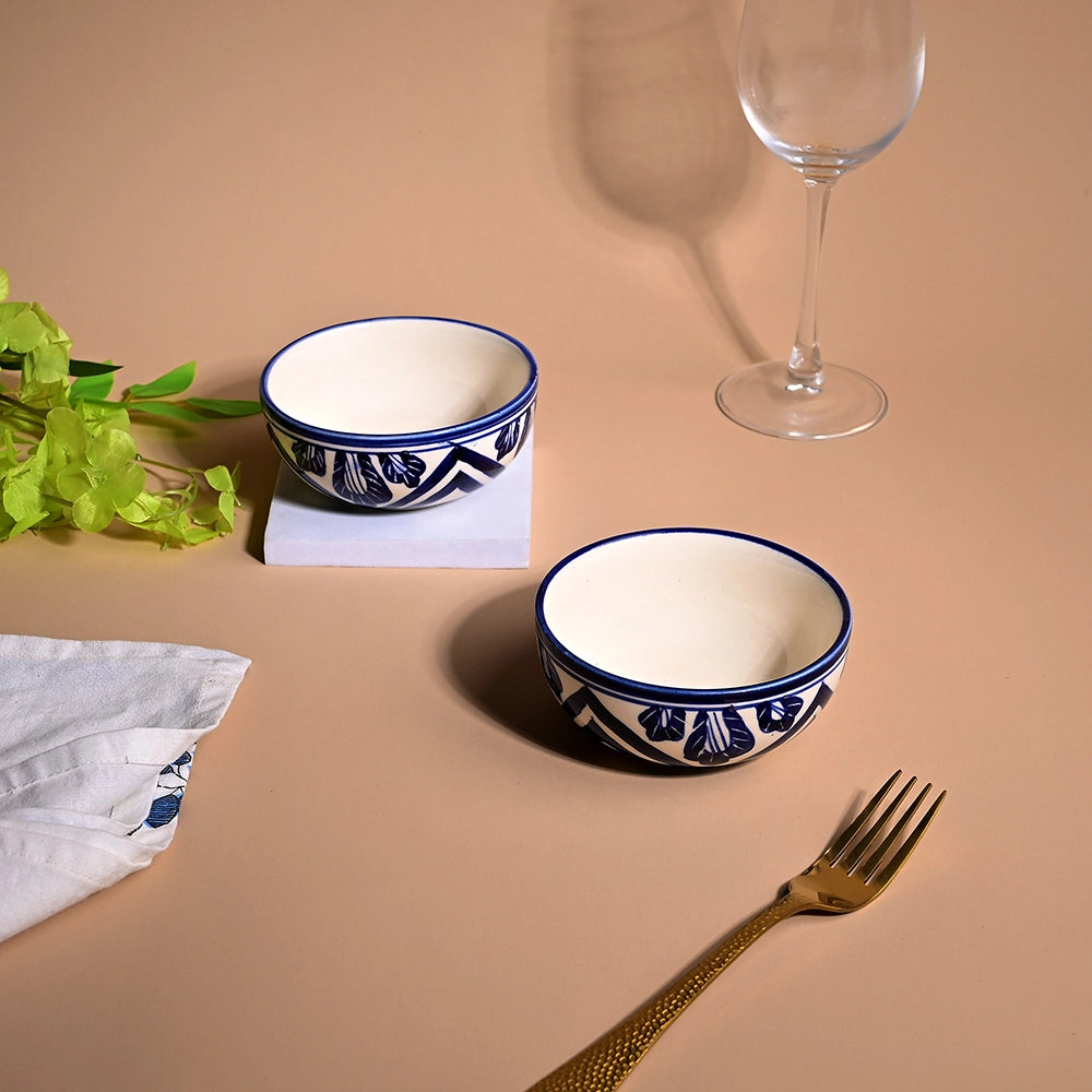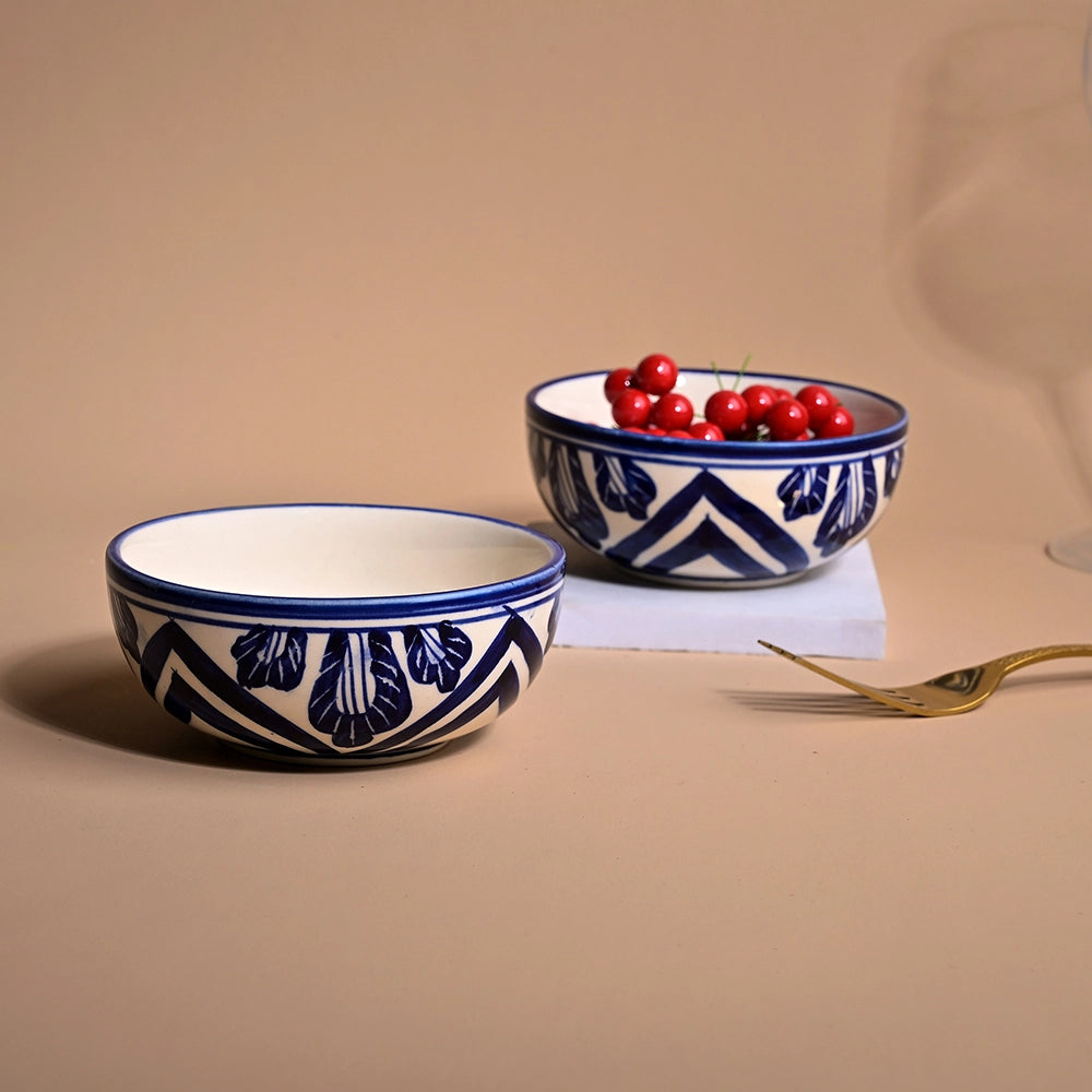 White & Blue Designer Handcrafted Bowl (Set of 2)