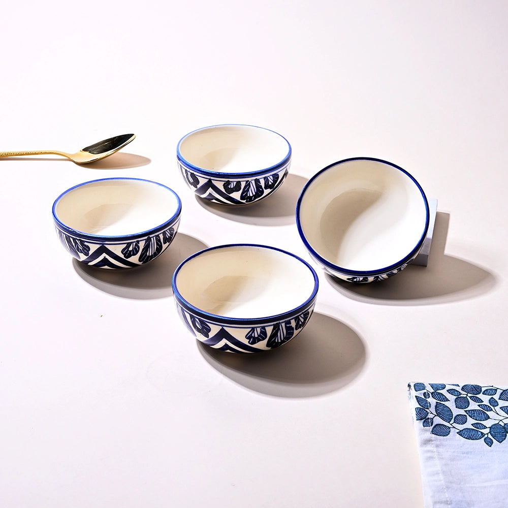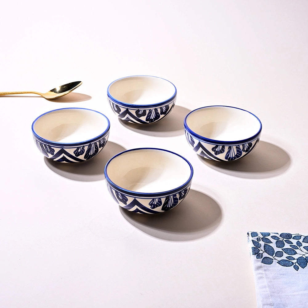 White & Blue Designer Handcrafted Bowl (Set of 4)