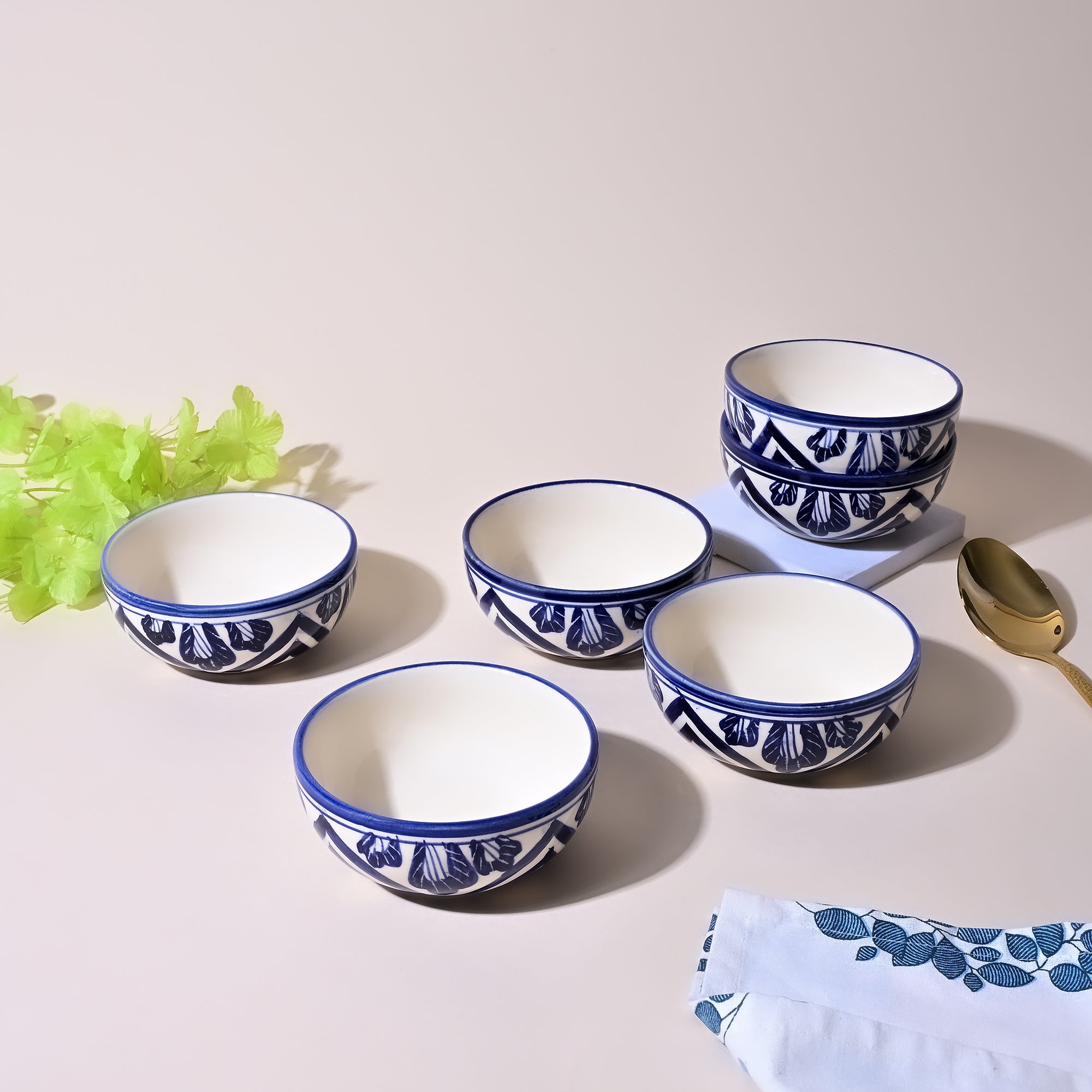 White & Blue Designer Handcrafted Bowl (Set of 6)