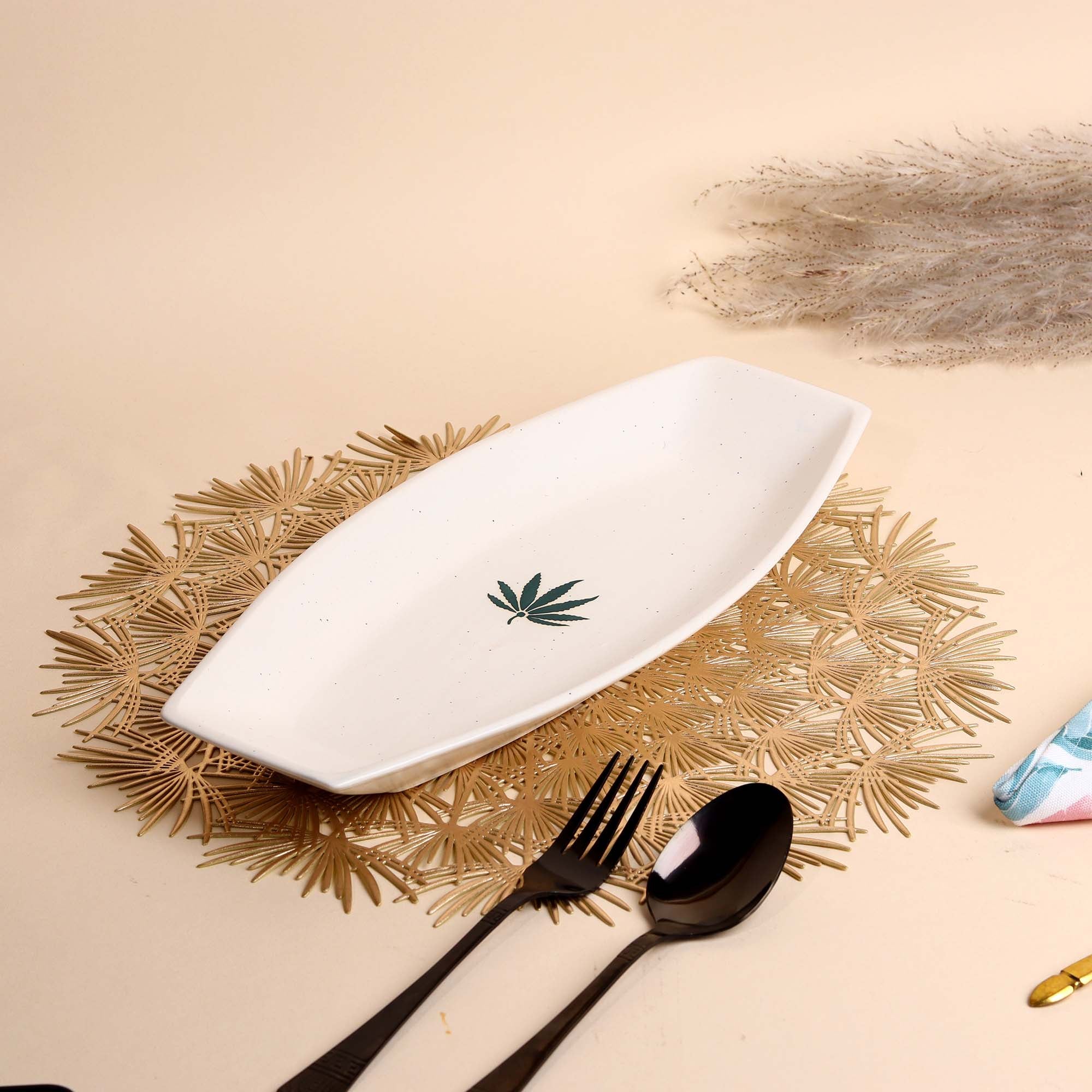 White Leaf Serving Platter