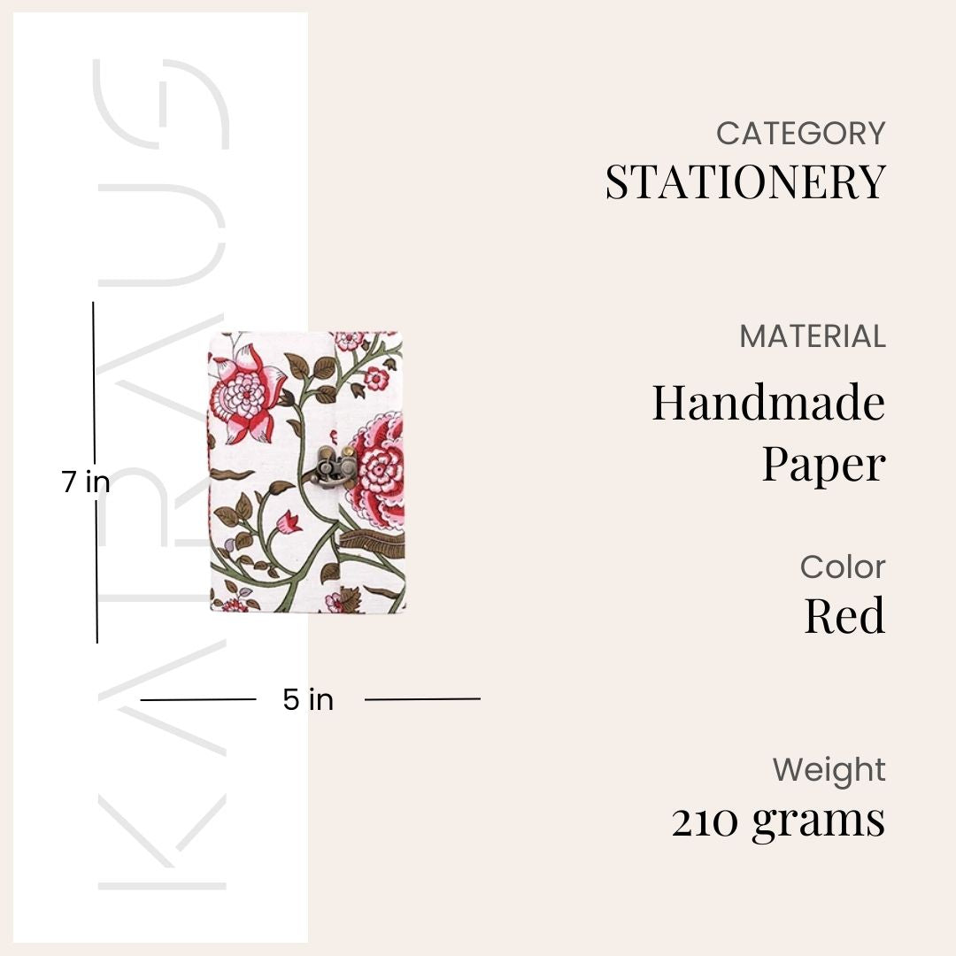 White Red Floral Diary with Lock (7x5inch)